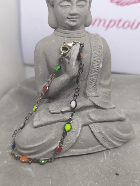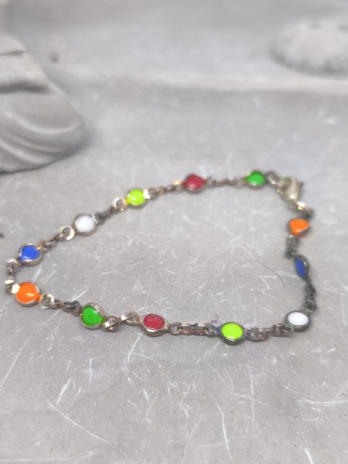 Ce joli bracelet pour enfant en argent 925 est orné de petites pastilles en résine colorée, apportant une touche de gaieté et de tendresse au poignet.