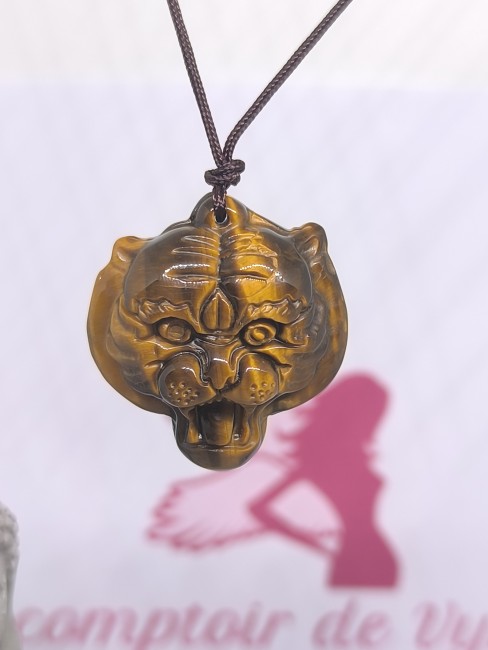 Pendentif Tête de Tigre en Œil de Tigre – Force, Courage et Protection