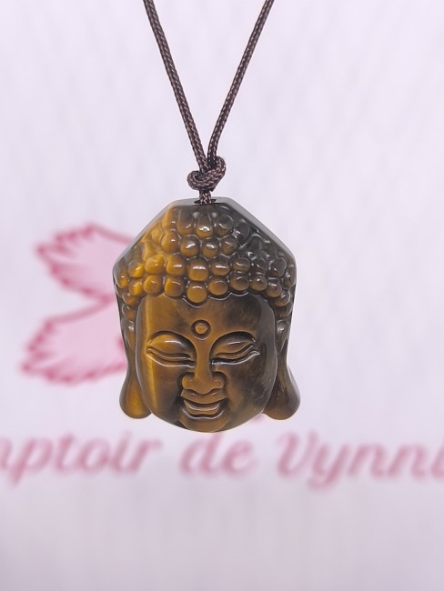 Pendentif Tête de Bouddha en Œil de Tigre – Sérénité et Protection intérieure
