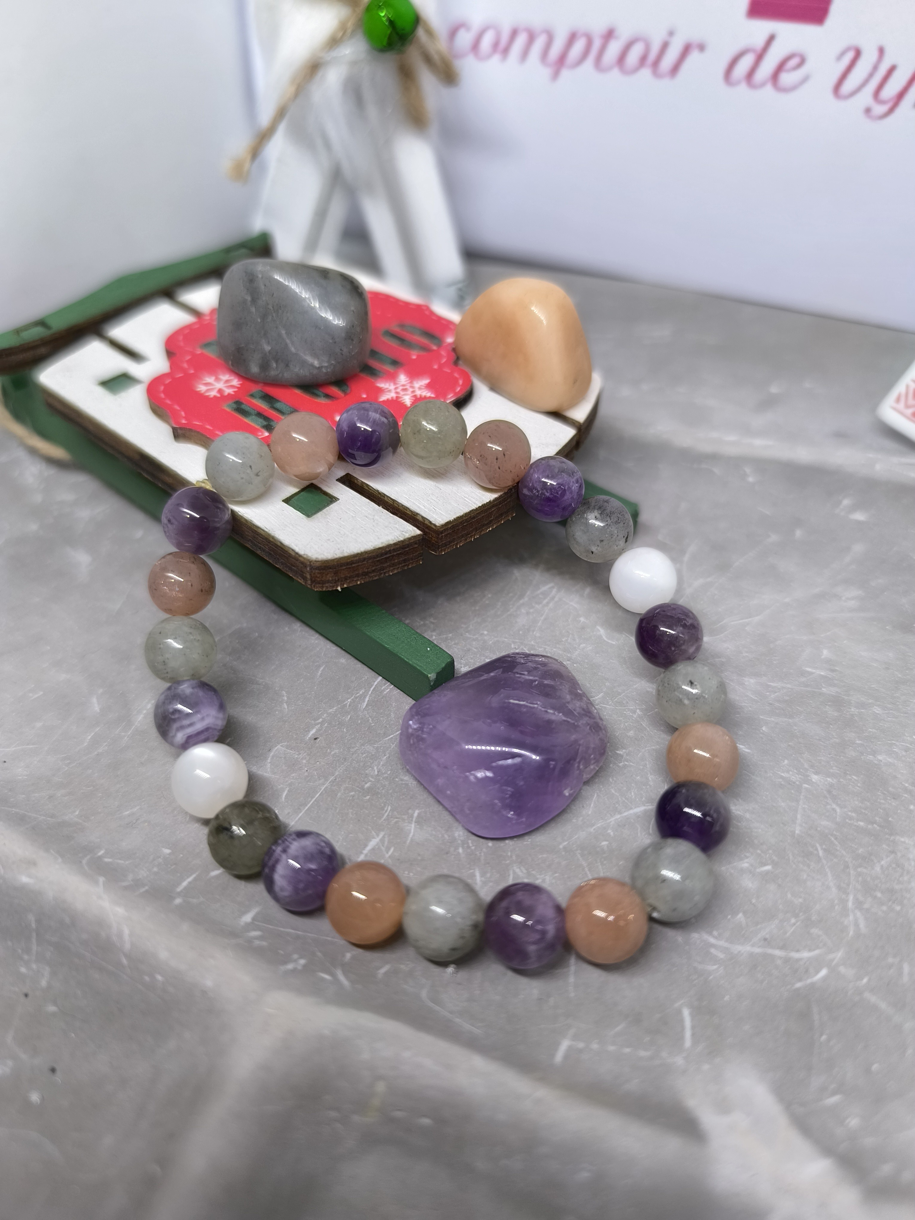 Parce que la cohérence énergétique est essentielle, le coffret contient les mêmes pierres que le bracelet, en version roulée :