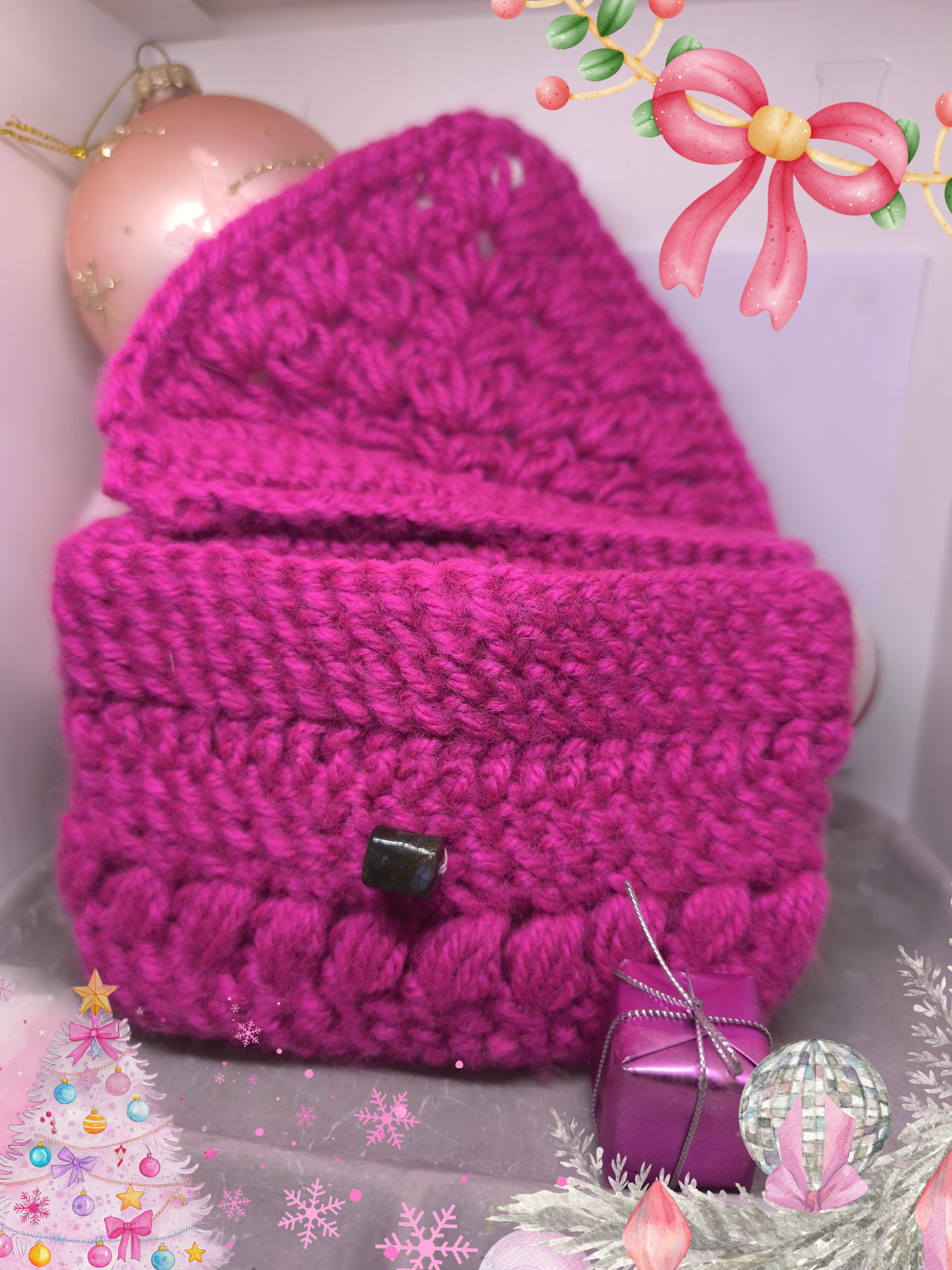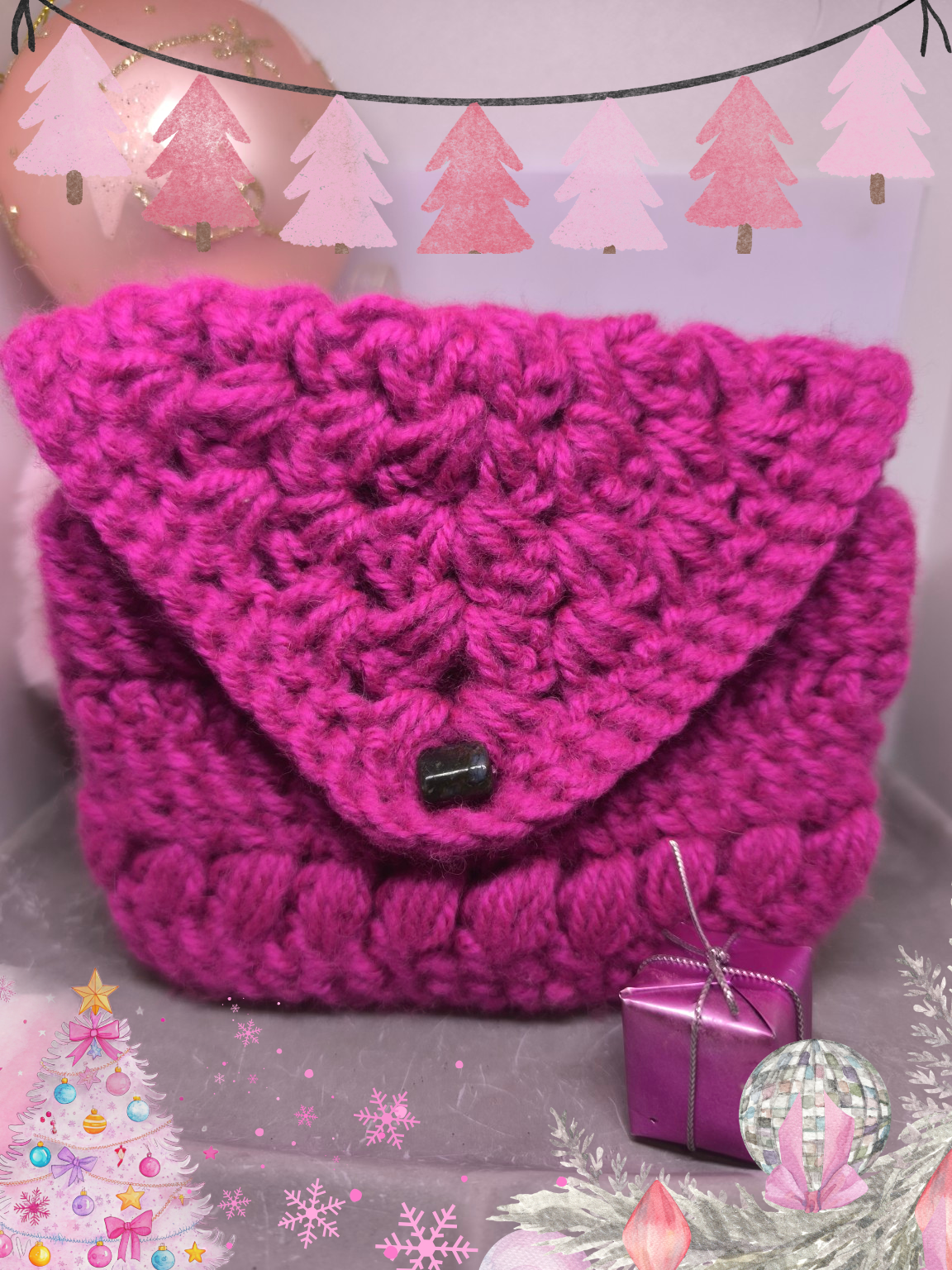 Chaque pochette est crochetée avec soin pendant environ 2 heures, dans une laine douce et épaisse.