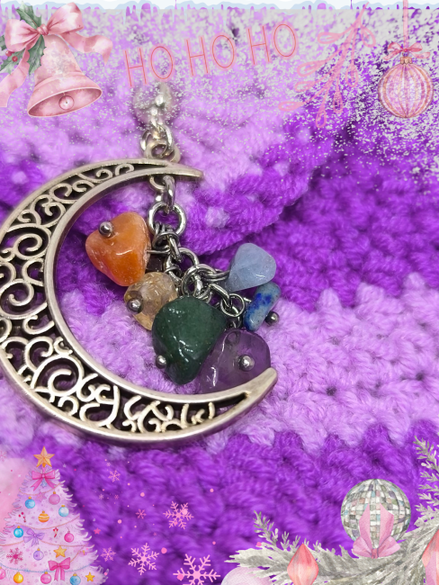 Sa fermeture est une pampille Lune ornée des 7 pierres des chakras, symbole d’alignement, de lumière et de protection.