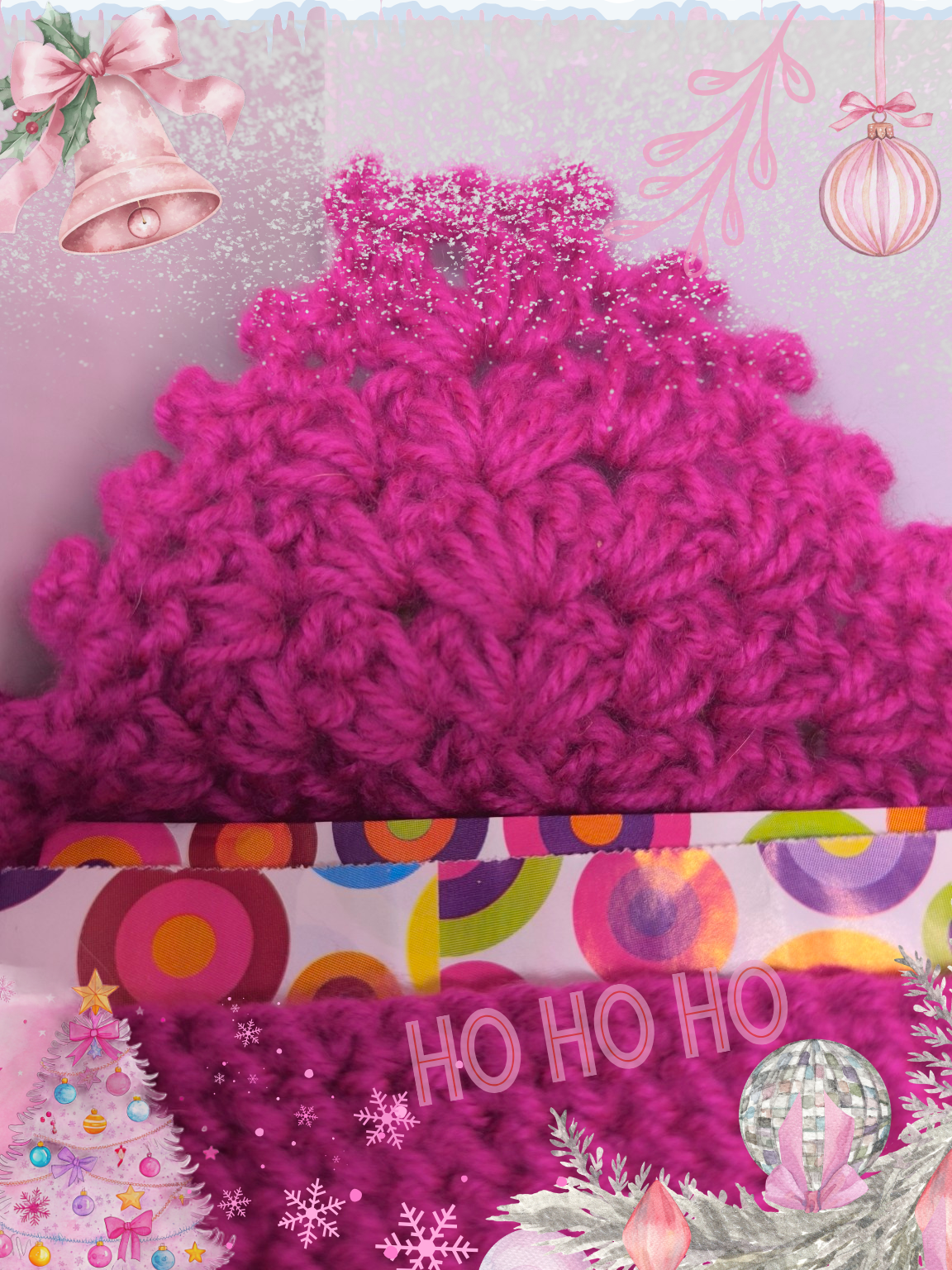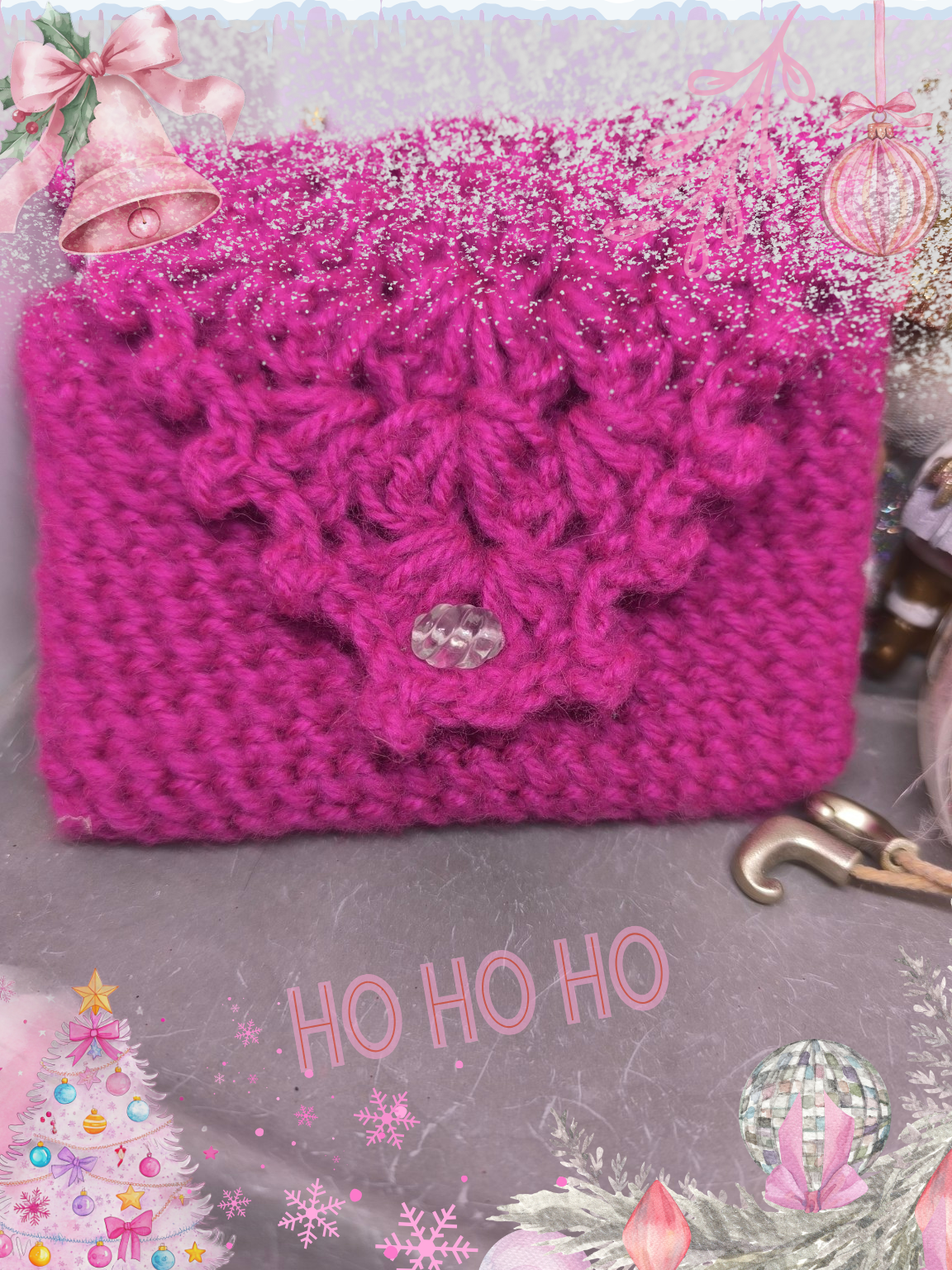 Voici une pochette crochetée à la main dans un magnifique rose framboise lumineux, chaleureuse et douce, parfaite pour célébrer la magie de décembre.