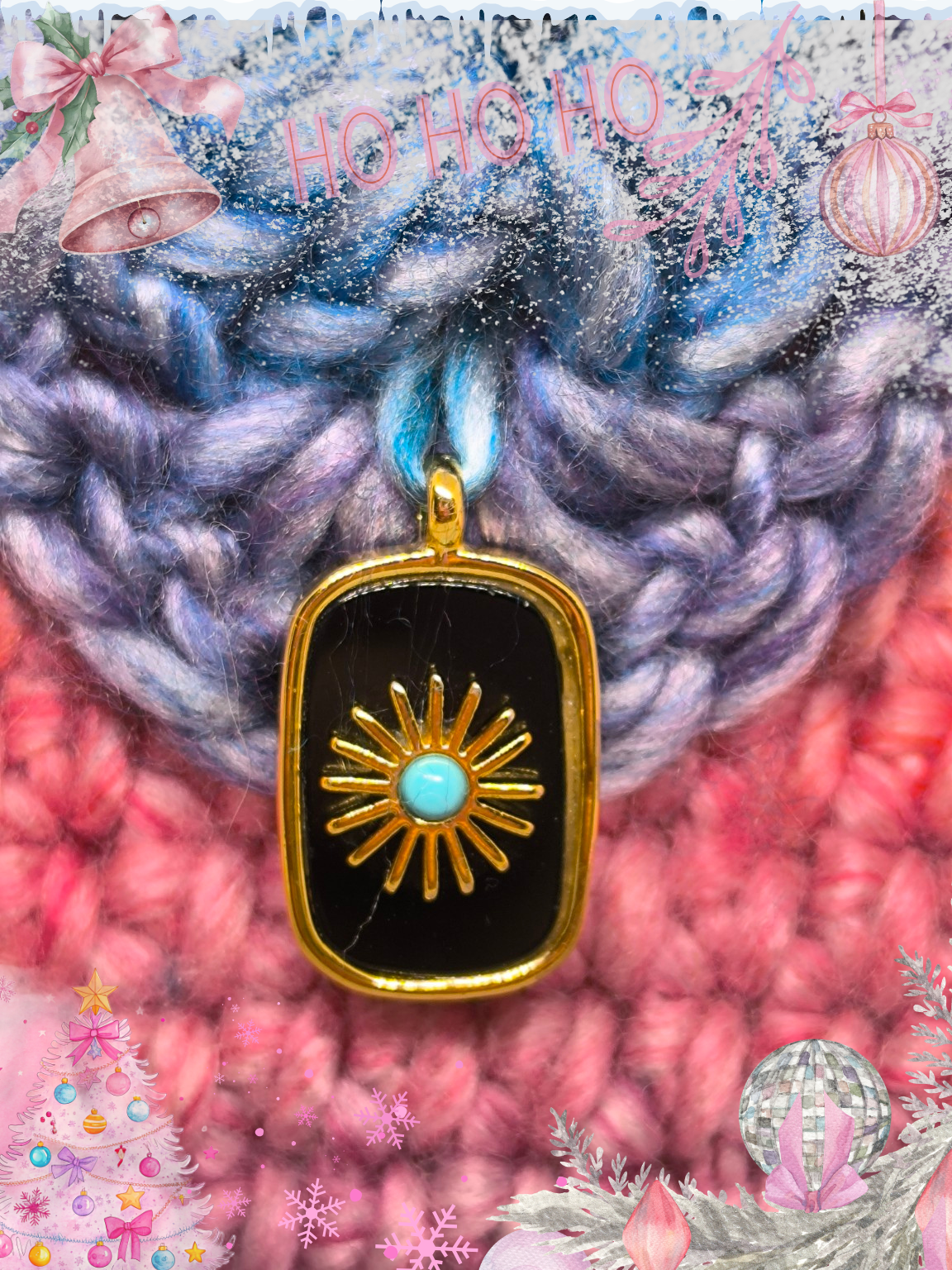 Elle est fermée par un superbe pendentif plaqué or 18 carats, serti d’agate noire et d’une petite perle turquoise, symbole de protection, d’équilibre et de guidance.
