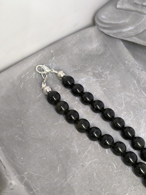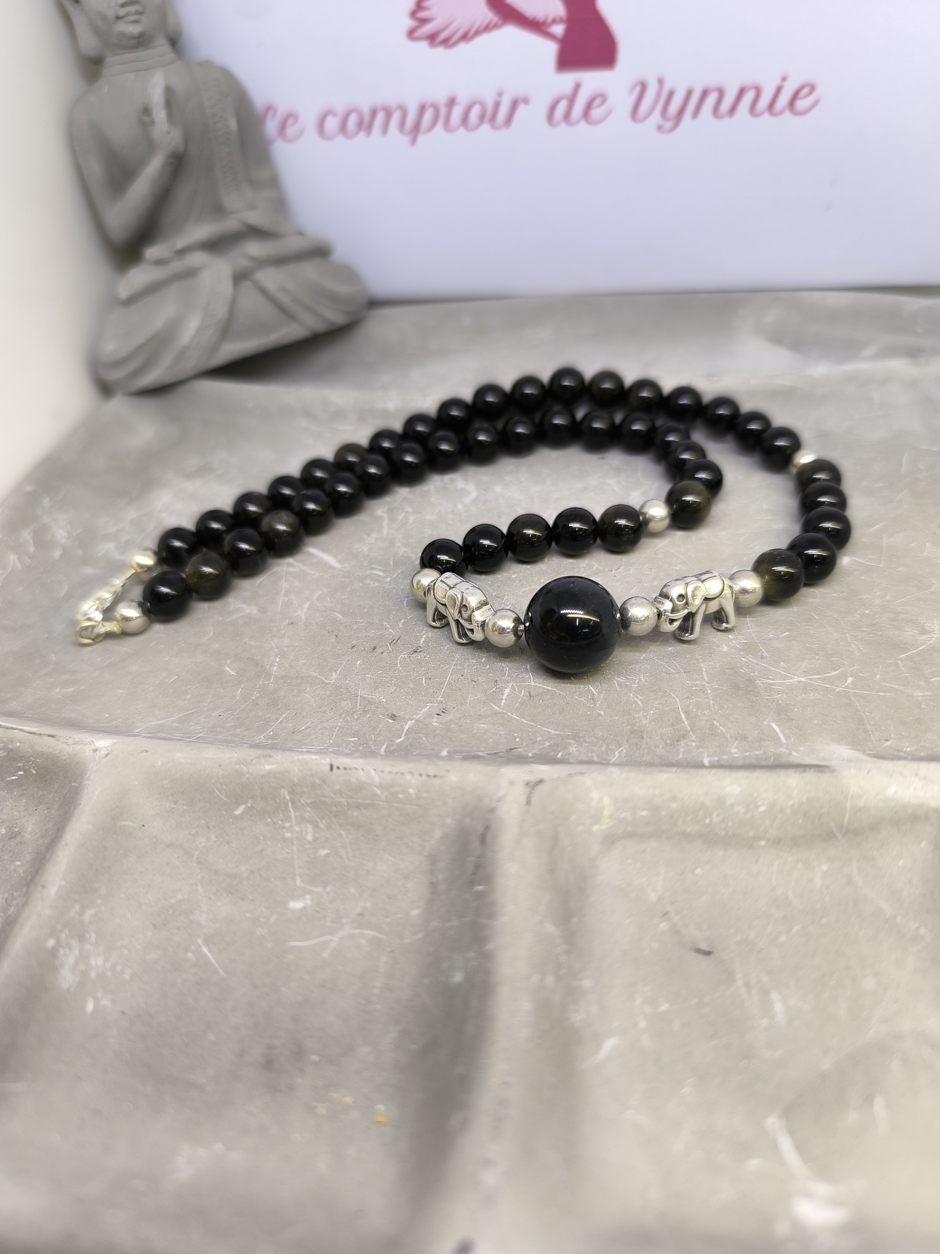 Ce collier en obsidienne dorée naturelle (perles 8 mm) est une pièce à la fois sobre et puissante, pensée pour celles et ceux qui recherchent protection, stabilité et profondeur intérieure.