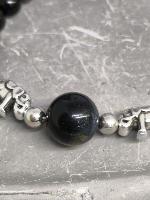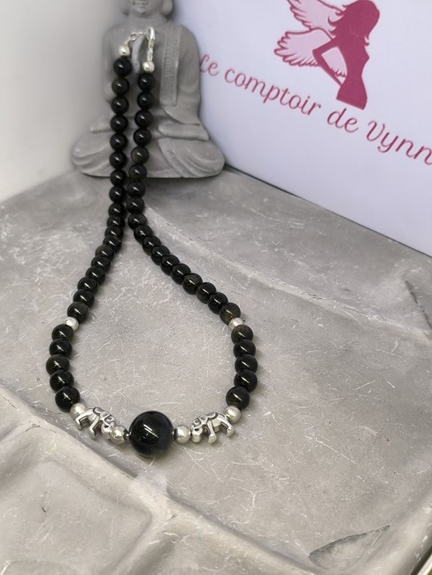 L’ensemble est sublimé par des perles argentées en zamak et deux éléphants symboliques, véritables gardiens de sagesse, de mémoire et de solidité.