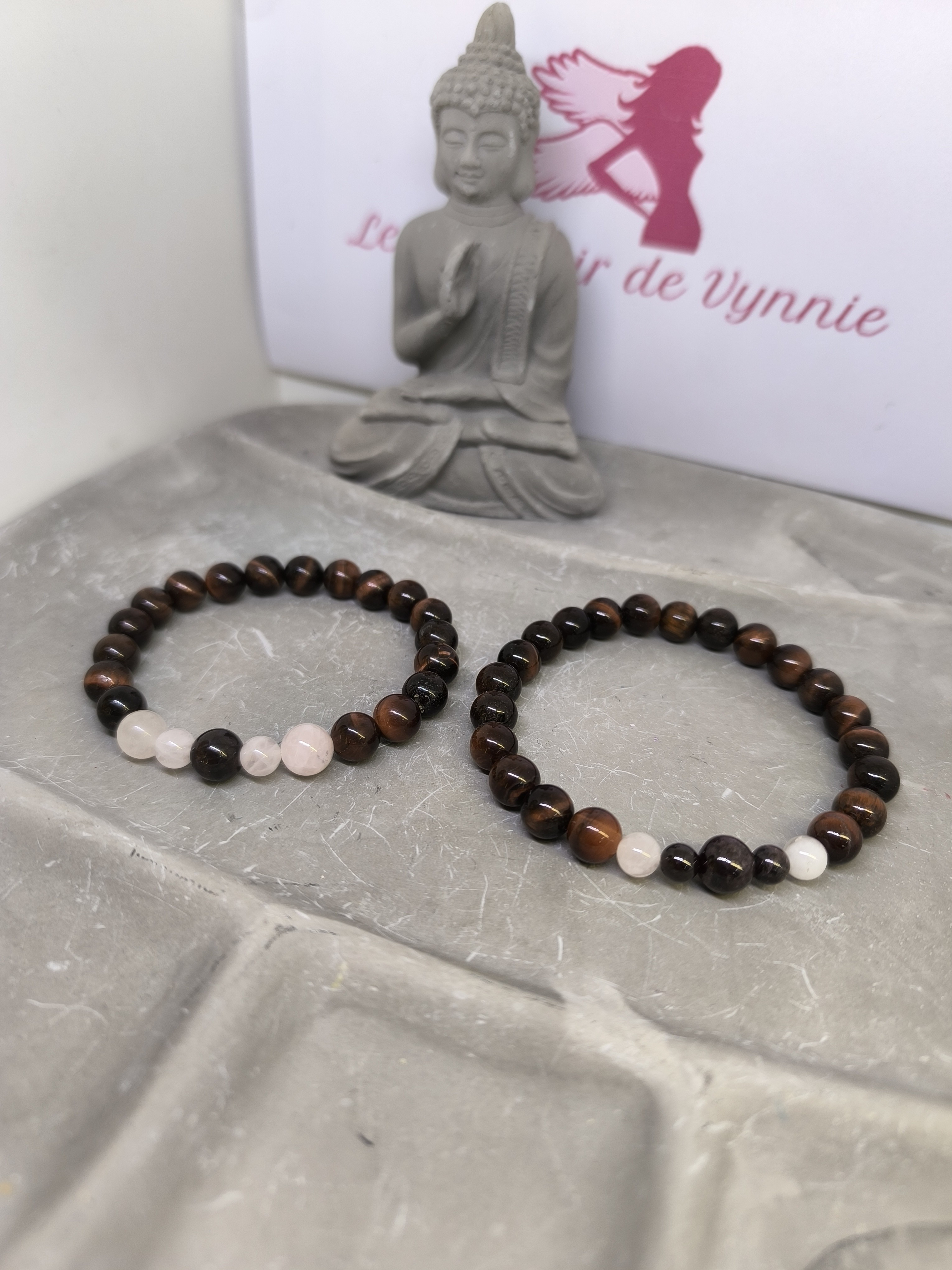 Bracelets de Couple Saint-Valentin – Amour, Passion & Protection | Grenat, Quartz Rose & Œil de Taureau