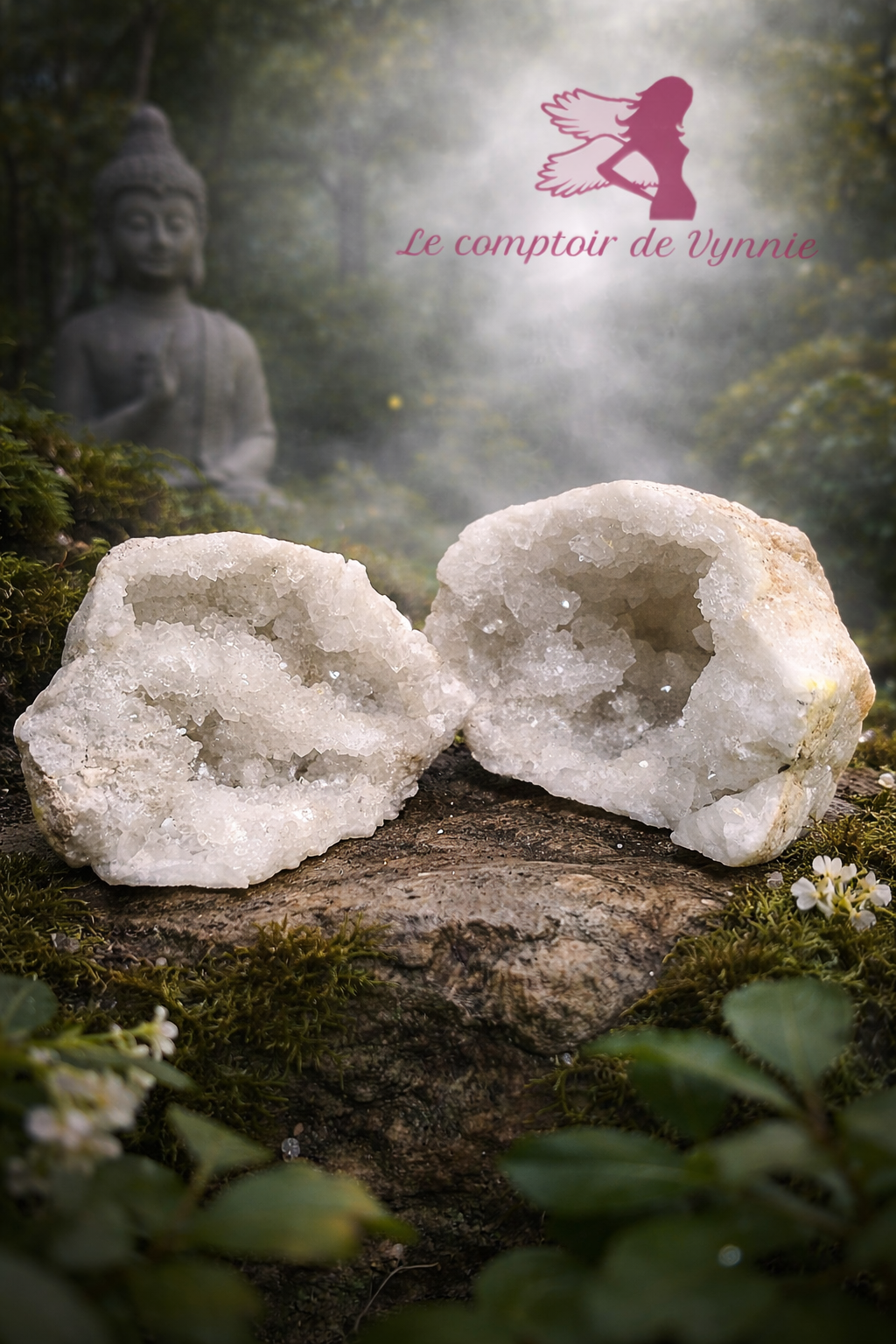 Présentée en deux parties complémentaires, cette géode peut être utilisée ensemble ou séparément, selon vos besoins : décoration, harmonisation énergétique, méditation ou purification d’objets et de pierres.