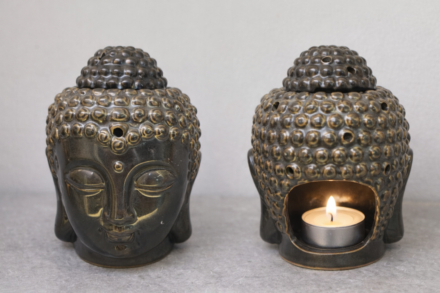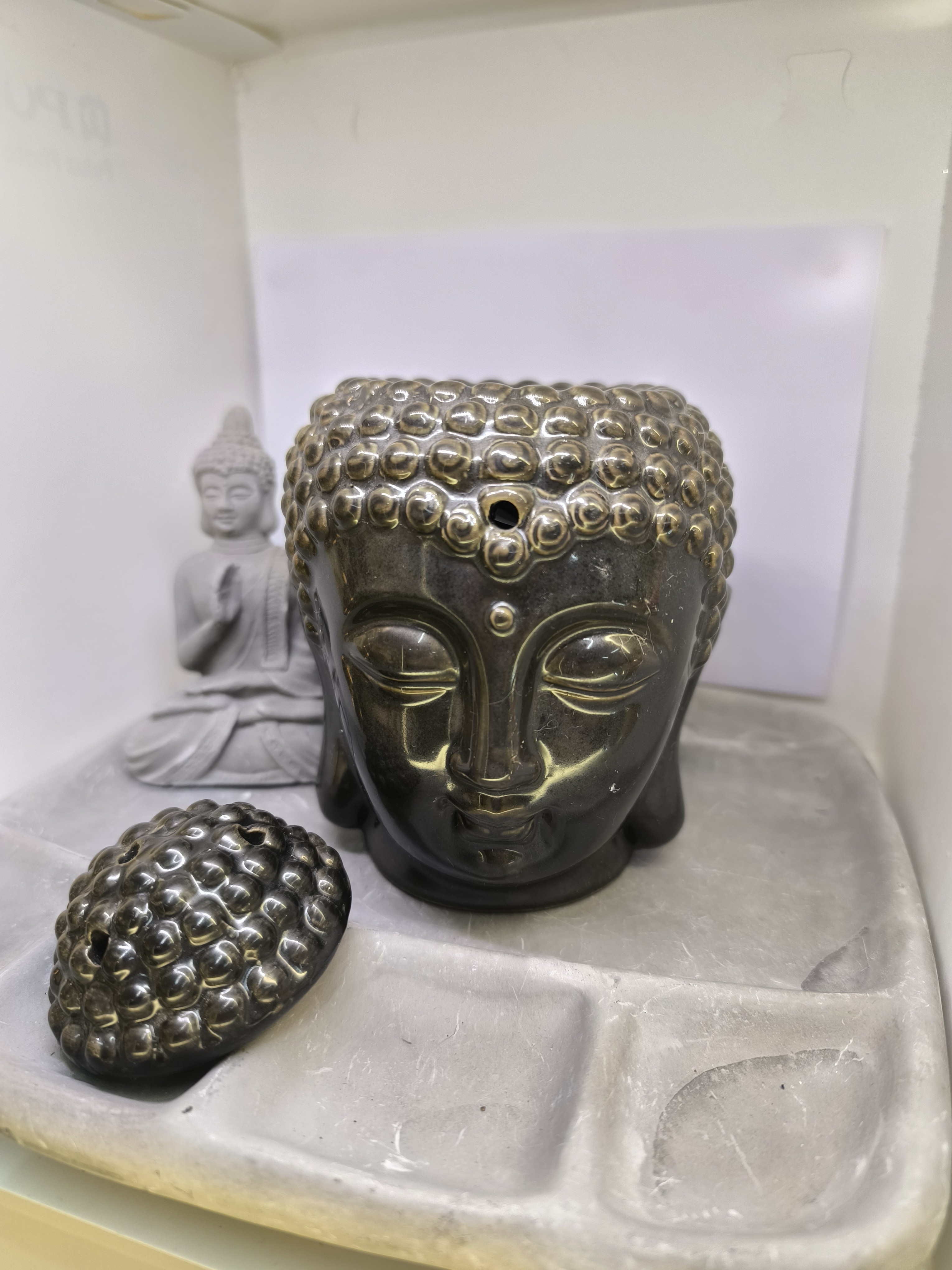 Tête de Bouddha brûleur d’huiles essentielles & galets de cire Céramique