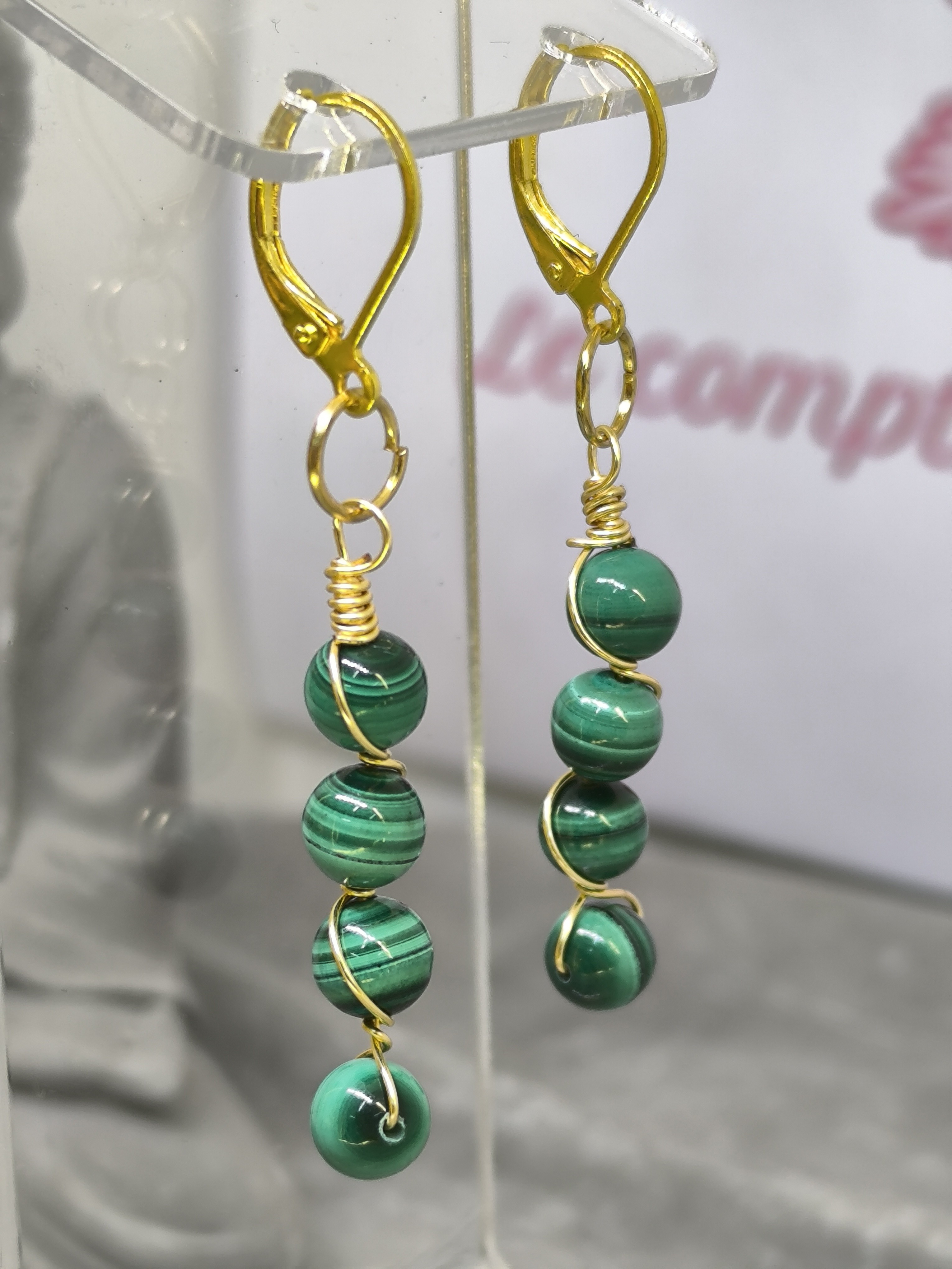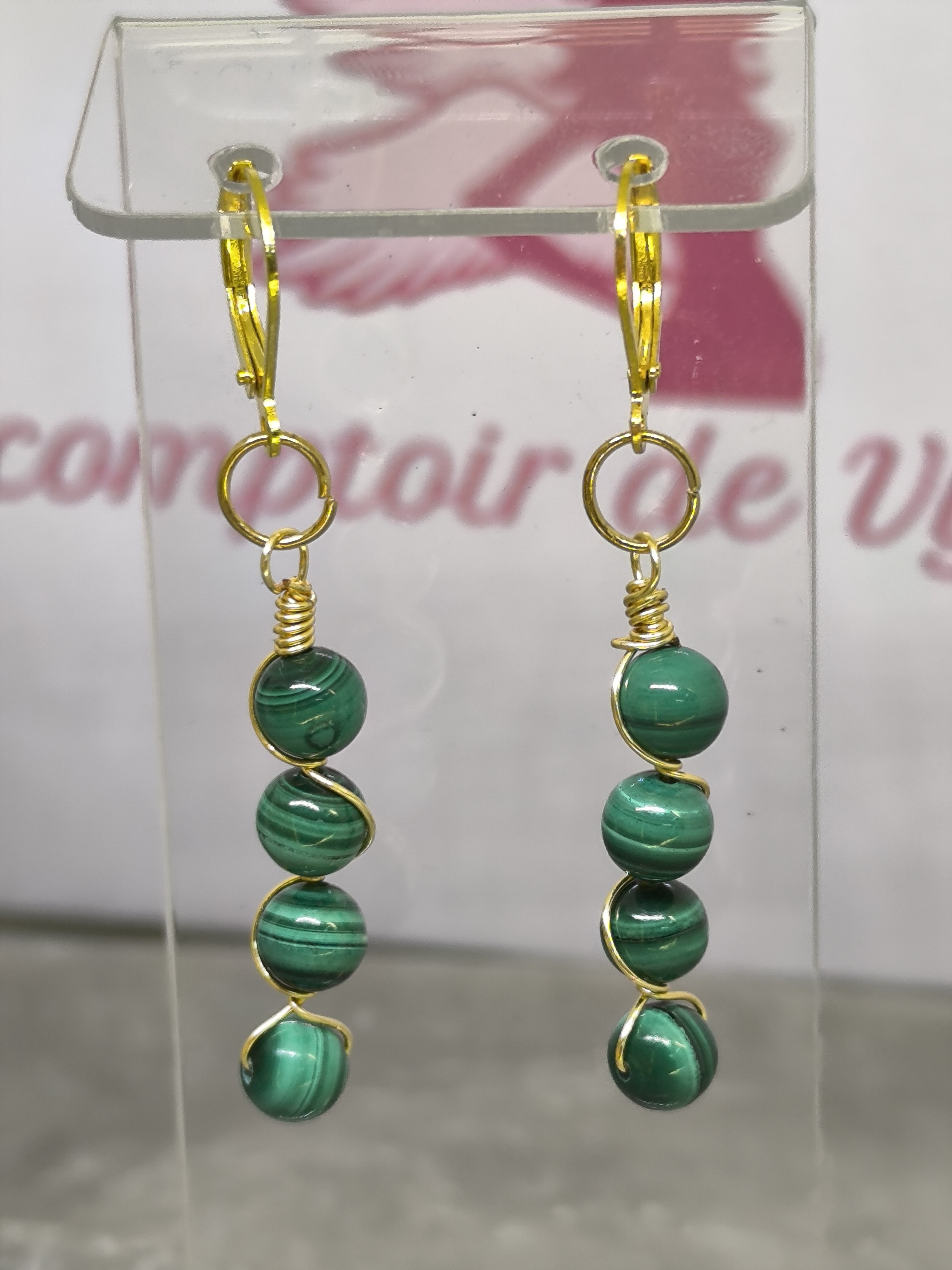 Boucles d’oreilles en Malachite – Câble doré