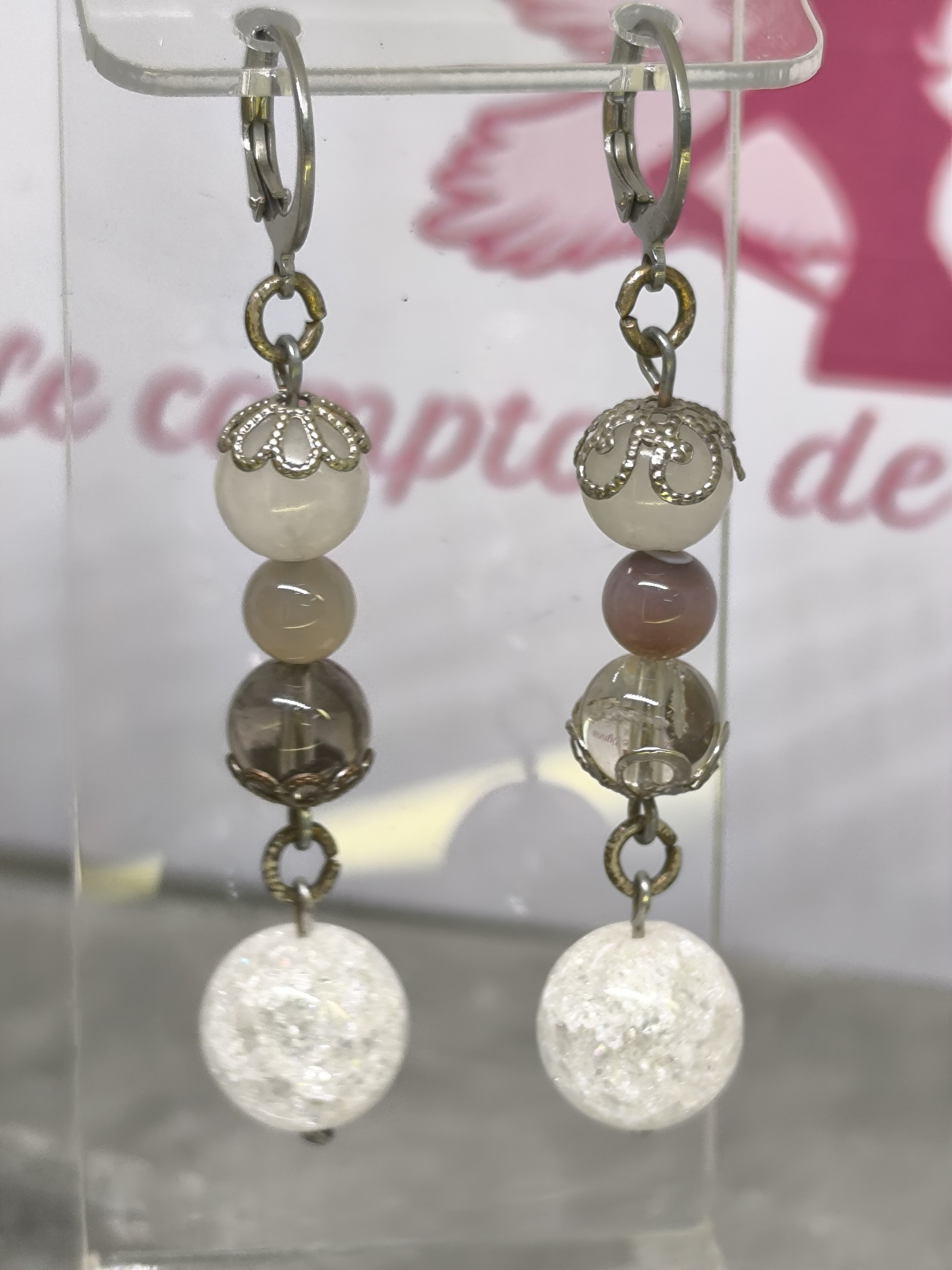 Chaque paire est montée à la main, avec des pierres naturelles soigneusement sélectionnées. De légères variations peuvent exister, rendant chaque bijou unique.