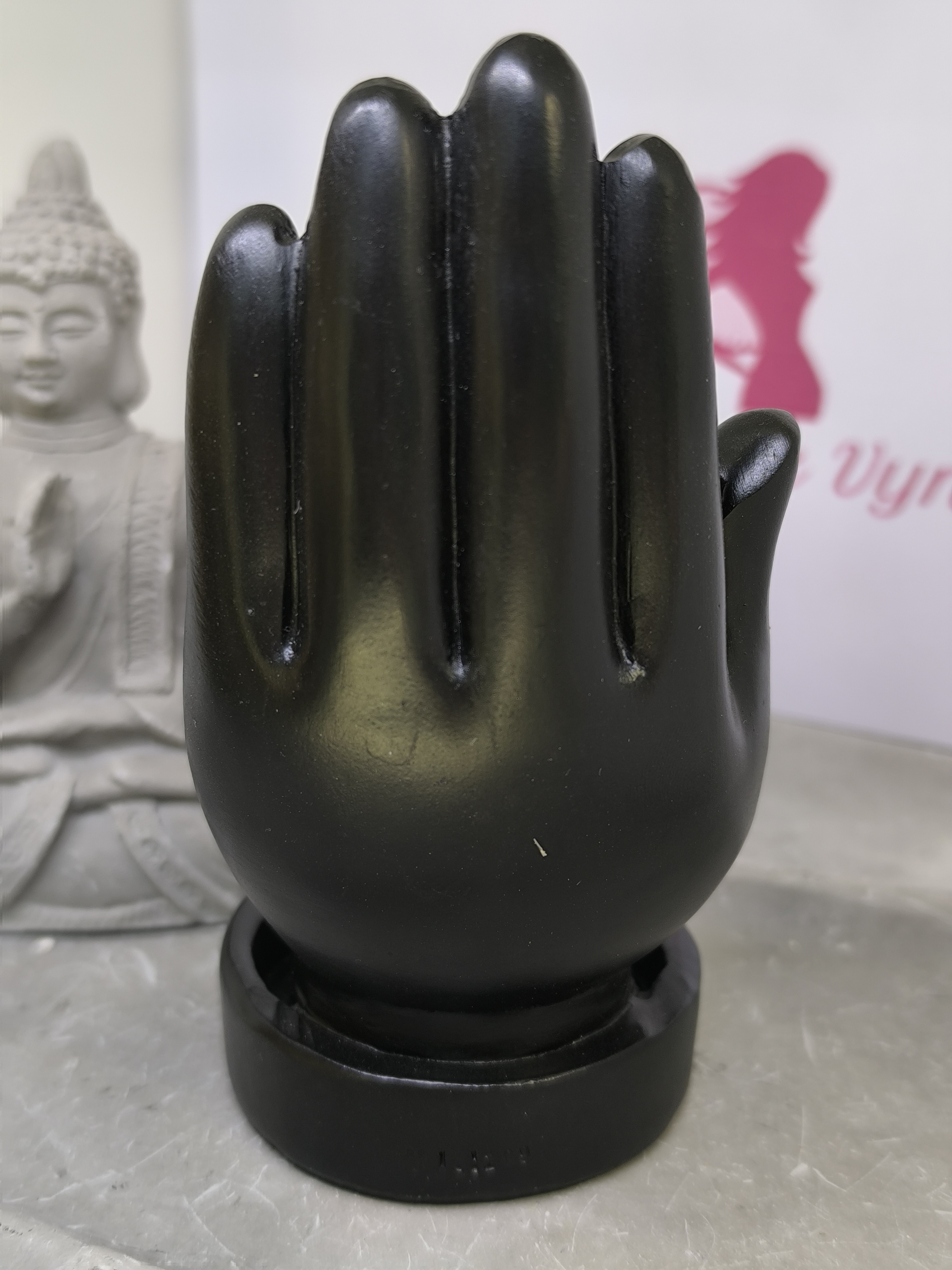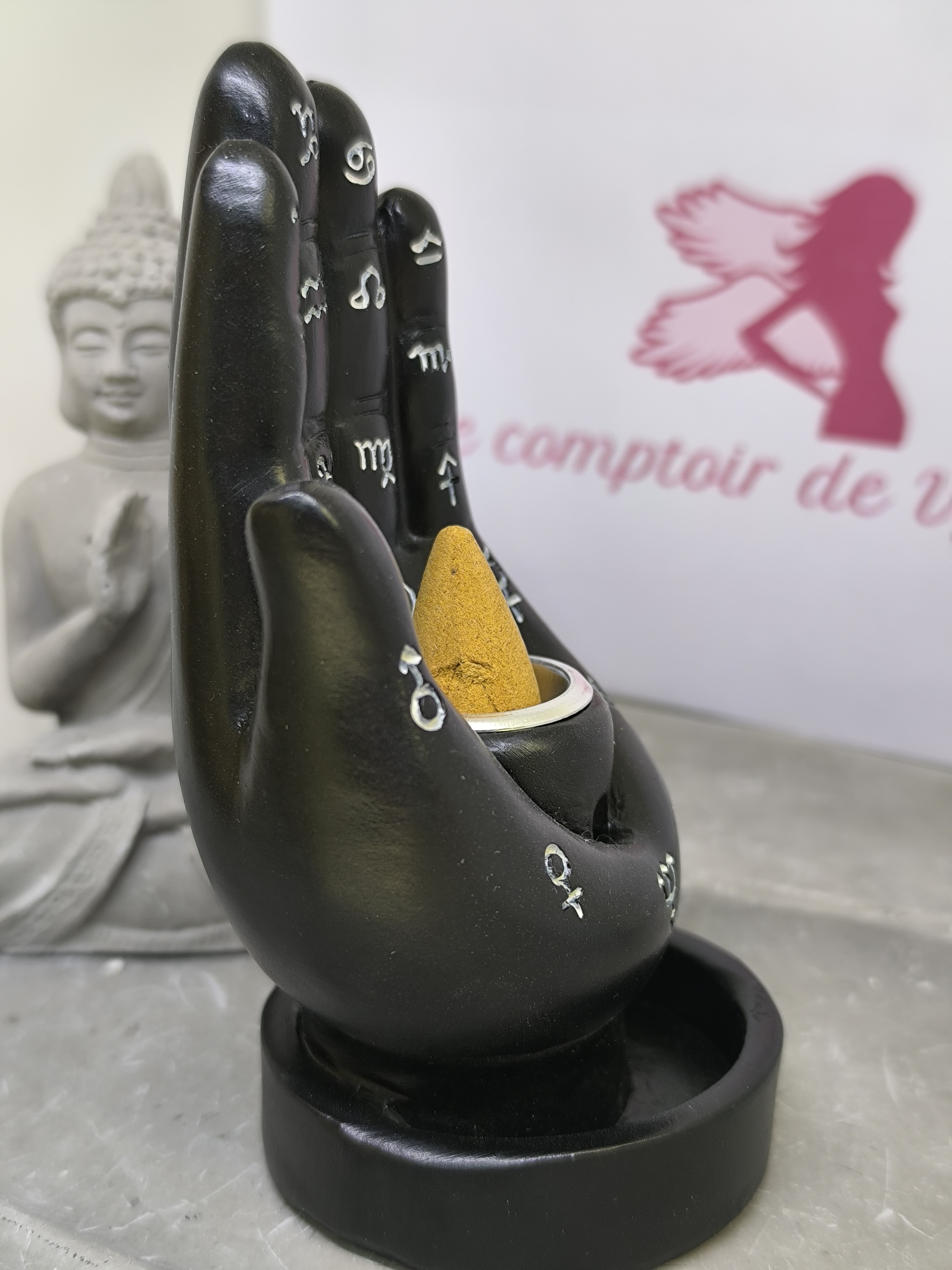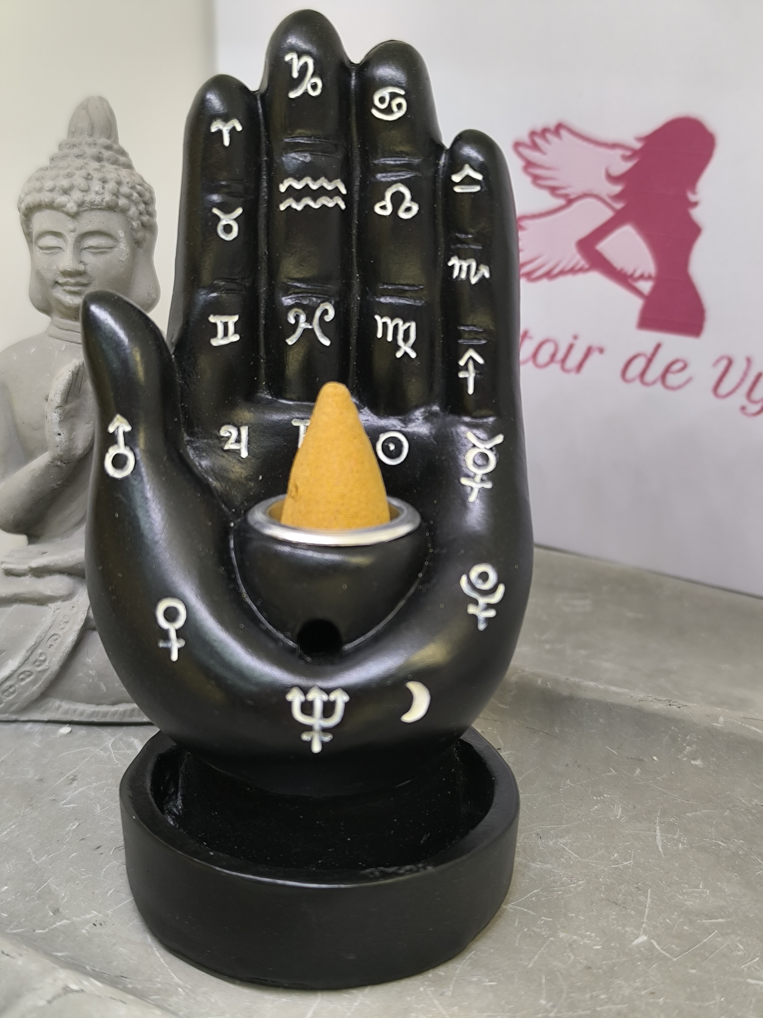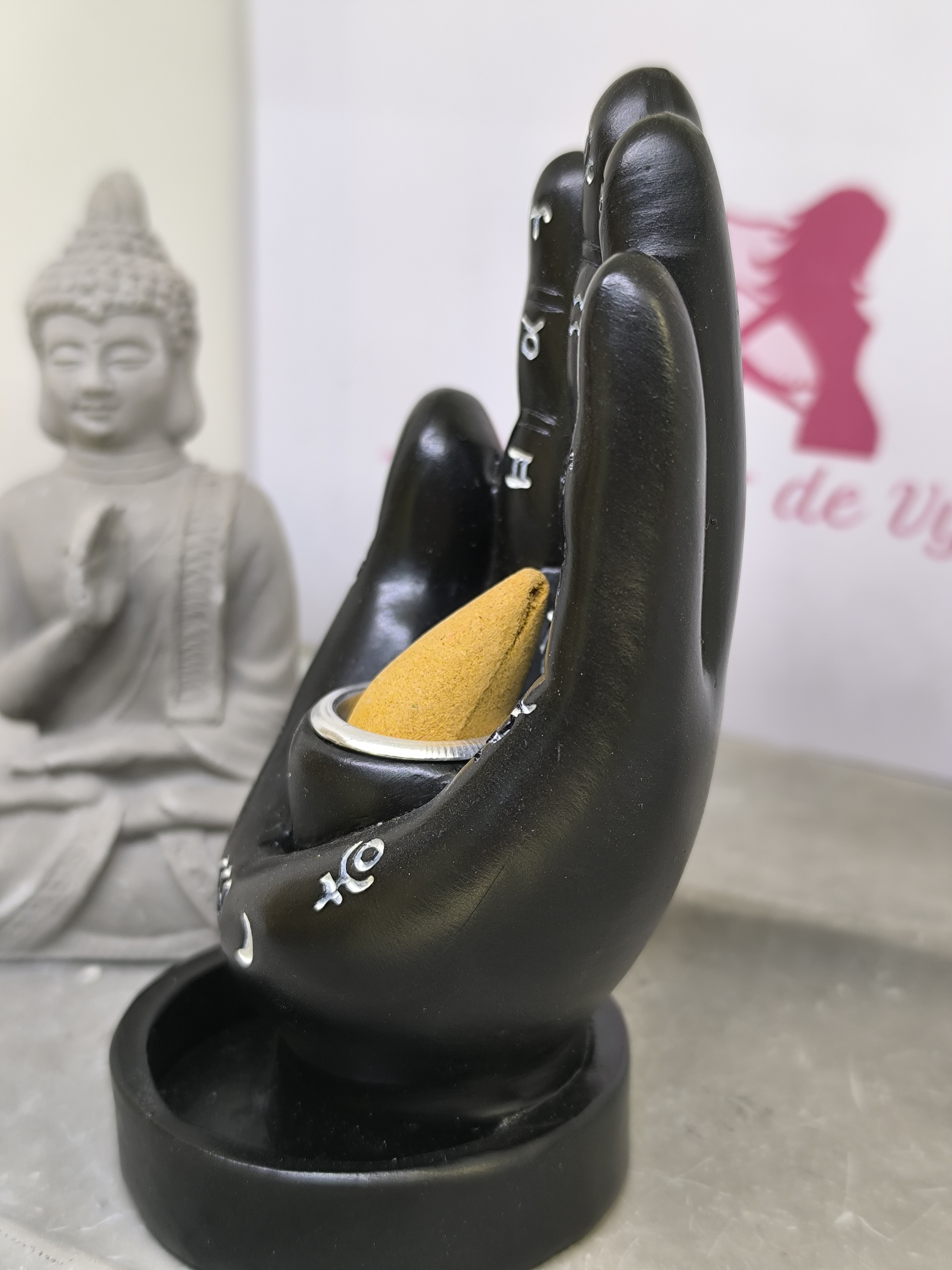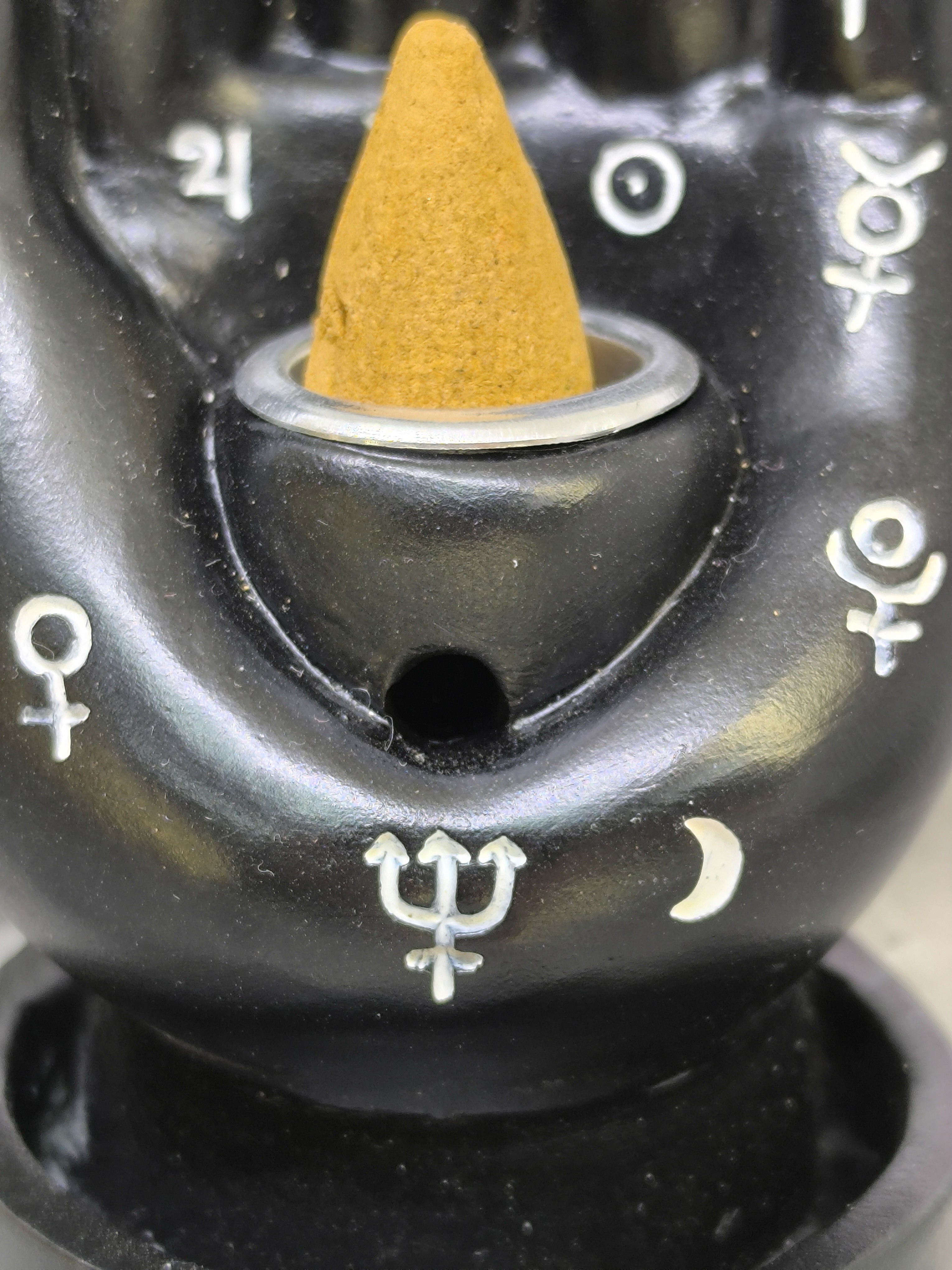 Cette fontaine à encens backflow en forme de main mantrique est un objet spirituel puissant et décoratif.