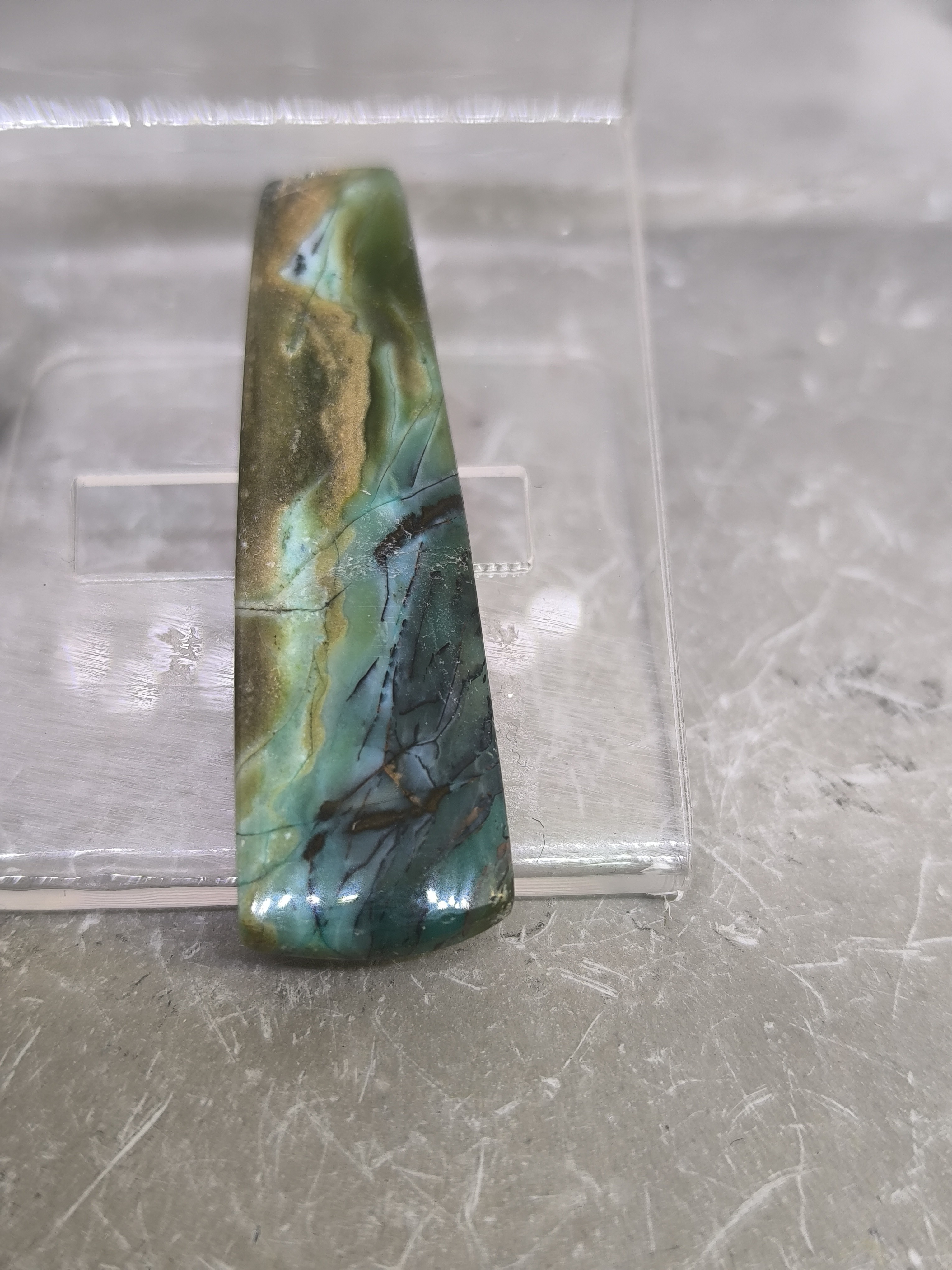 Elle présente de superbes nuances bleu, vert et marron, témoignant de millions d’années de transformation minérale.