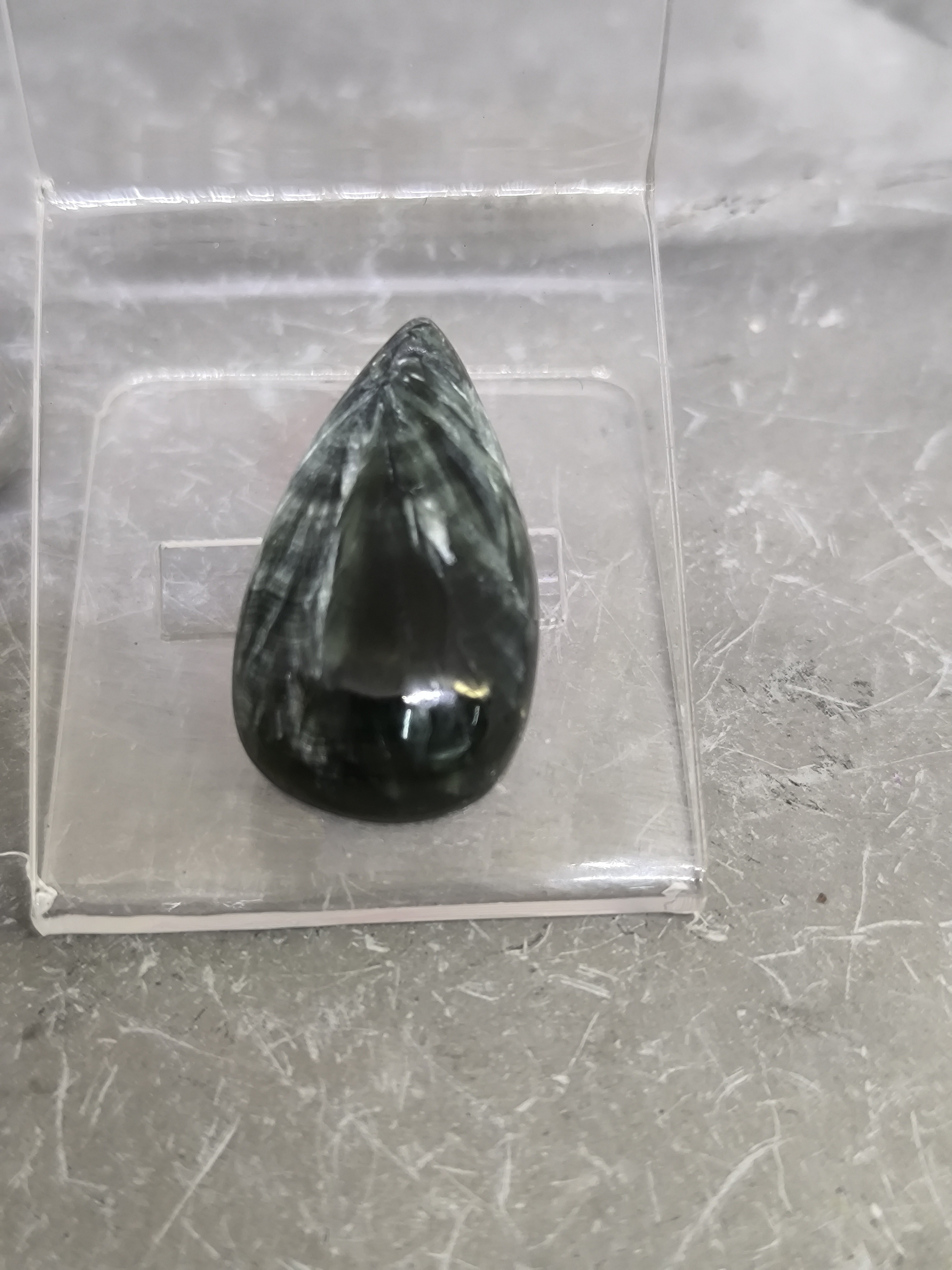 Originaire de Russie, la séraphinite est une pierre peu commune, très appréciée des collectionneurs et des amateurs de minéraux rares.