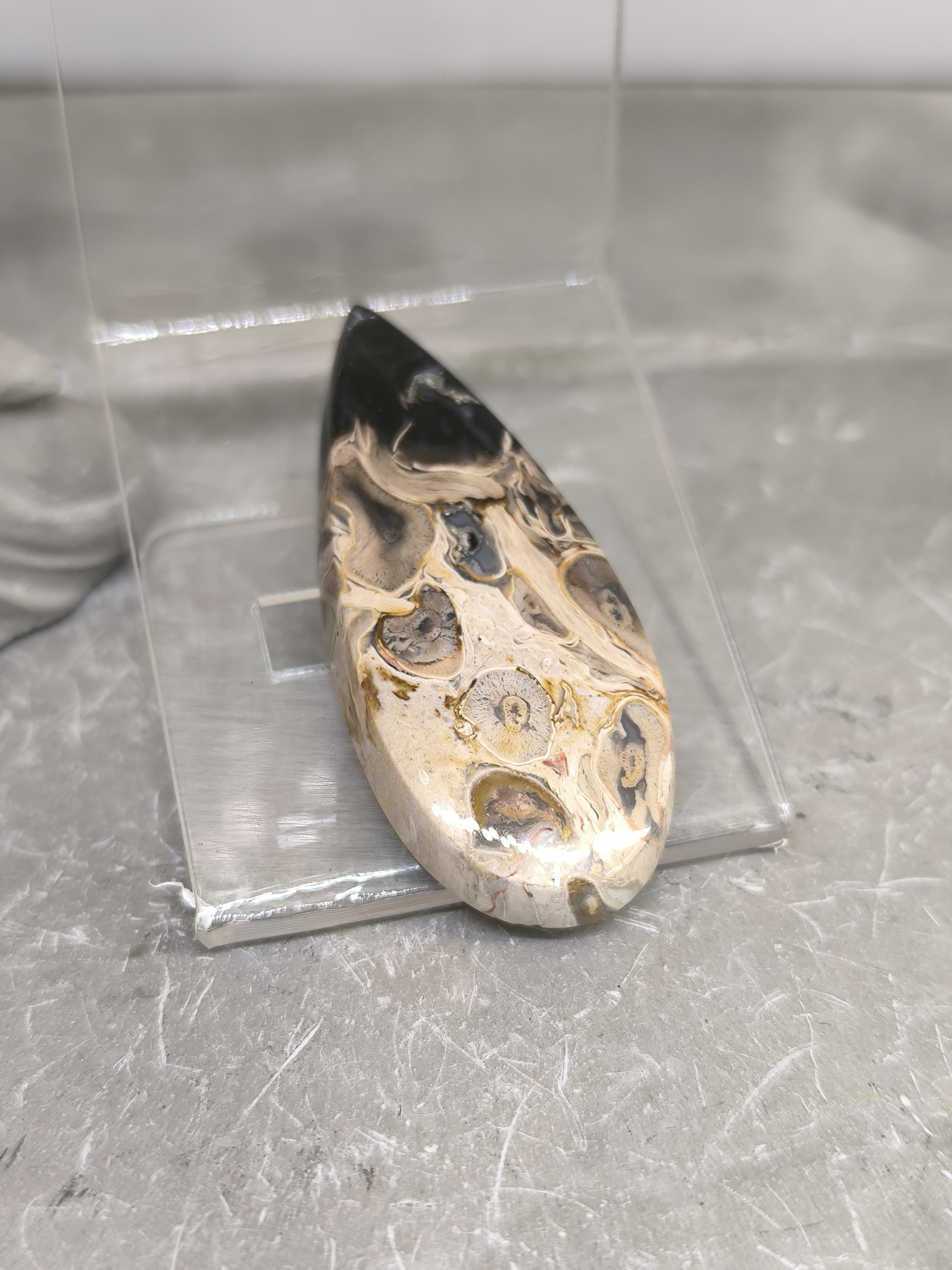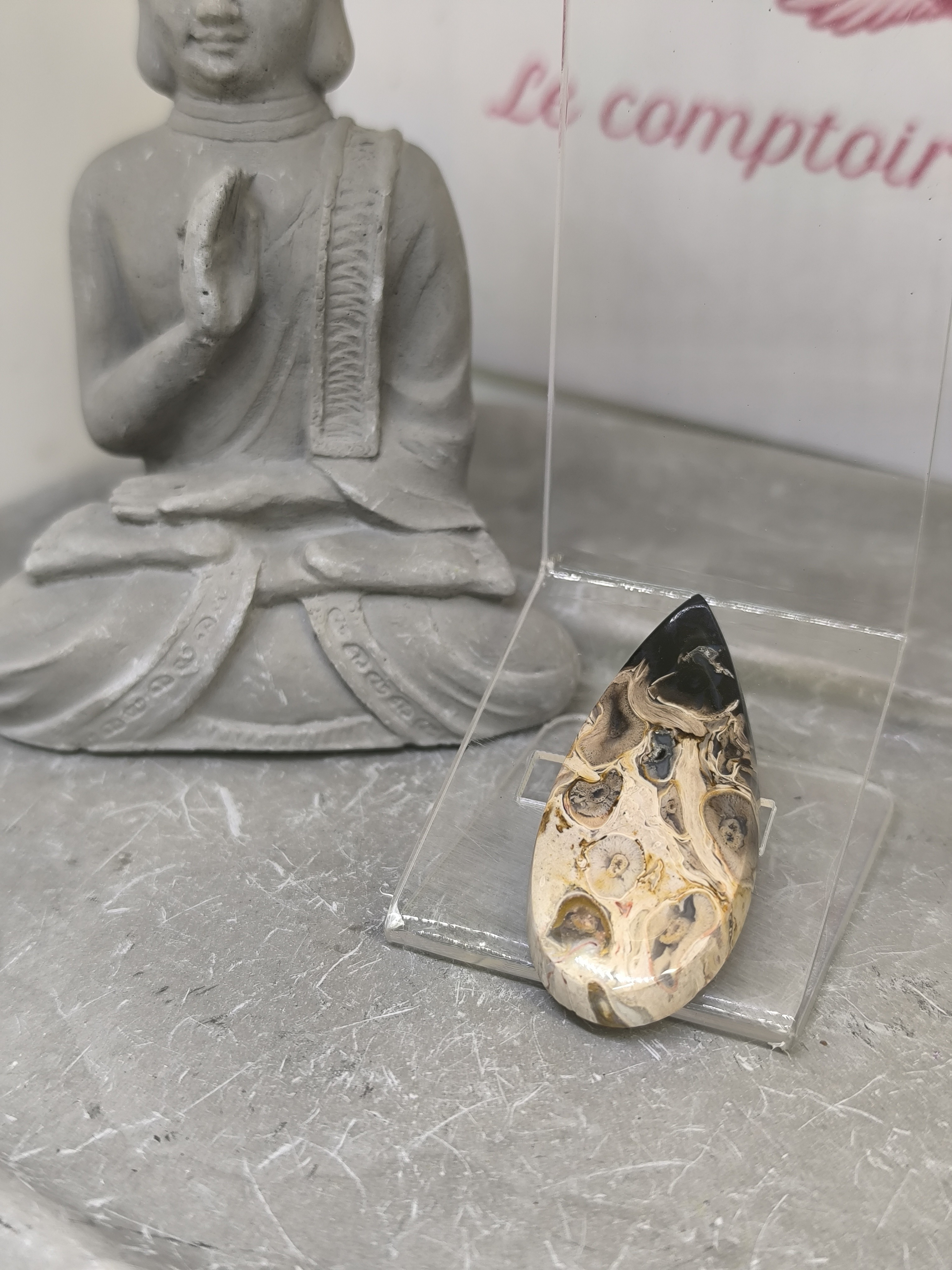 Chaque détail raconte une histoire ancienne, faisant de cette pierre un objet à la fois minéralogique, esthétique et intemporel.