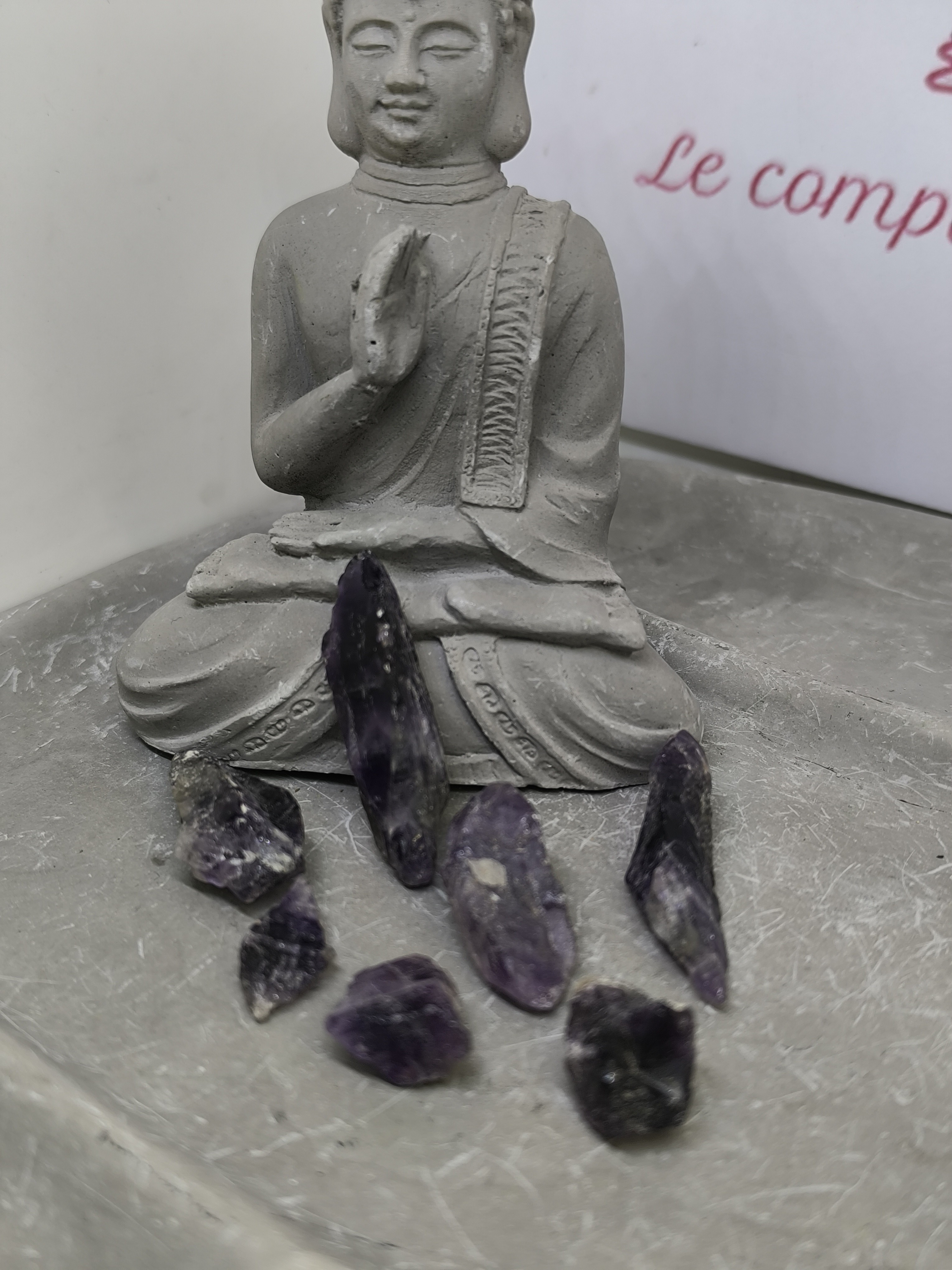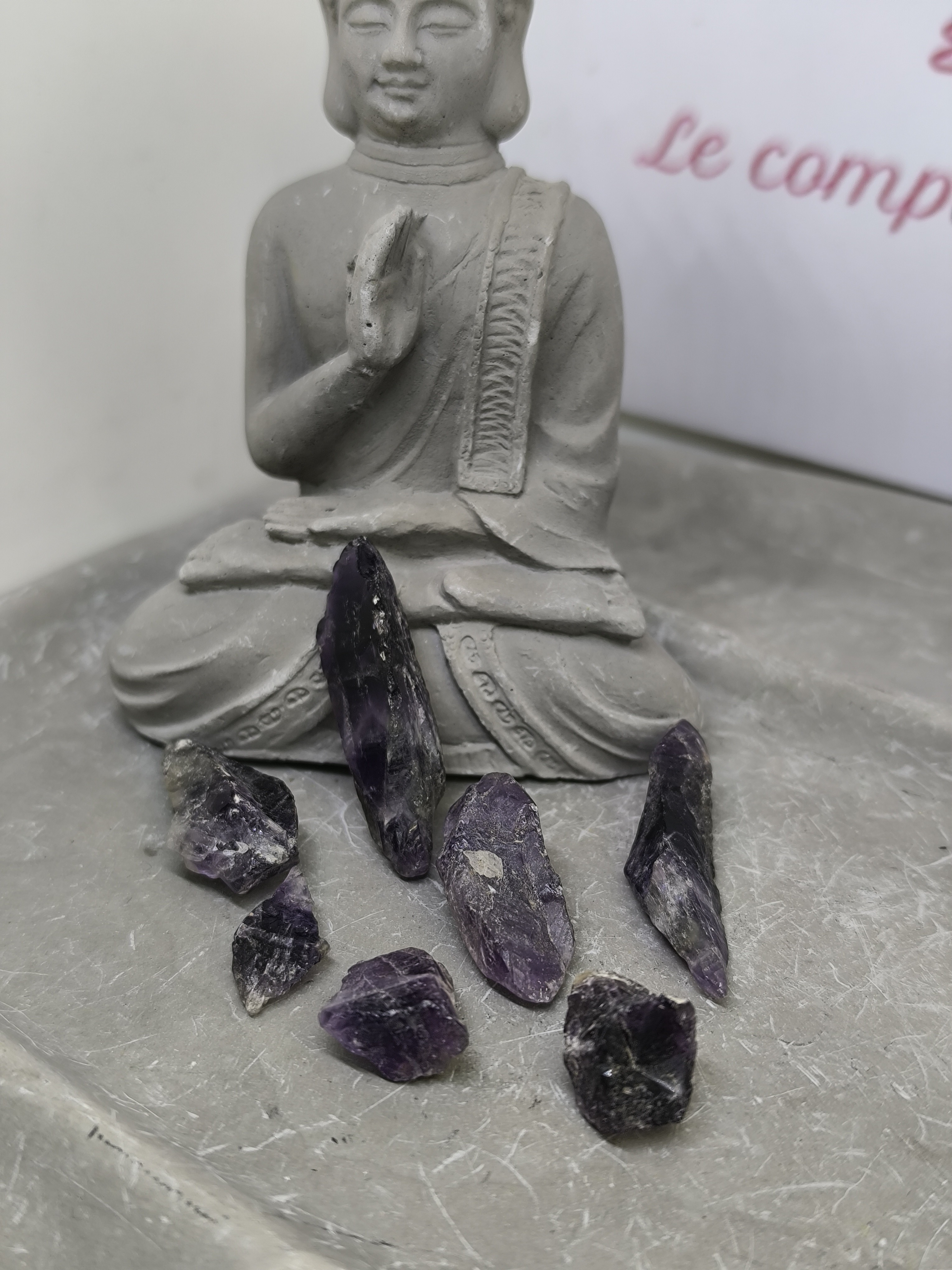 Chaque pierre présente une morphologie unique, conservant son aspect naturel tout en laissant apparaître des zones translucides et cristallines. La richesse chromatique, la densité de la couleur et la structure interne témoignent d’une améthyste de bonne qualité, plus rare que les pierres trop pâles ou uniformes.