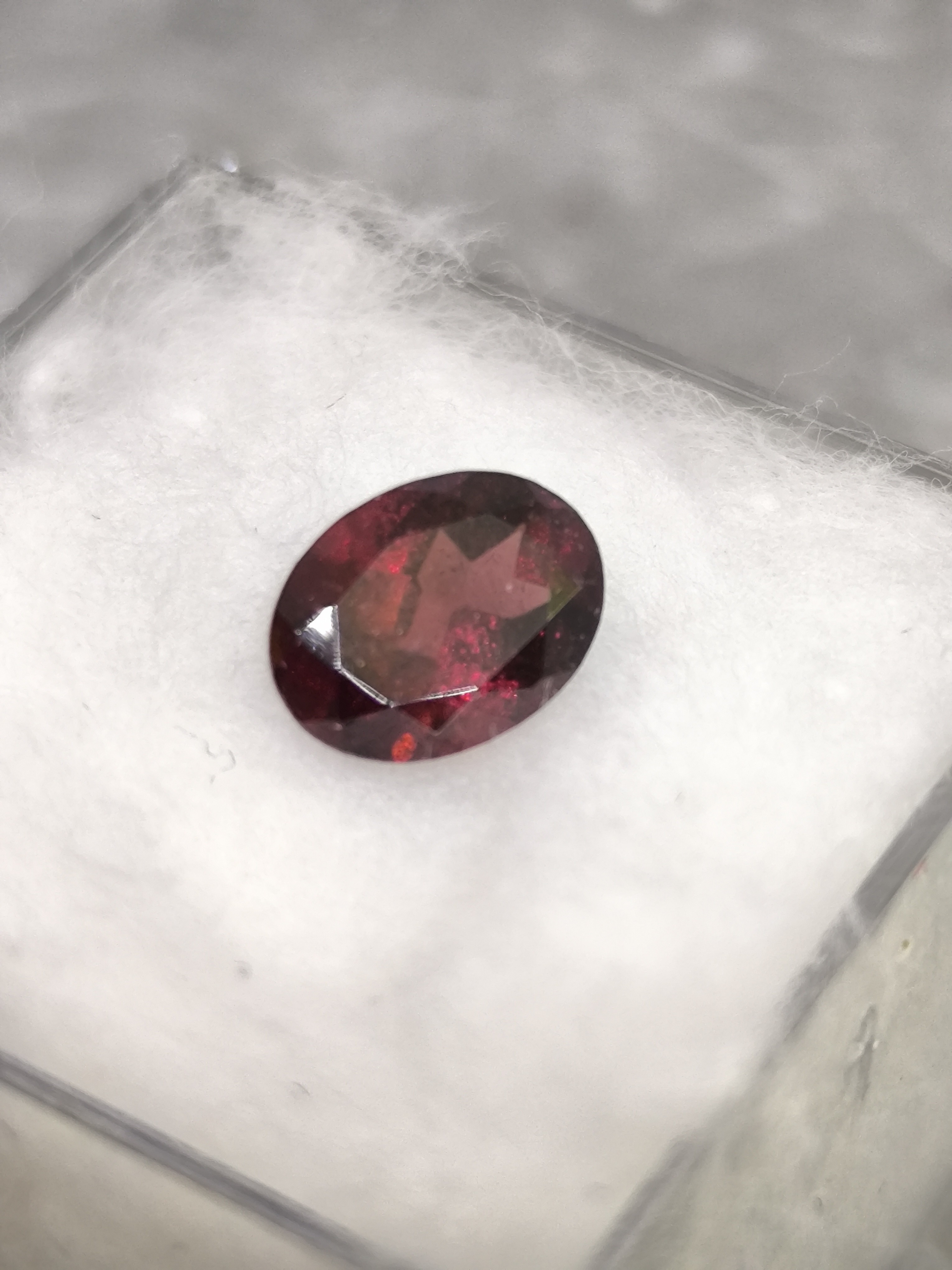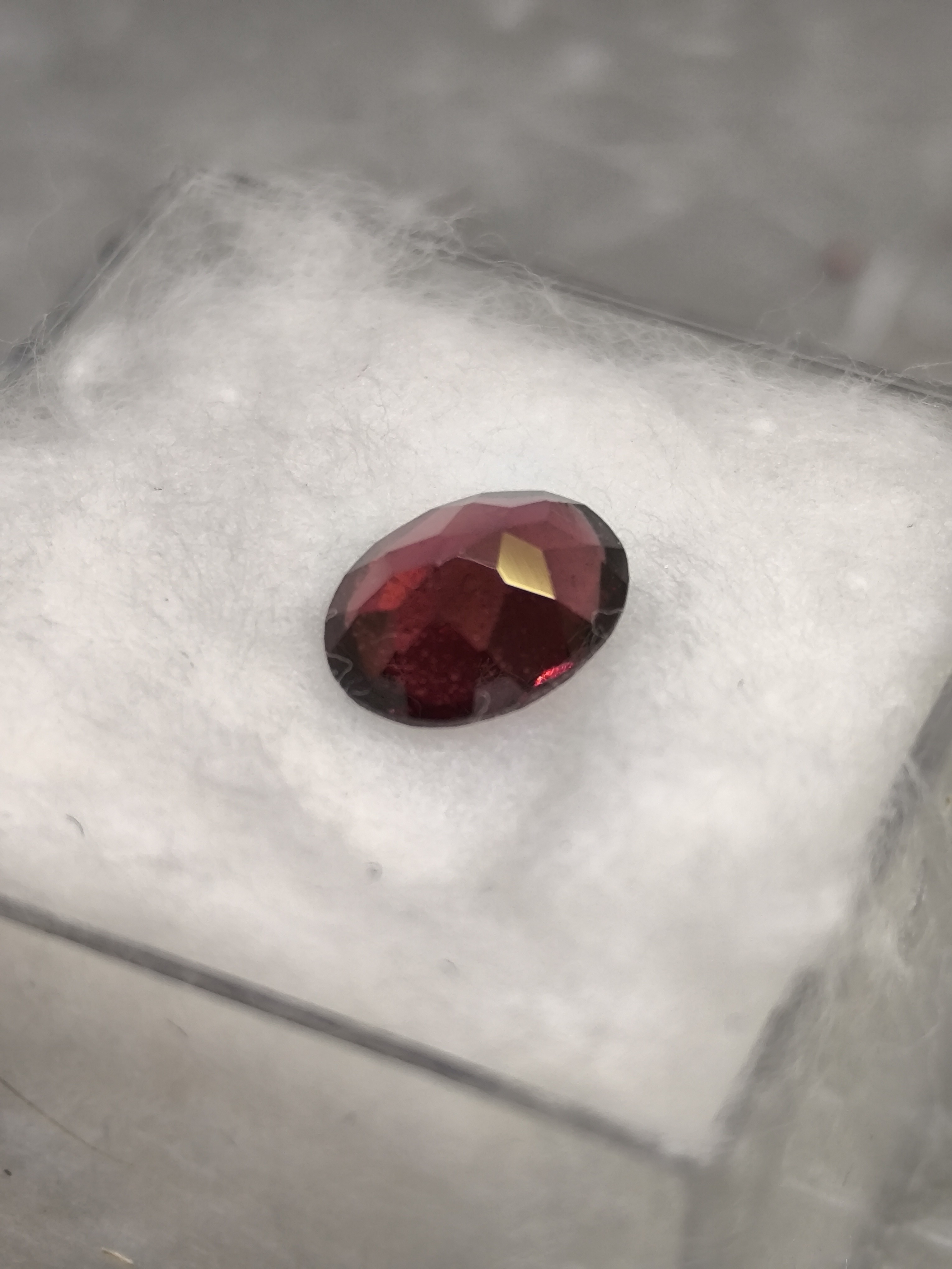 La taille ovale, élégante et intemporelle, permet une excellente diffusion de la lumière à travers les facettes, révélant de subtils reflets rouges et bordeaux selon l’angle d’observation. Malgré ses dimensions délicates, cette pierre offre une présence visuelle remarquable, signe d’un grenat de qualité supérieure.