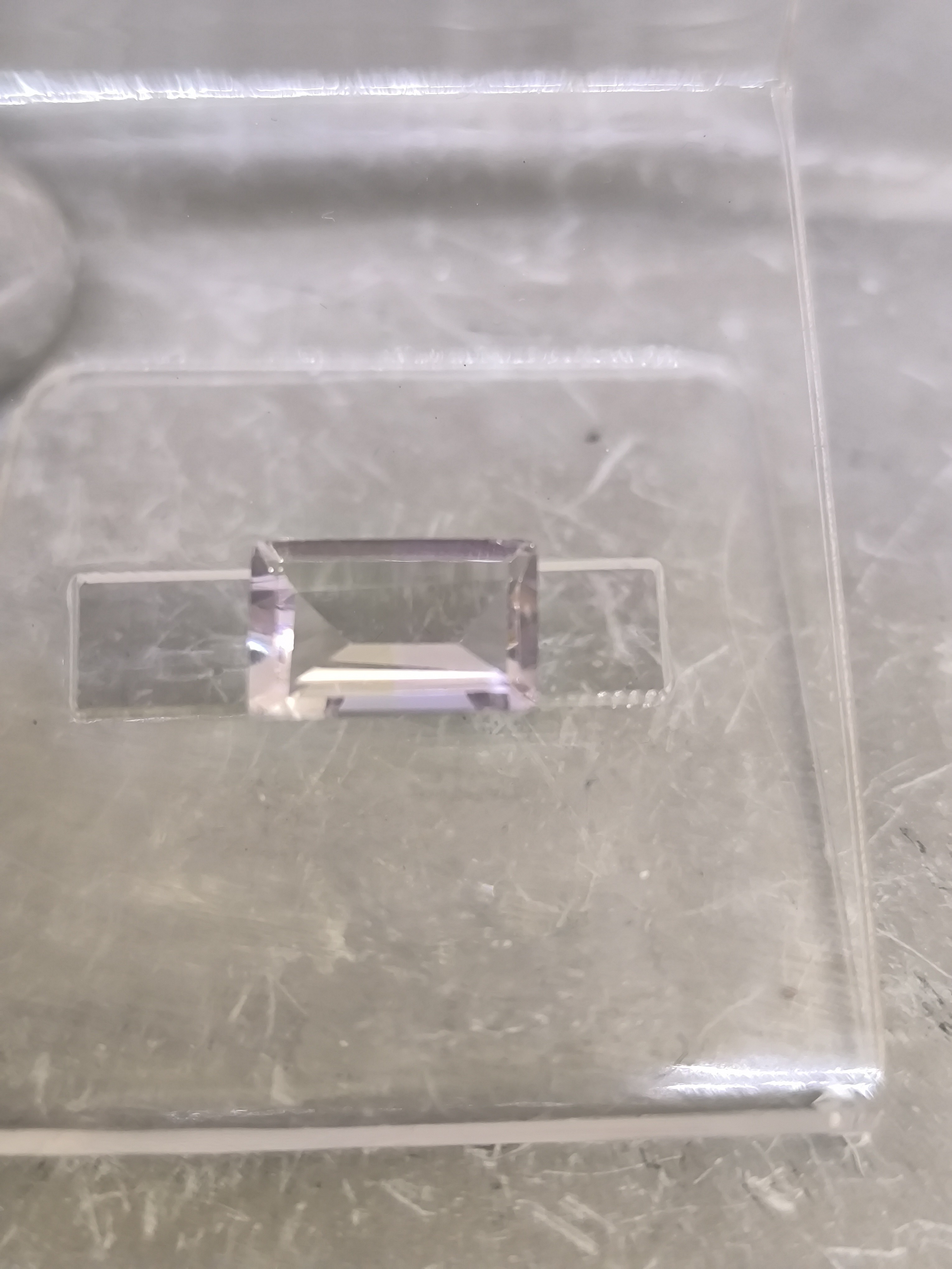 La taille émeraude, avec ses facettes larges et régulières, permet une excellente diffusion de la lumière, révélant la transparence naturelle de la pierre et ses subtils reflets rosés. Cette taille met particulièrement en valeur la pureté visuelle et l’élégance de l’améthyste rose.