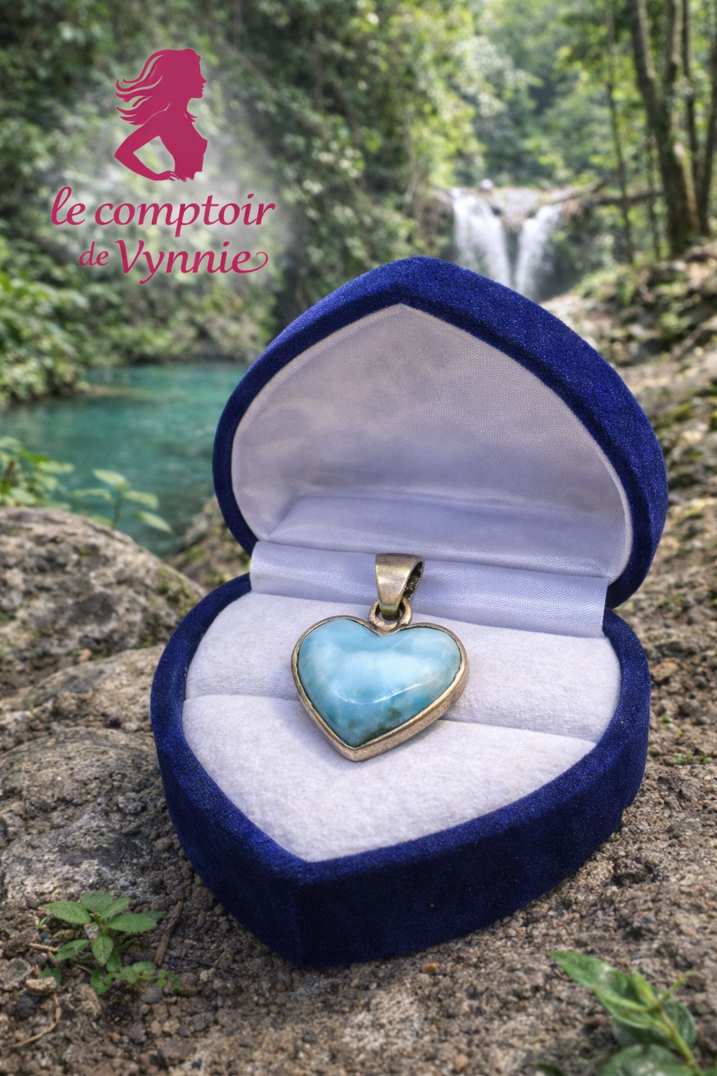 L’association du larimar avec la forme cœur renforce une symbolique forte :