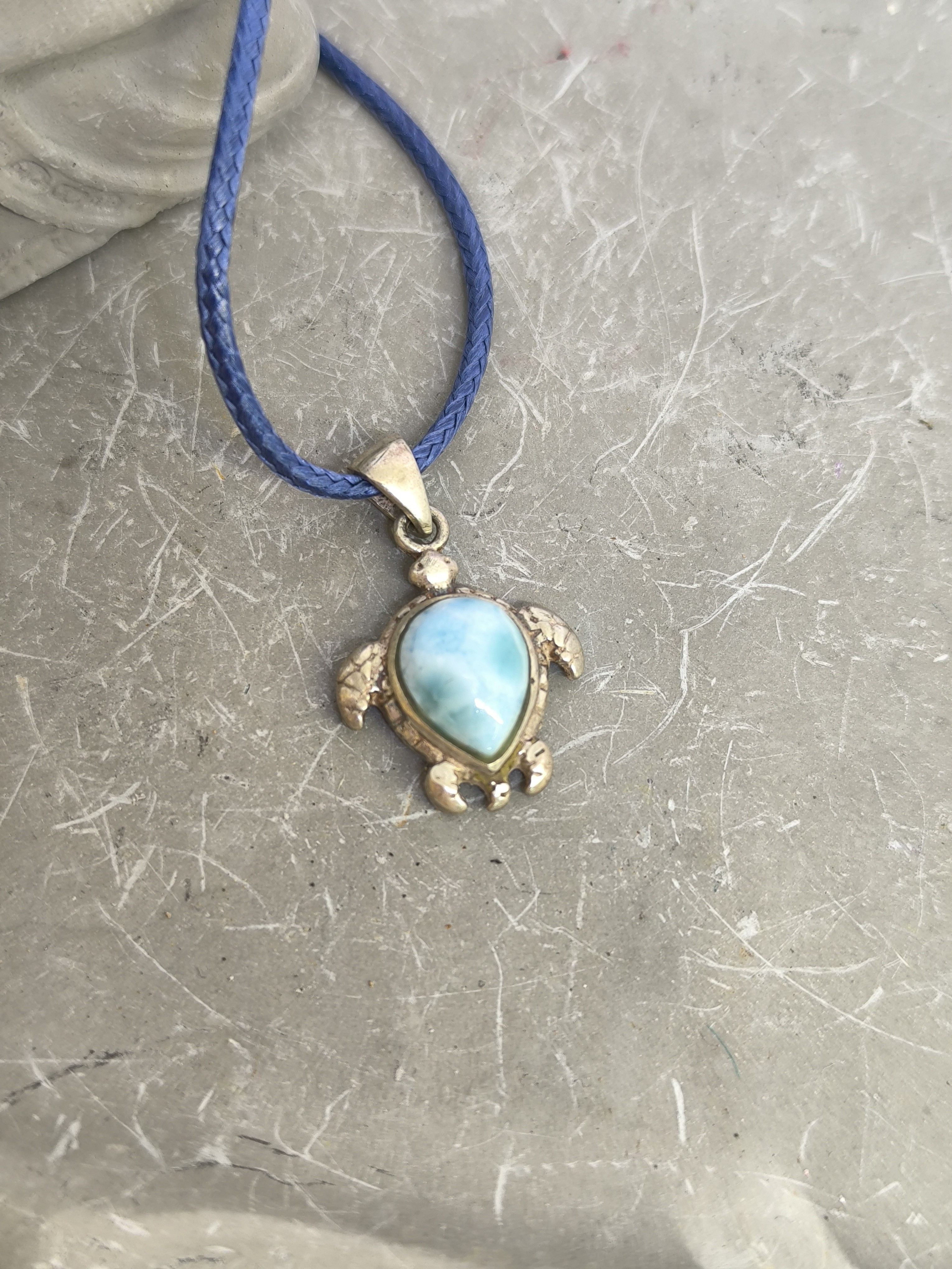 Pendentif Tortue en Larimar Naturel Monté sur Argent