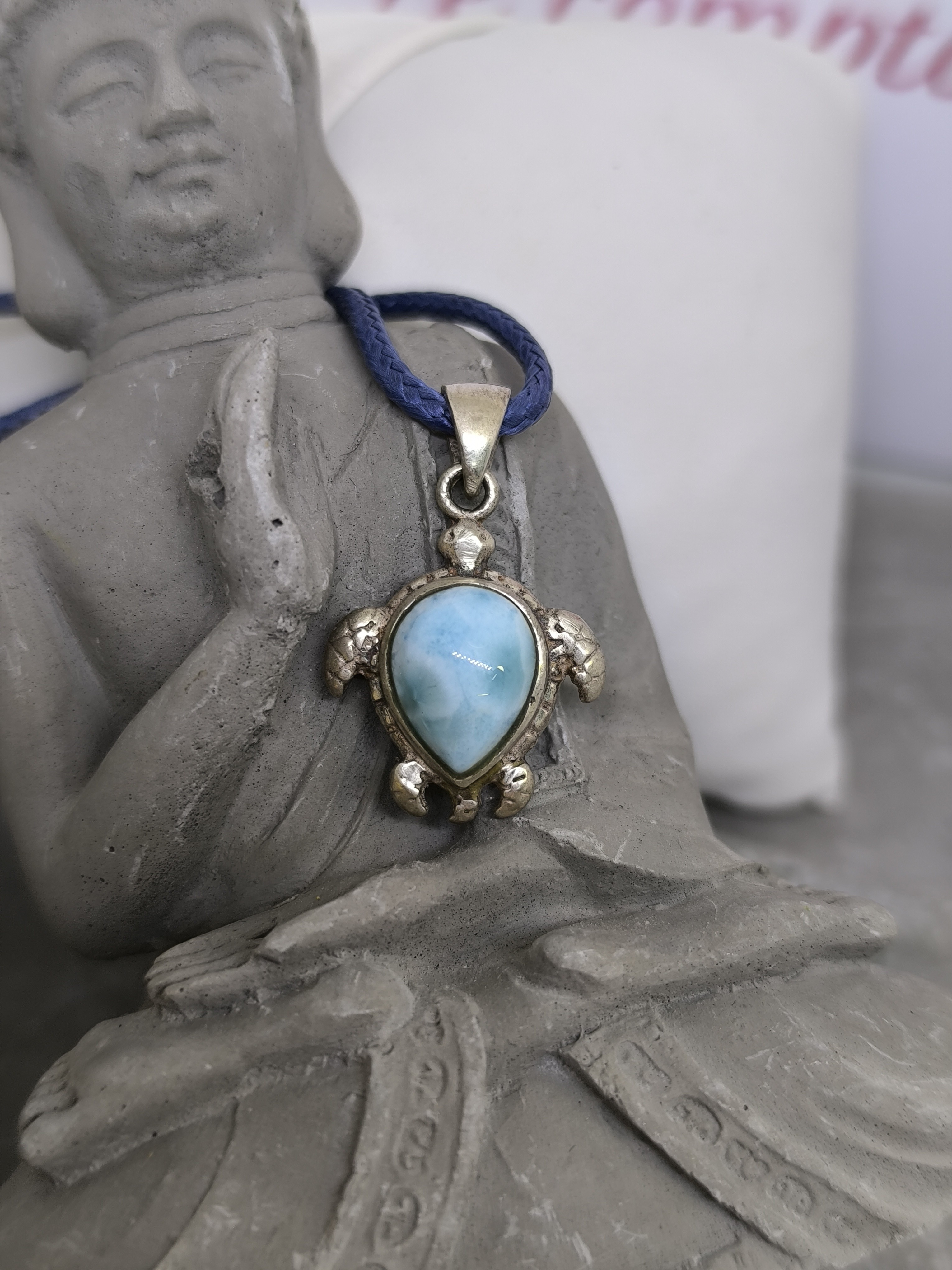 La tortue est un symbole universel de stabilité, de patience et de connexion à la Terre et à l’eau. Associée au larimar, elle devient un véritable talisman de douceur et d’harmonie.