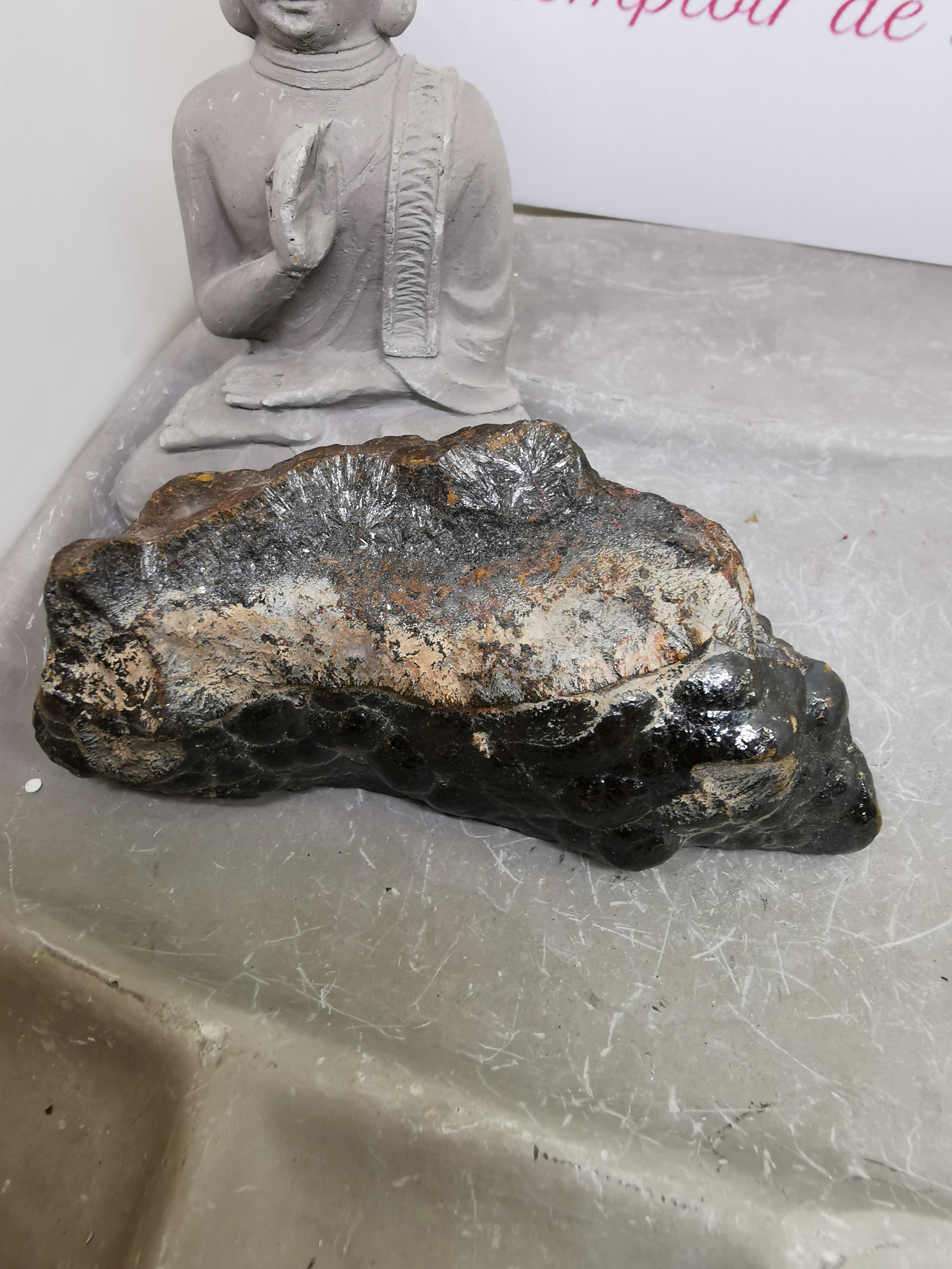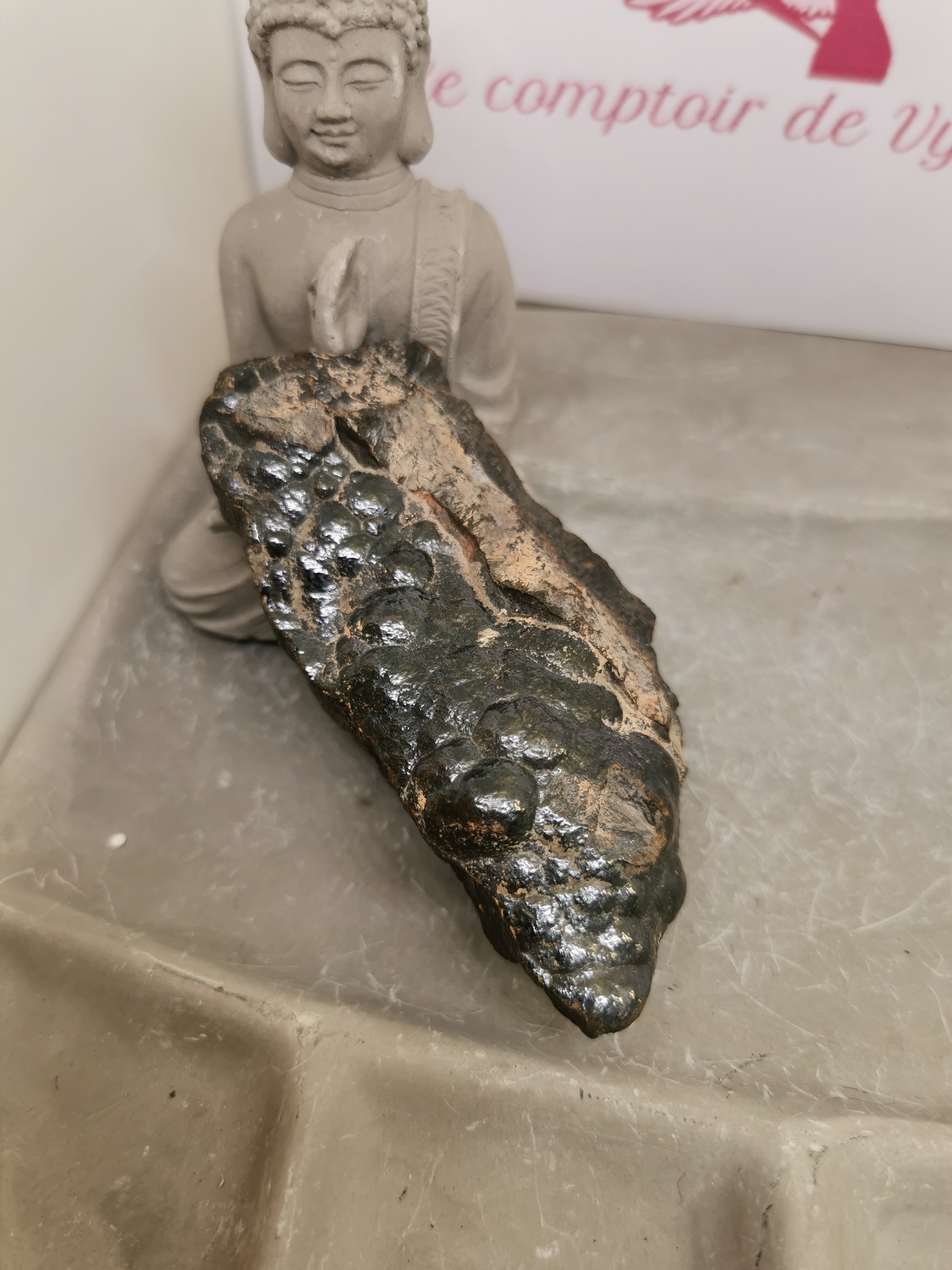 Placée dans un espace de vie ou de travail, l’hématite brute aide à créer une atmosphère stable, rassurante et structurante.