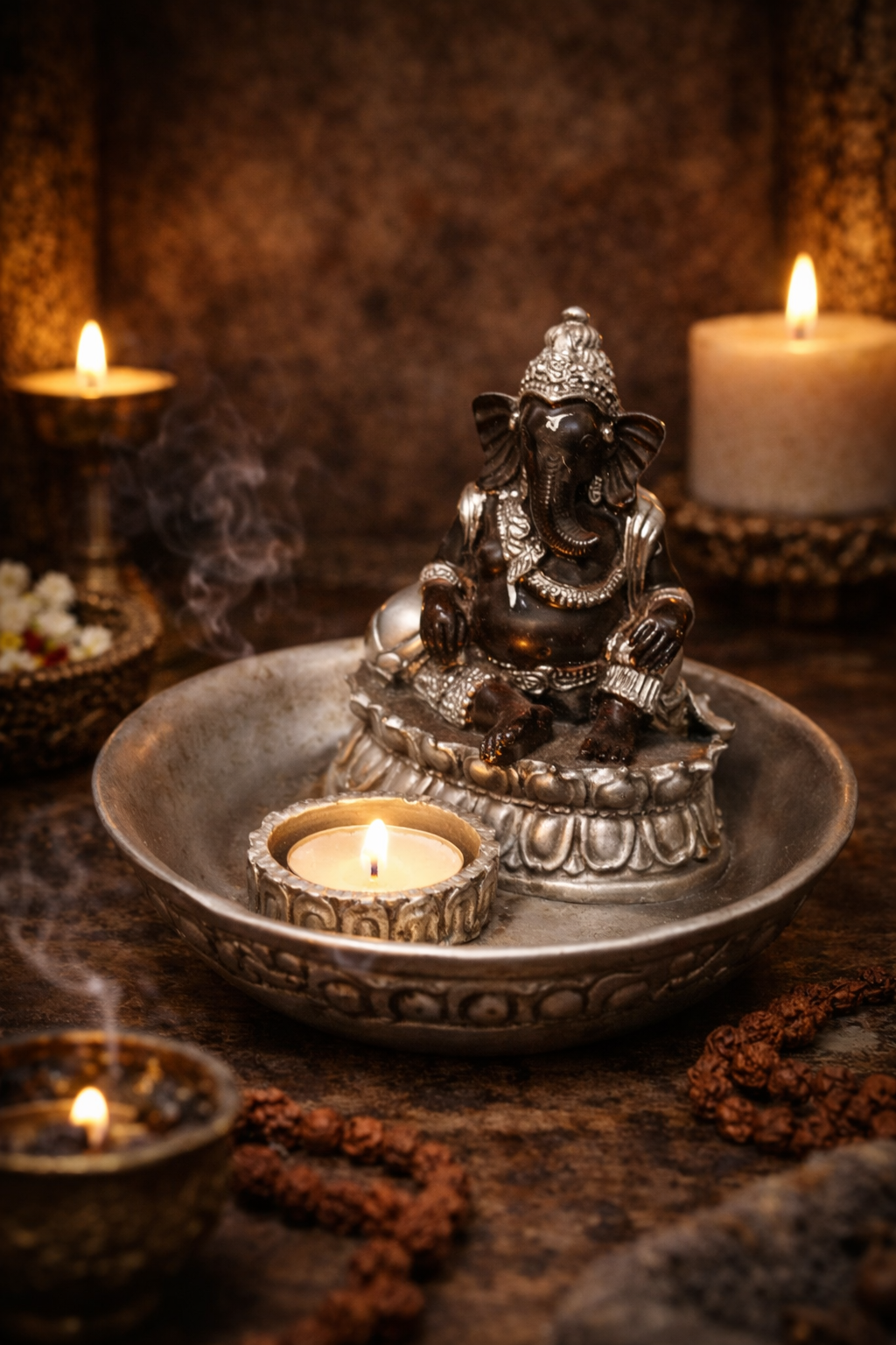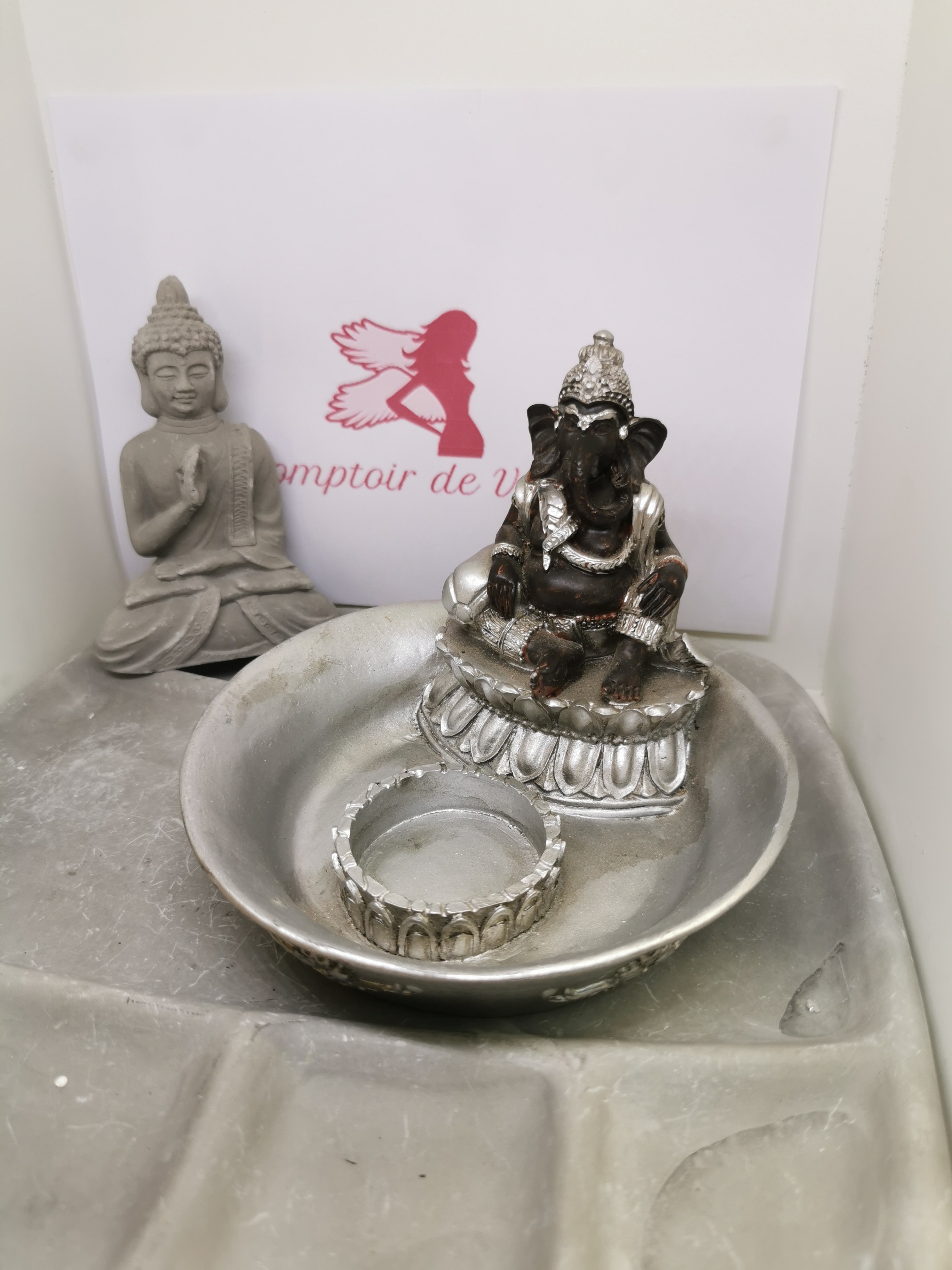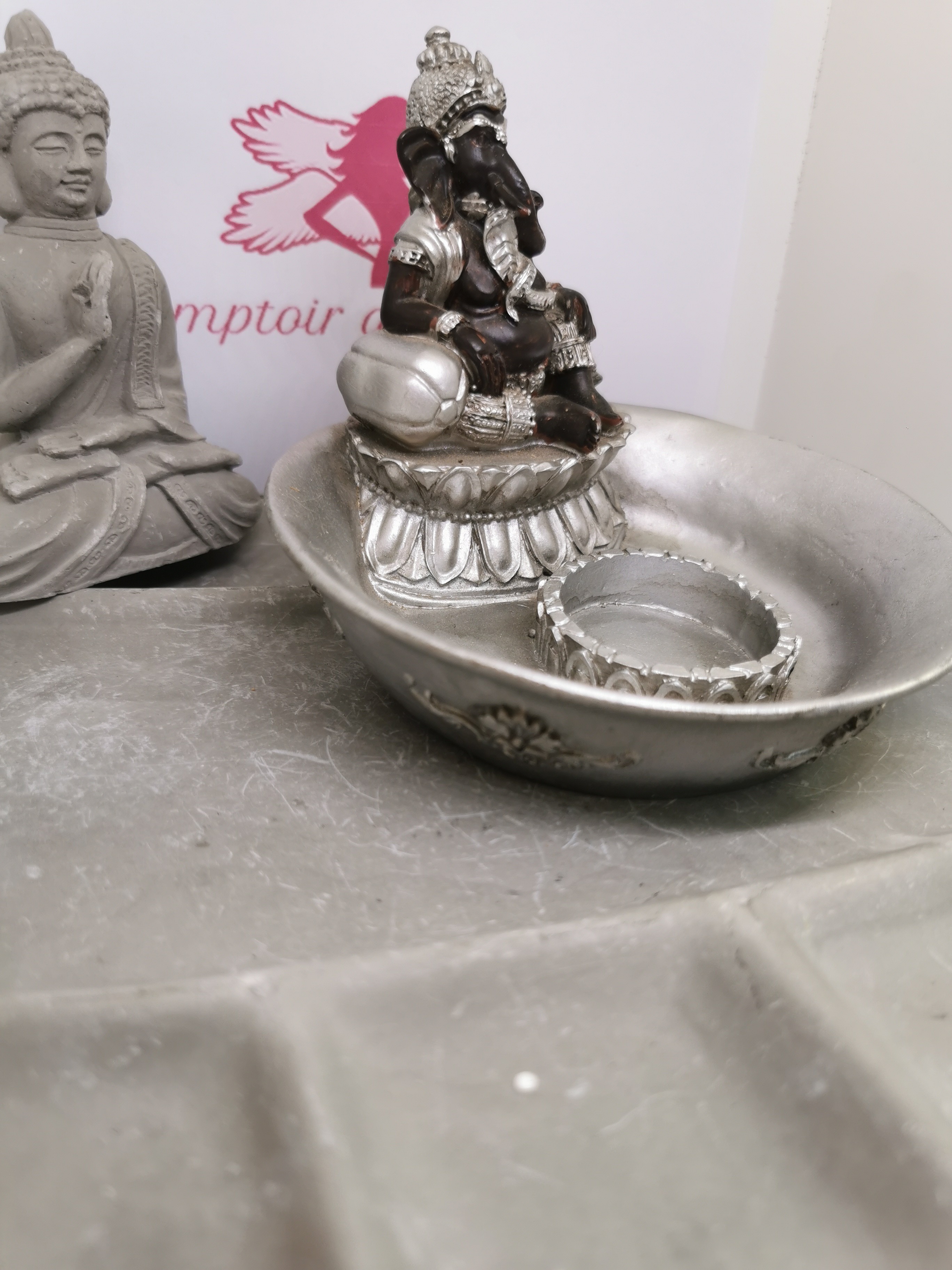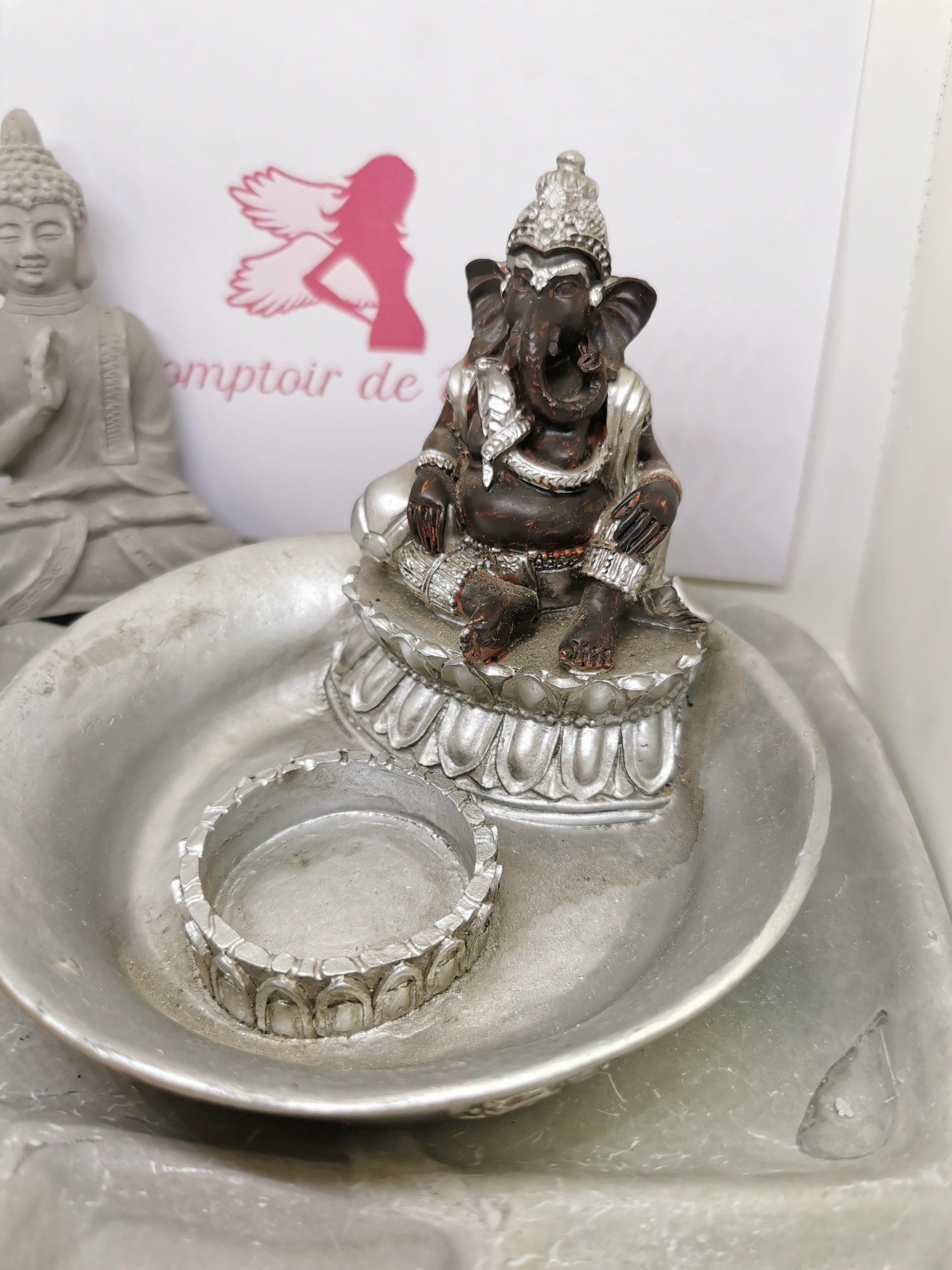 Vide-Poche & Porte-Bougie Ganesh Argenté