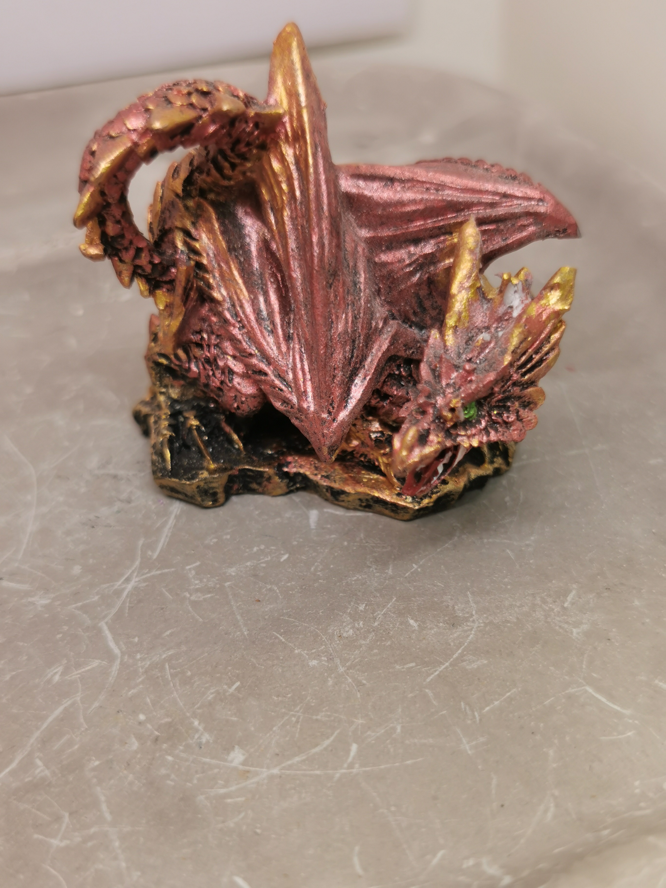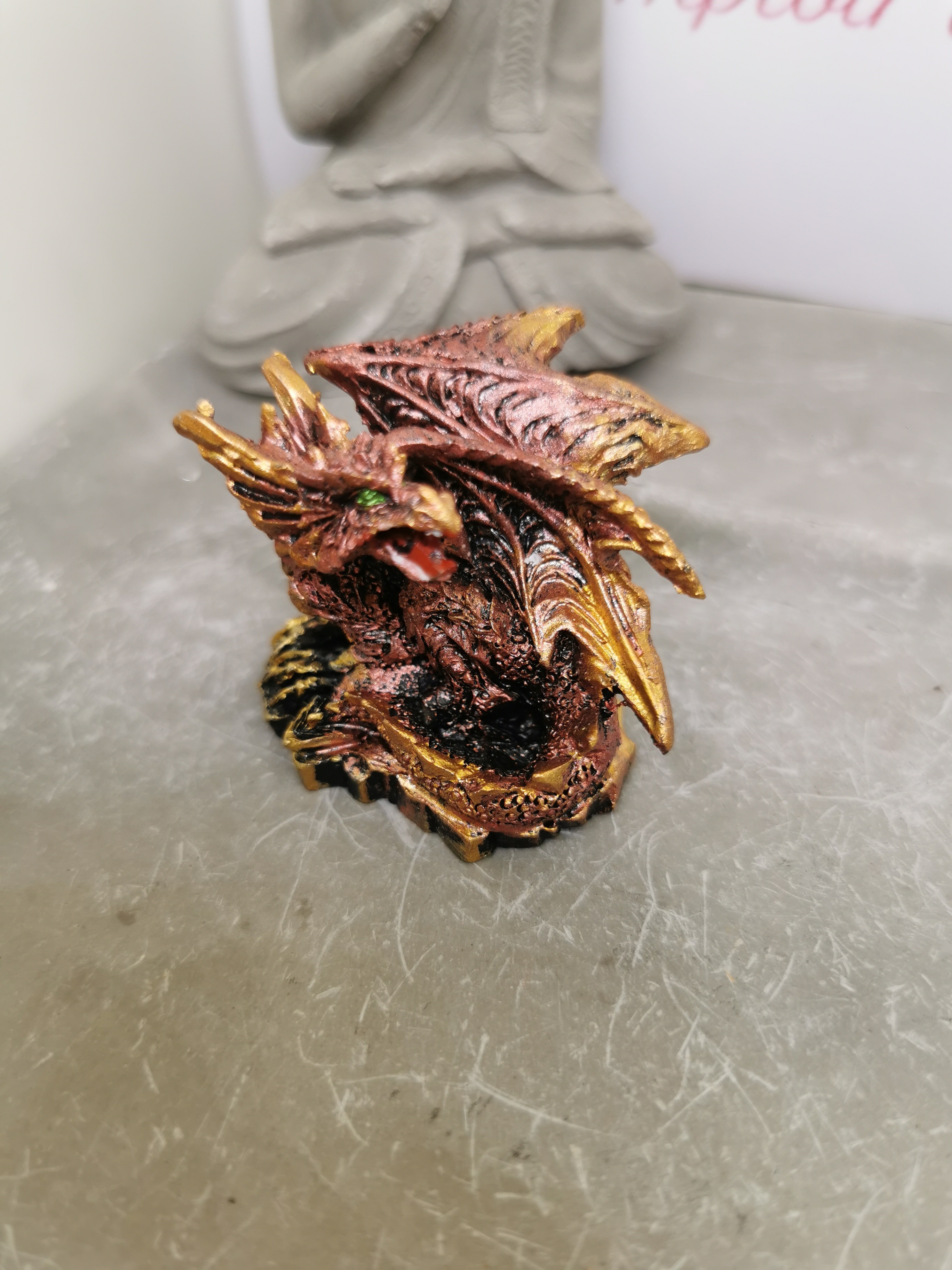 Chaque figurine est travaillée avec soin : écailles détaillées, ailes majestueuses, regard intense et finitions dorées qui soulignent la noblesse du dragon.