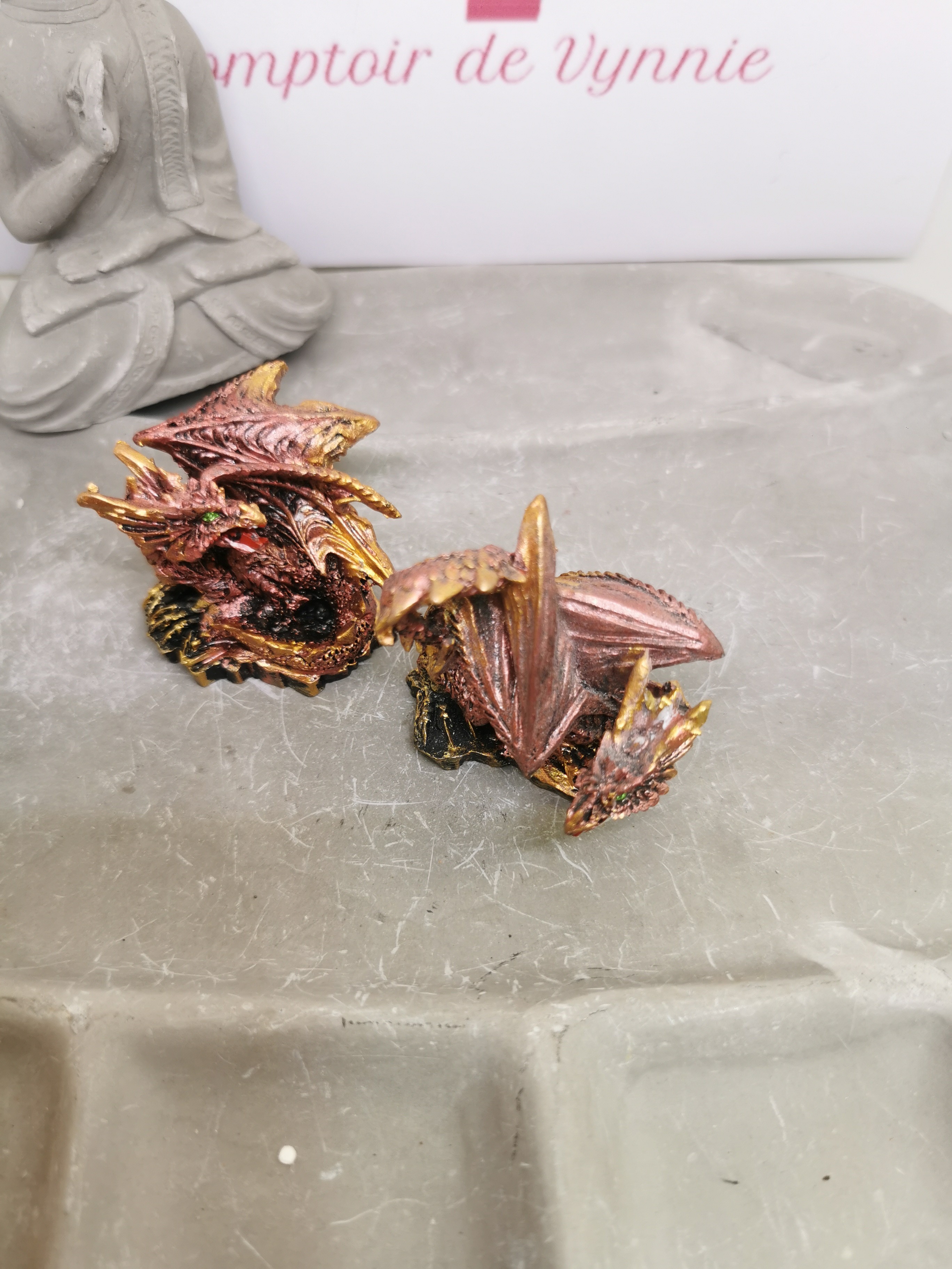 Découvrez ces petites statuettes de dragons cuivre et doré, finement décorées et riches en détails. Leur teinte chaude et profonde évoque la puissance ancestrale, la force de la terre et l’énergie du feu maîtrisé.