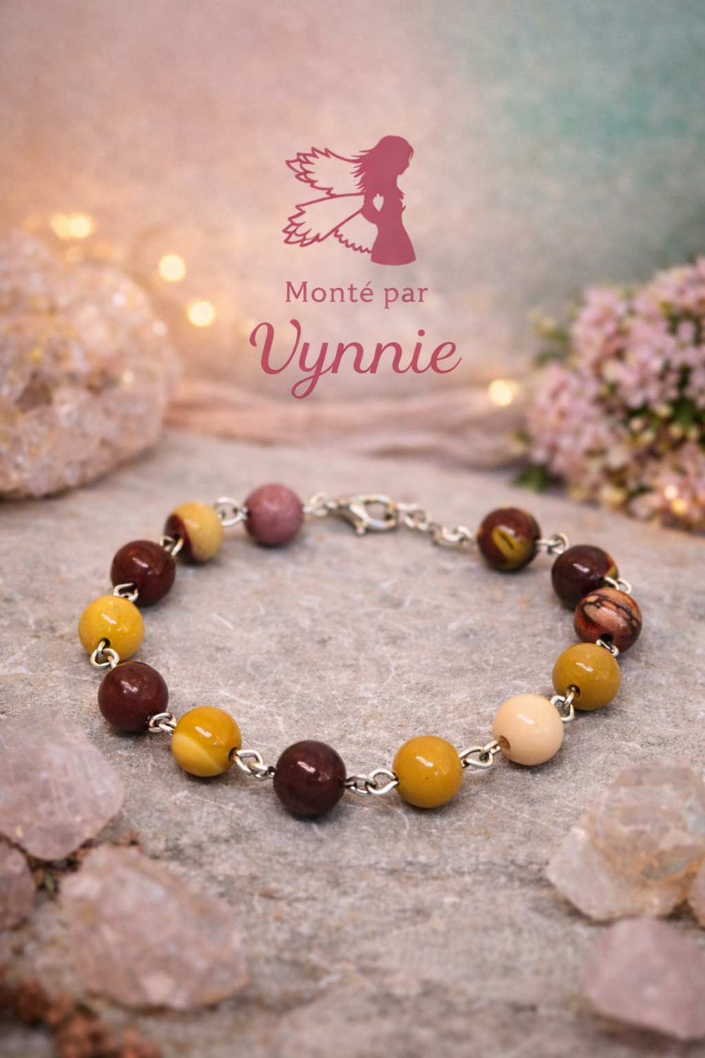 Chaque bracelet est unique : les nuances naturelles de la Mookaïte rendent chaque pièce différente et authentique.