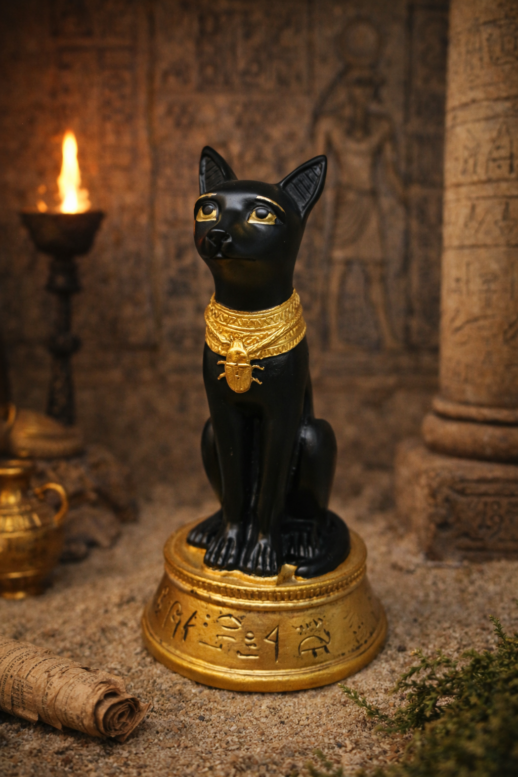Posséder une représentation de chat sacré était un signe de protection divine. Il veillait sur les lieux de vie, protégeait des influences néfastes et favorisait l’équilibre entre le monde matériel et spirituel.