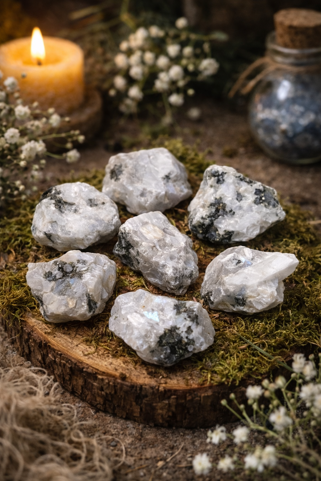Depuis l’Antiquité, la pierre de lune est associée aux déesses lunaires et à l’énergie féminine sacrée. Elle symbolise la réceptivité, la douceur et le mystère.