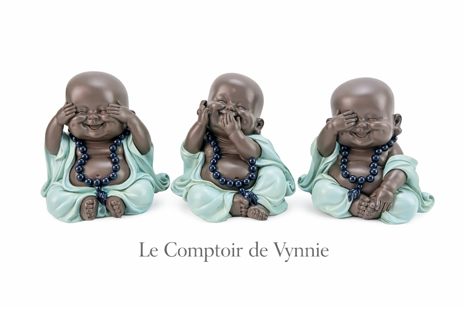 Avec leurs expressions douces et souriantes, ces petits bouddhas diffusent une énergie apaisante et positive. Leur finition délicate et leurs détails soignés en font une pièce décorative idéale pour :