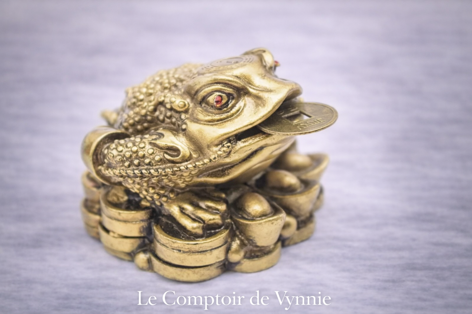 Représentée assise sur un tas de pièces et tenant une pièce dans la bouche, cette figurine est réputée pour attirer la richesse et favoriser la chance matérielle.