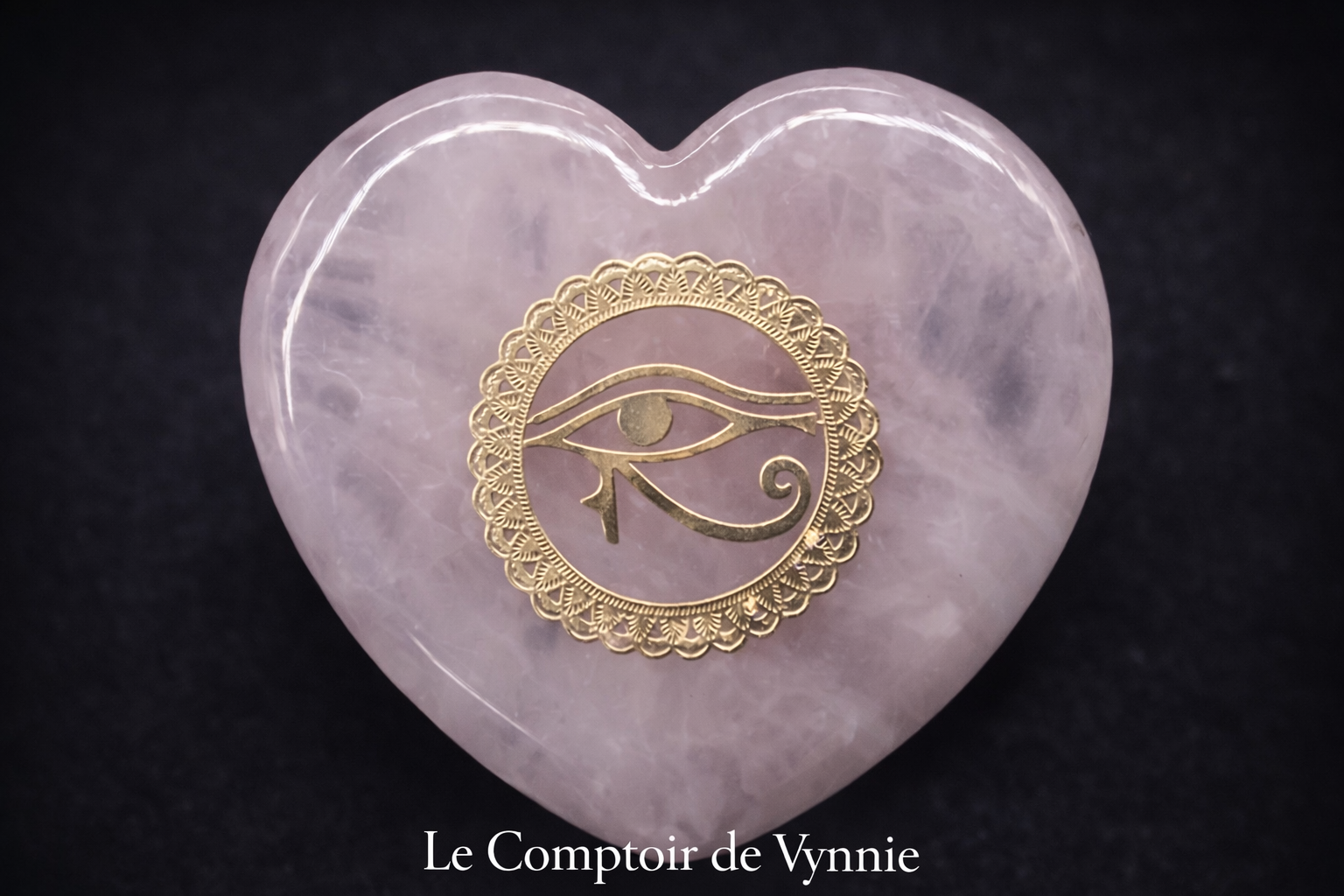 Découvrez ce magnifique cœur en quartz rose naturel, orné d’un élégant symbole doré représentant l’Œil d’Horus, puissant emblème de protection et de sagesse spirituelle.