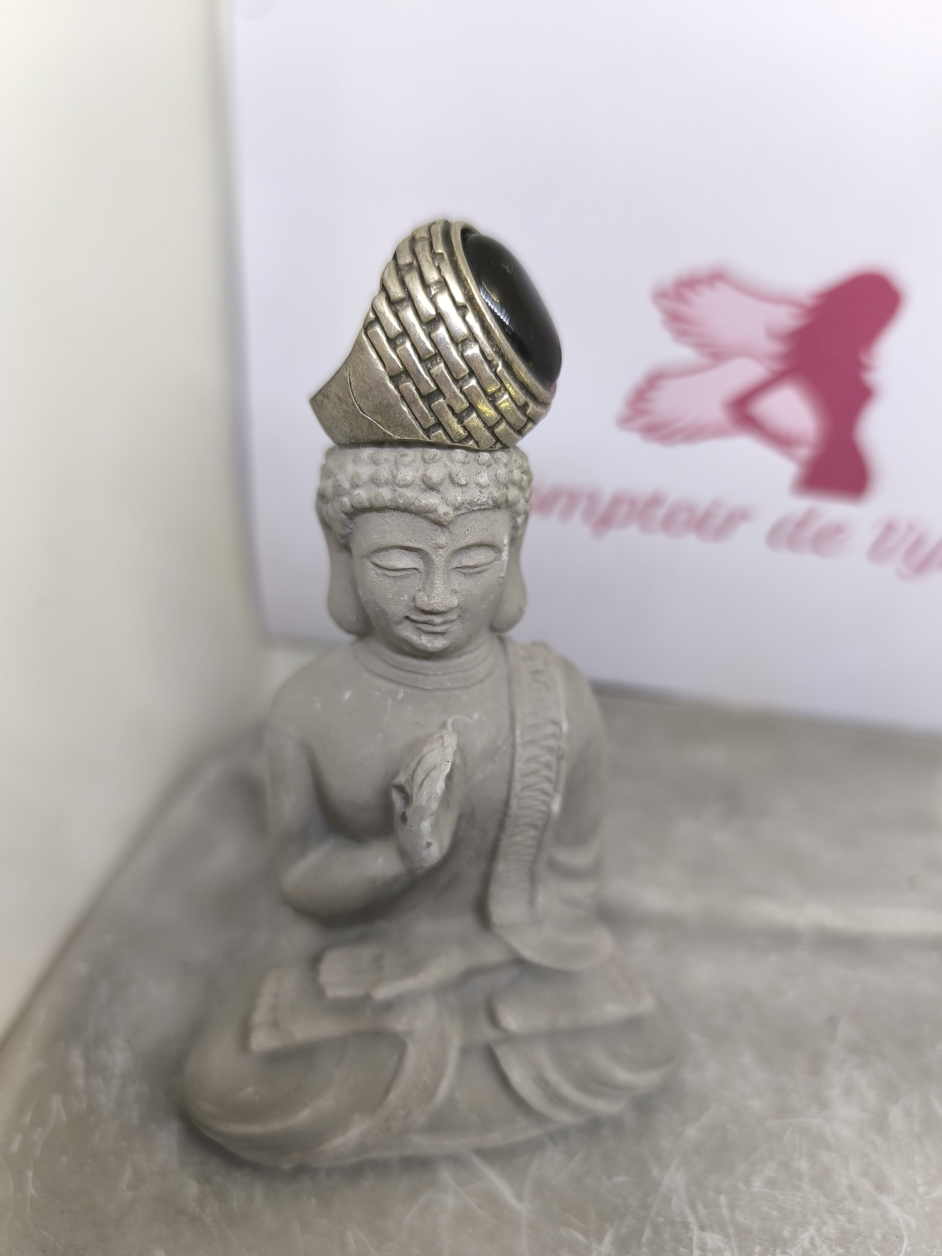 En son centre, une agate noire polie, profonde et intense, capte le regard et apporte une touche élégante et affirmée.