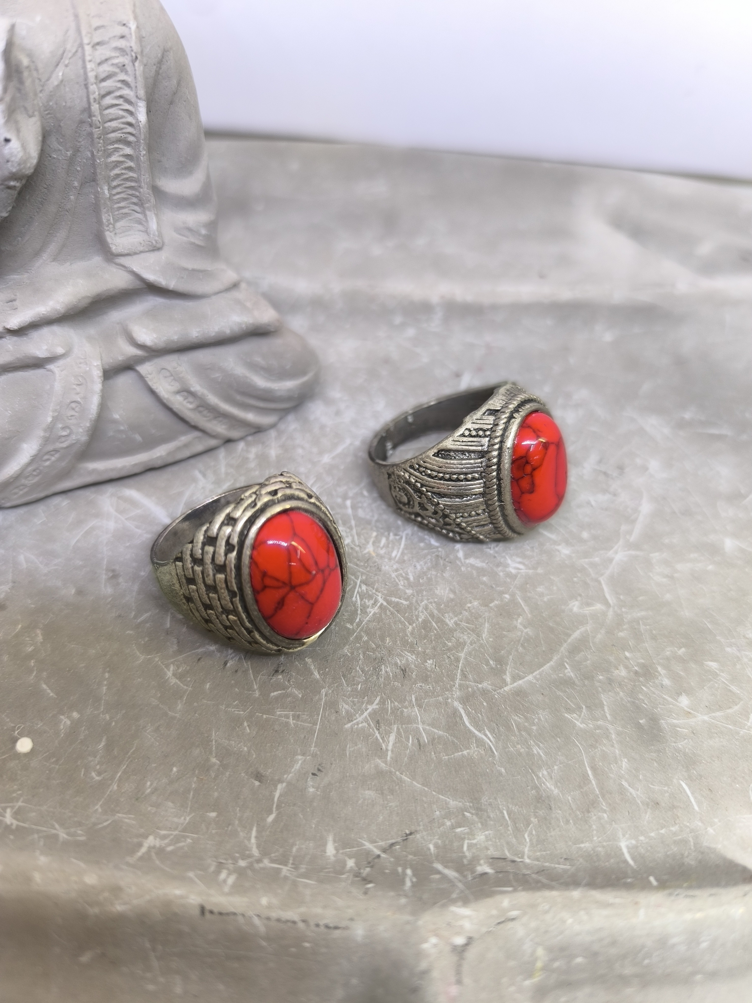 Bague Homme Argent Acier Inoxydable et Howlite Rouge