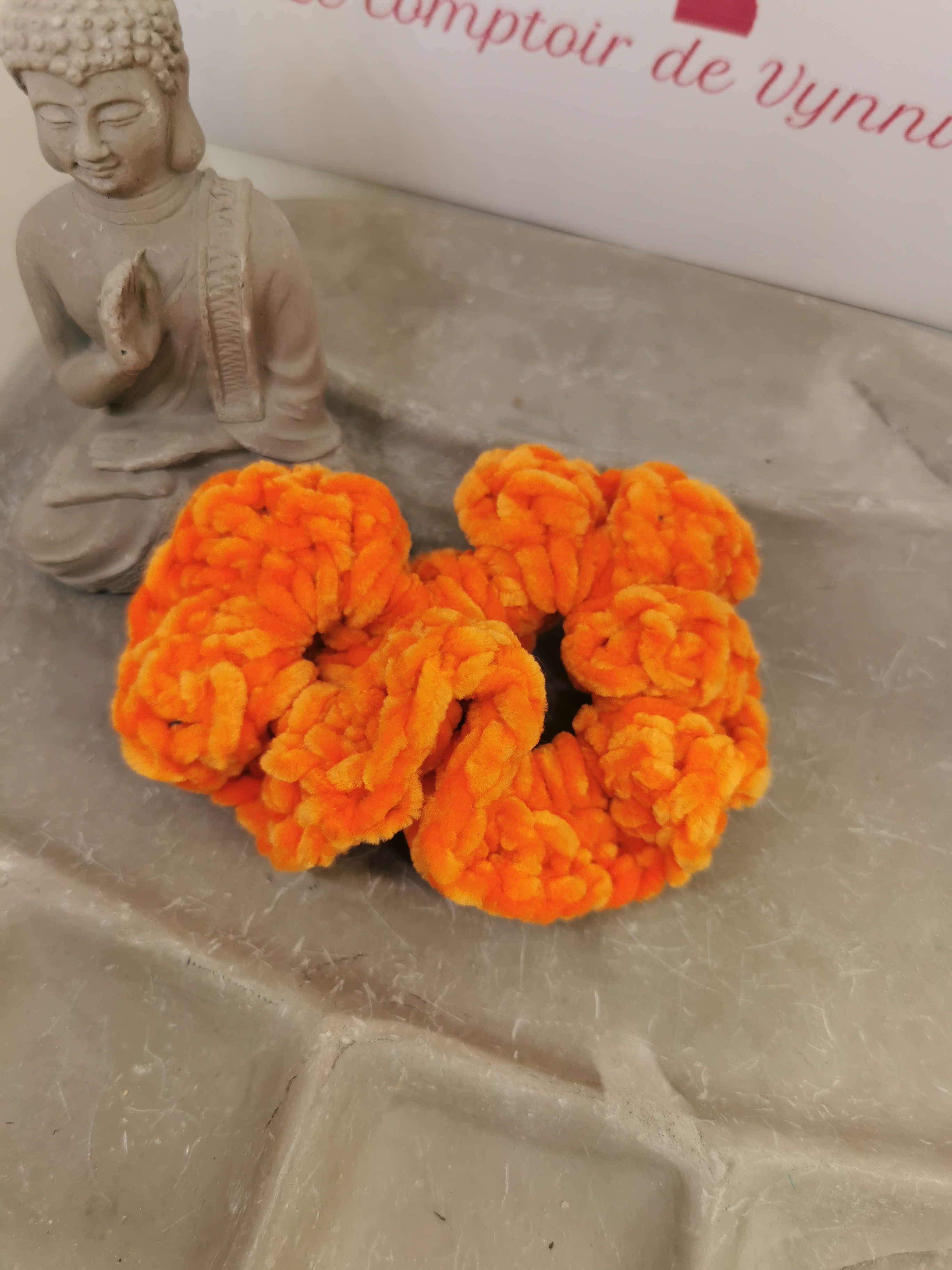 Apportez élégance et originalité à vos coiffures grâce à notre chouchou en crochet fait main, conçu pour allier confort, durabilité et style. Issu de la collection artisanale de Vynnie, ce chouchou est parfait pour toutes les occasions, qu’il s’agisse d’une journée décontractée ou d’un événement spécial. Avec sa couleur tendance "Orange" et sa texture unique, il devient un accessoire incontournable pour sublimer vos cheveux.