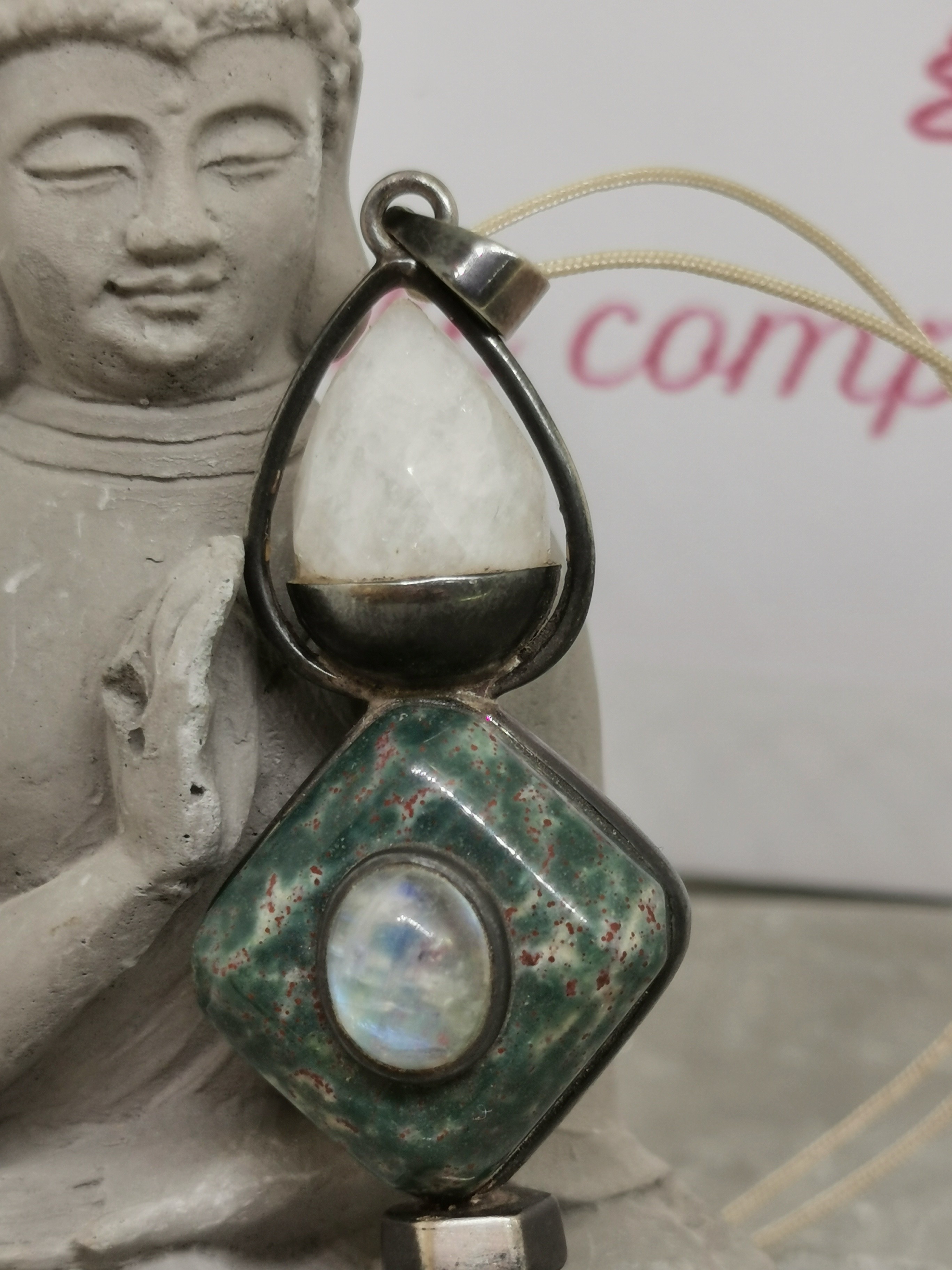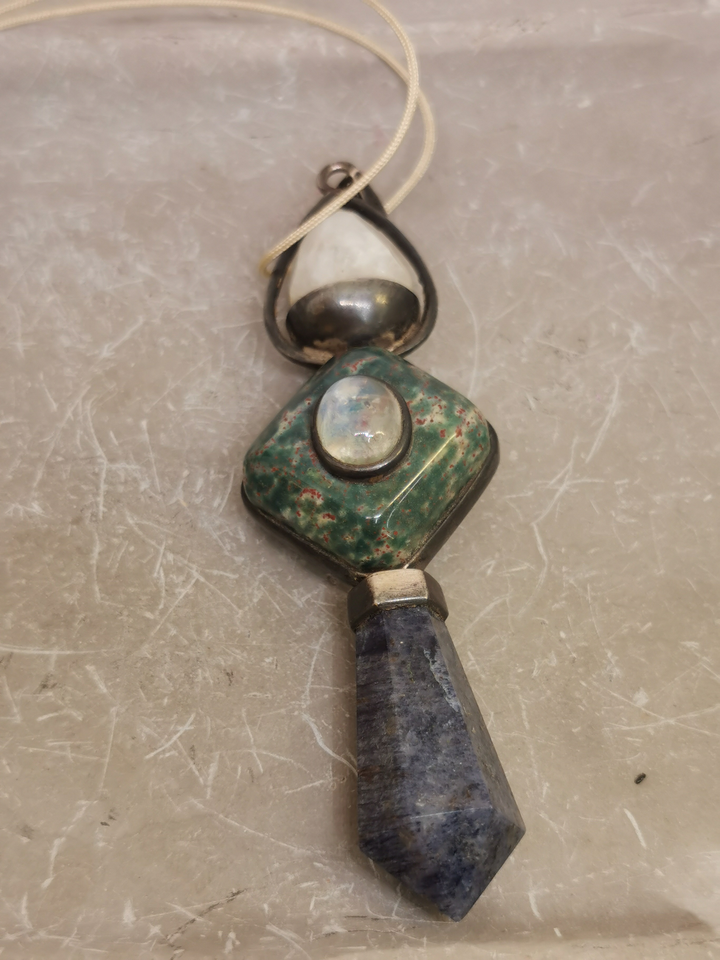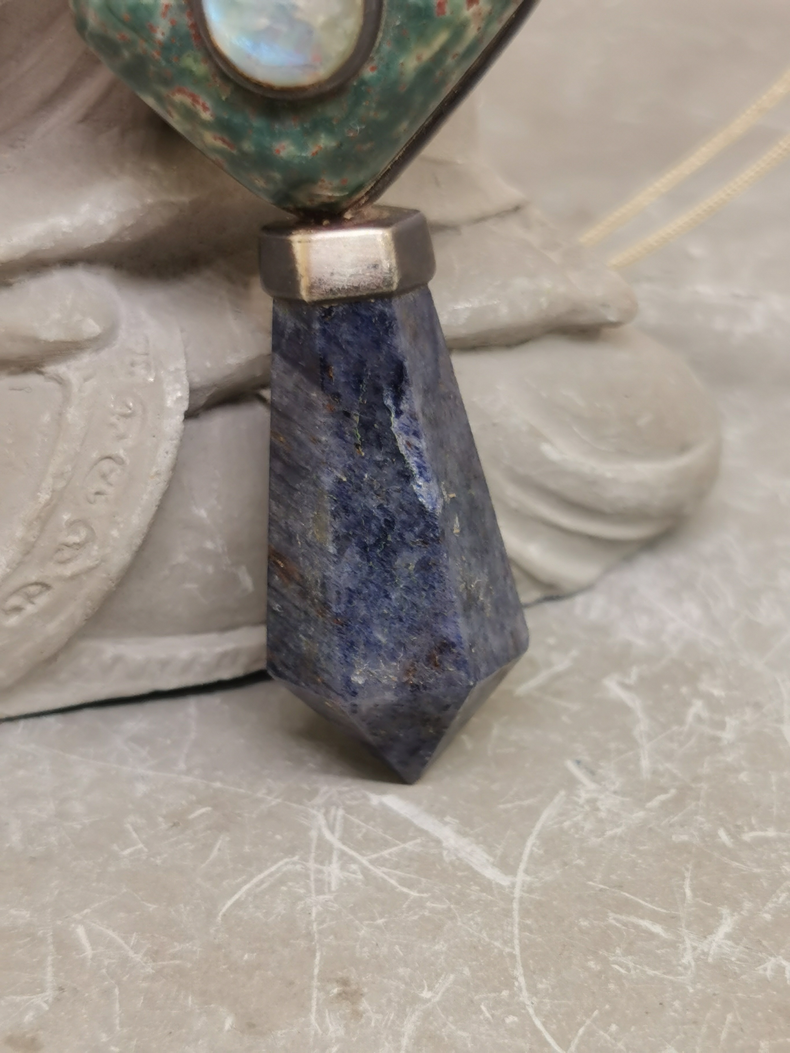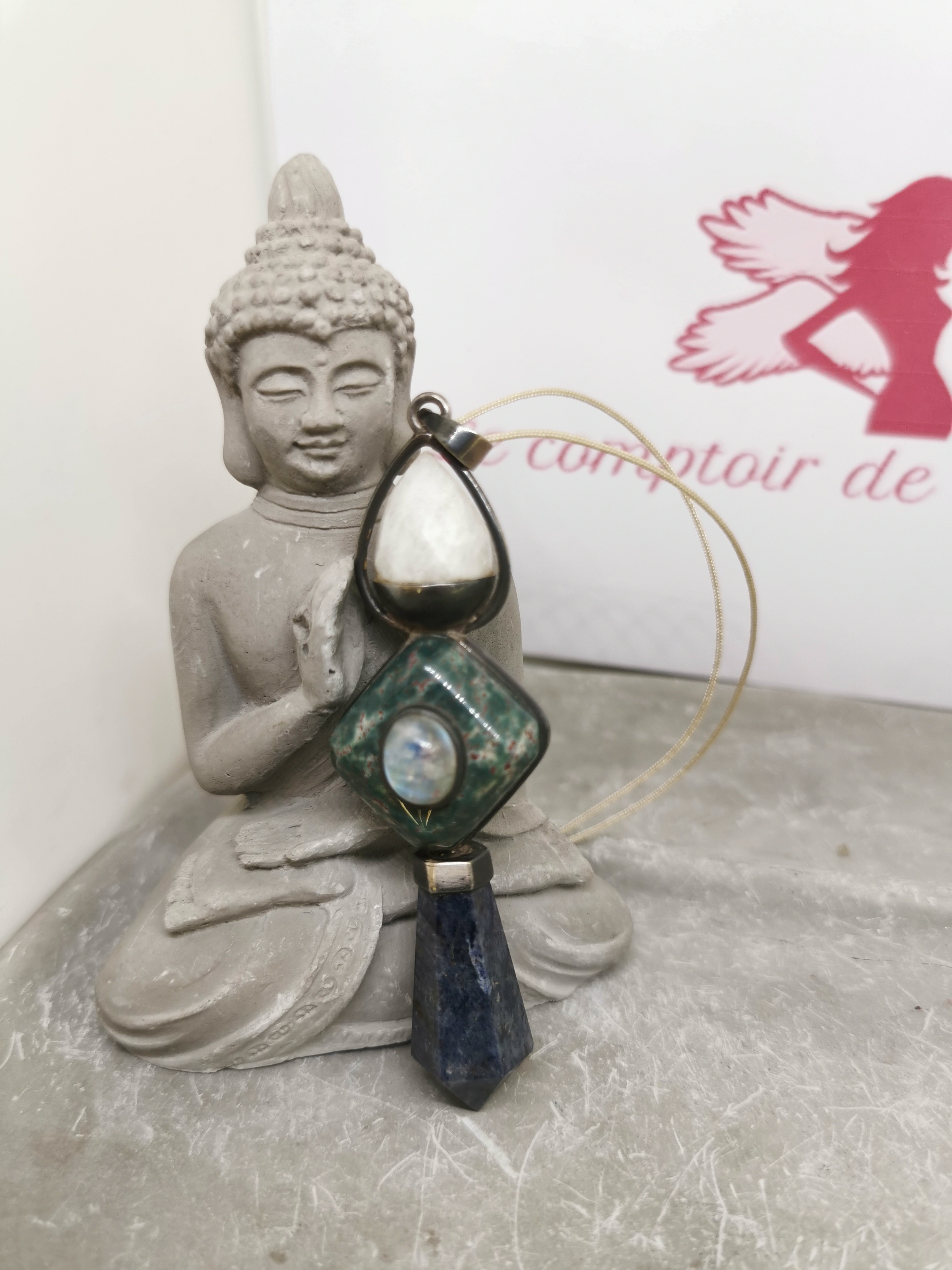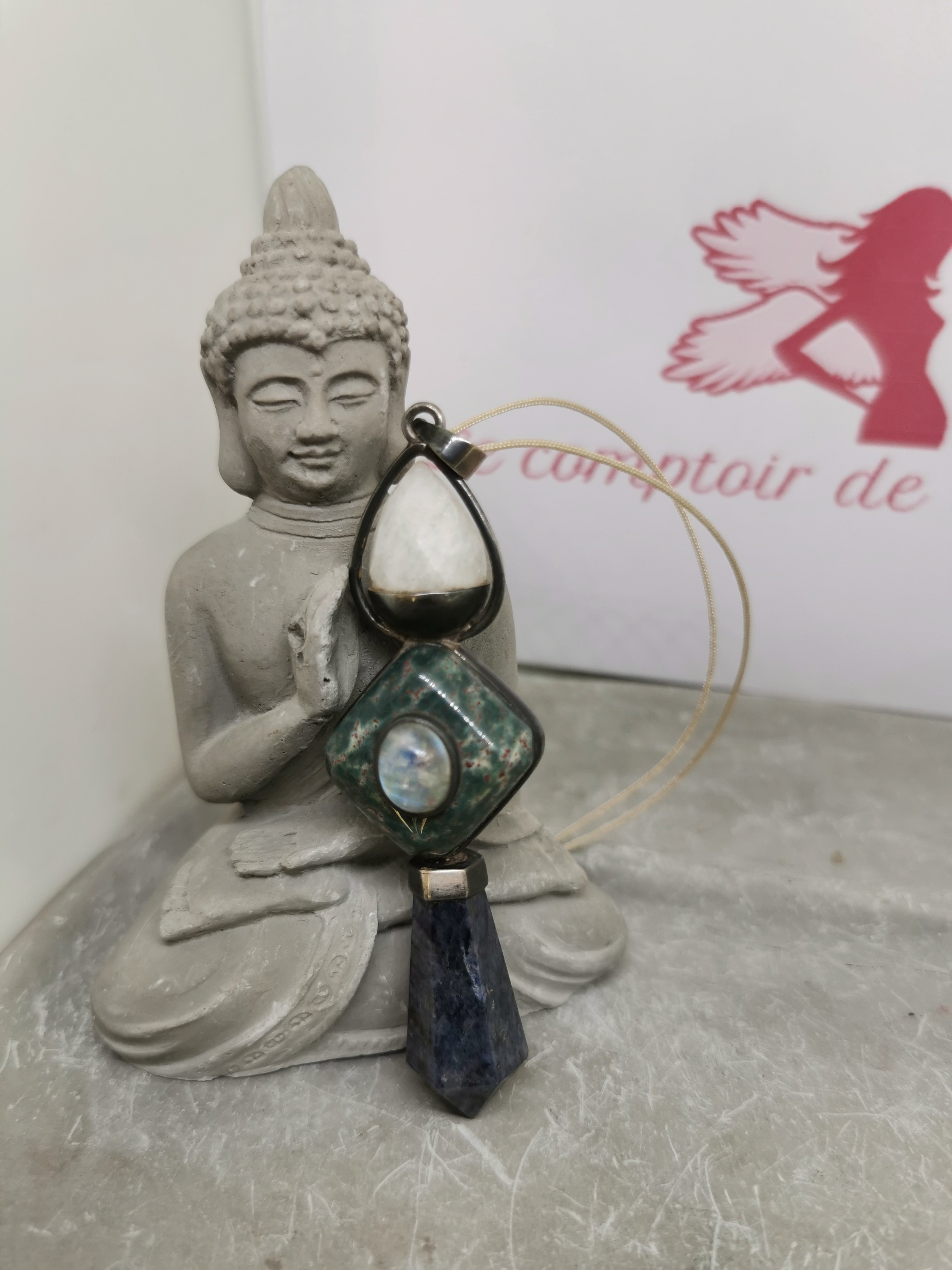 Pendule Sodalite, Pierre de Lune, Cristal de Roche & Pierre Sang de Dragon