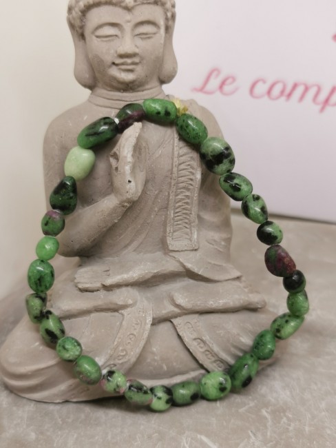 Ce bracelet en zoïsite naturelle est monté sur élastique pour un port confortable et pratique.