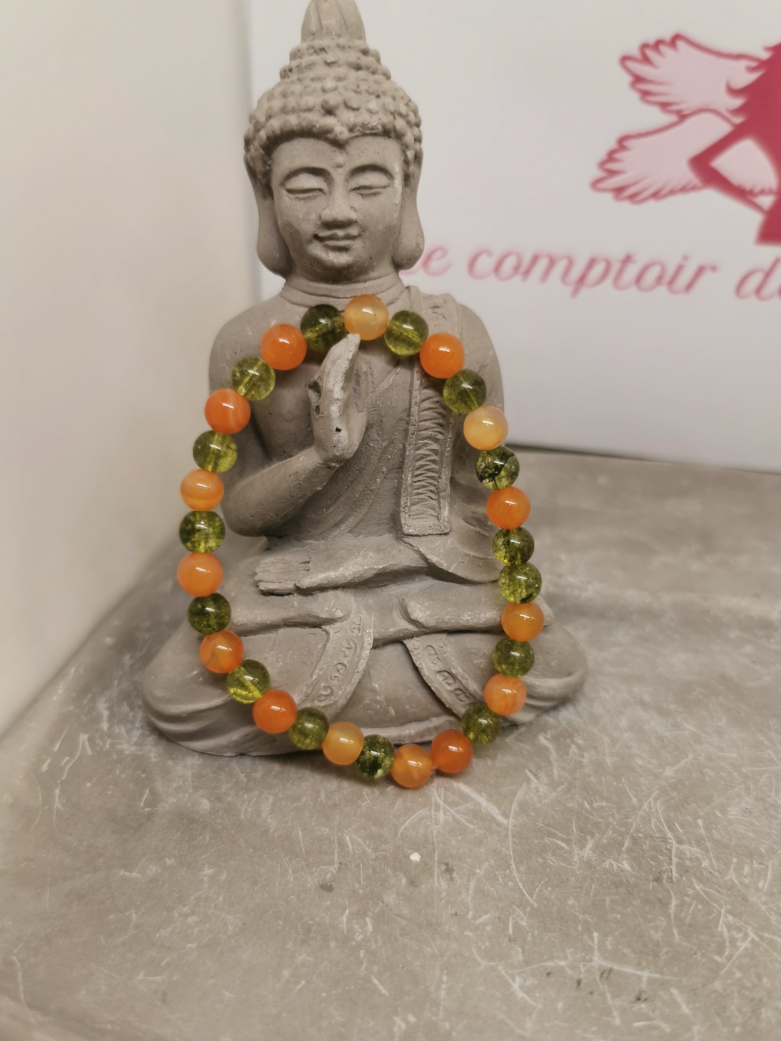 Ce bracelet en pierres naturelles de péridot et de cornaline associe deux minéraux aux couleurs vibrantes qui évoquent l’énergie, la vitalité et la joie de vivre.