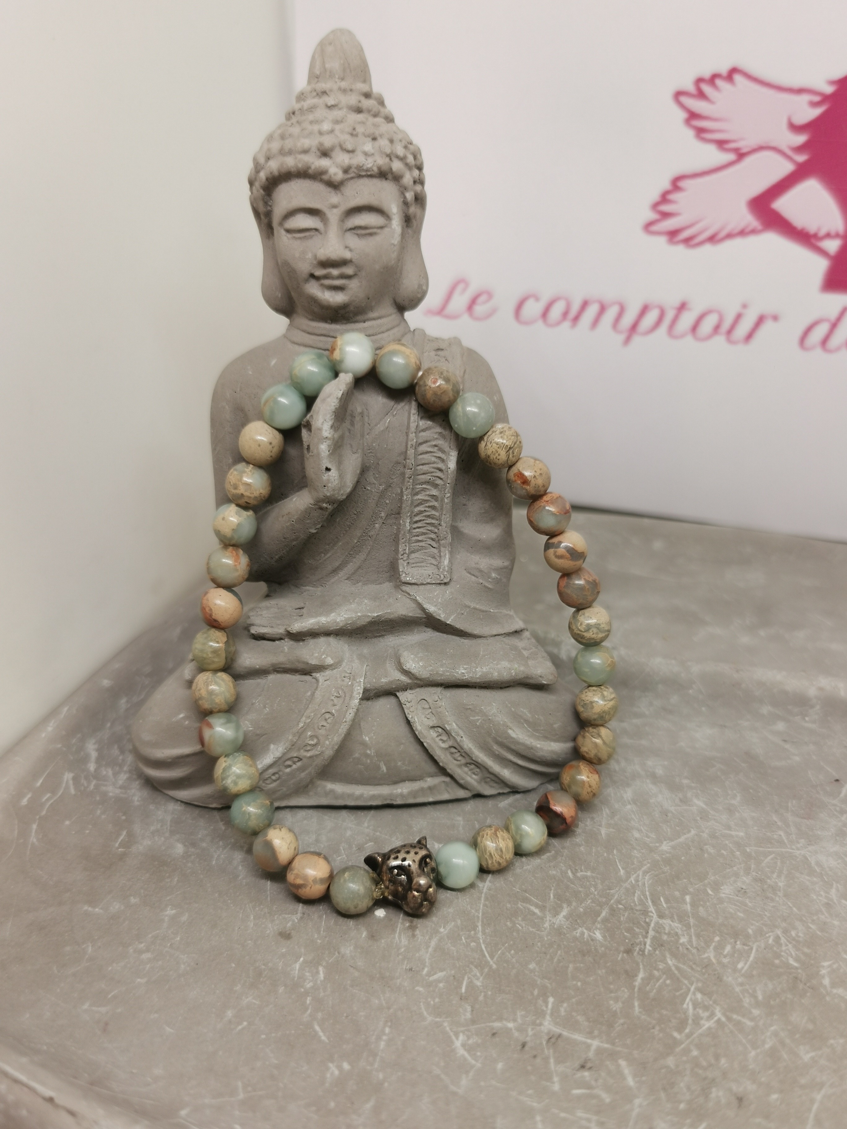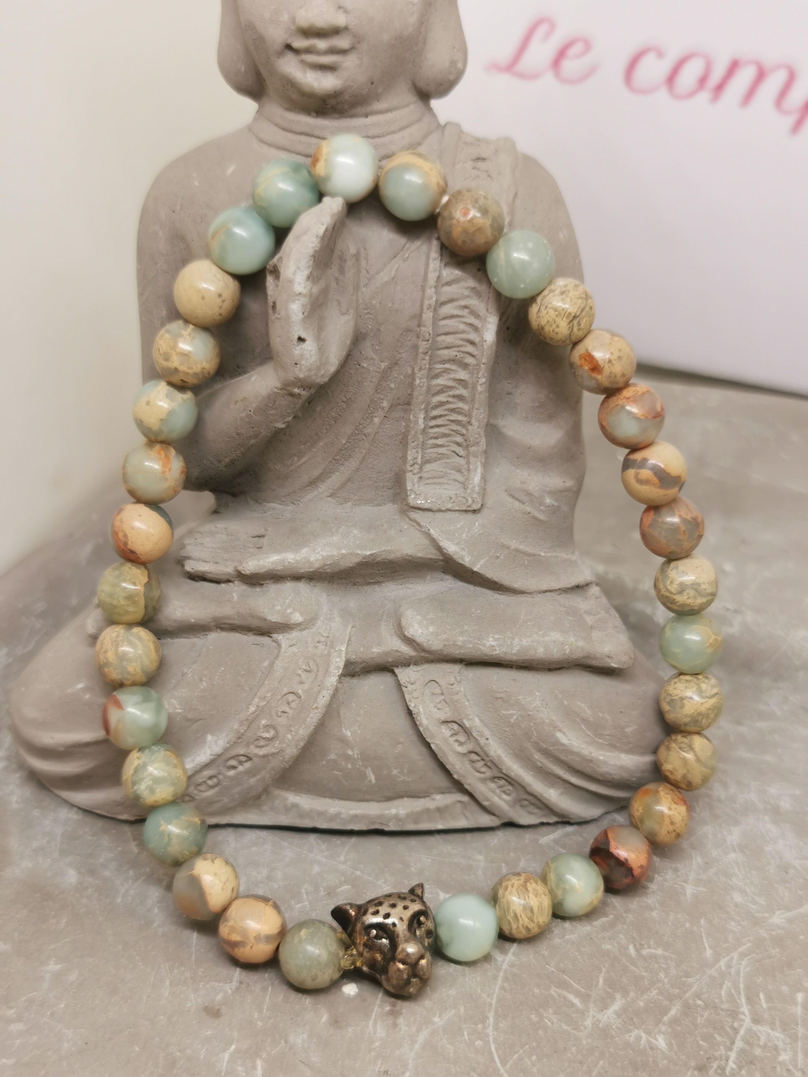 Chaque pierre étant naturelle, ses couleurs et motifs peuvent légèrement varier d’un bracelet à l’autre, rendant chaque pièce unique.
