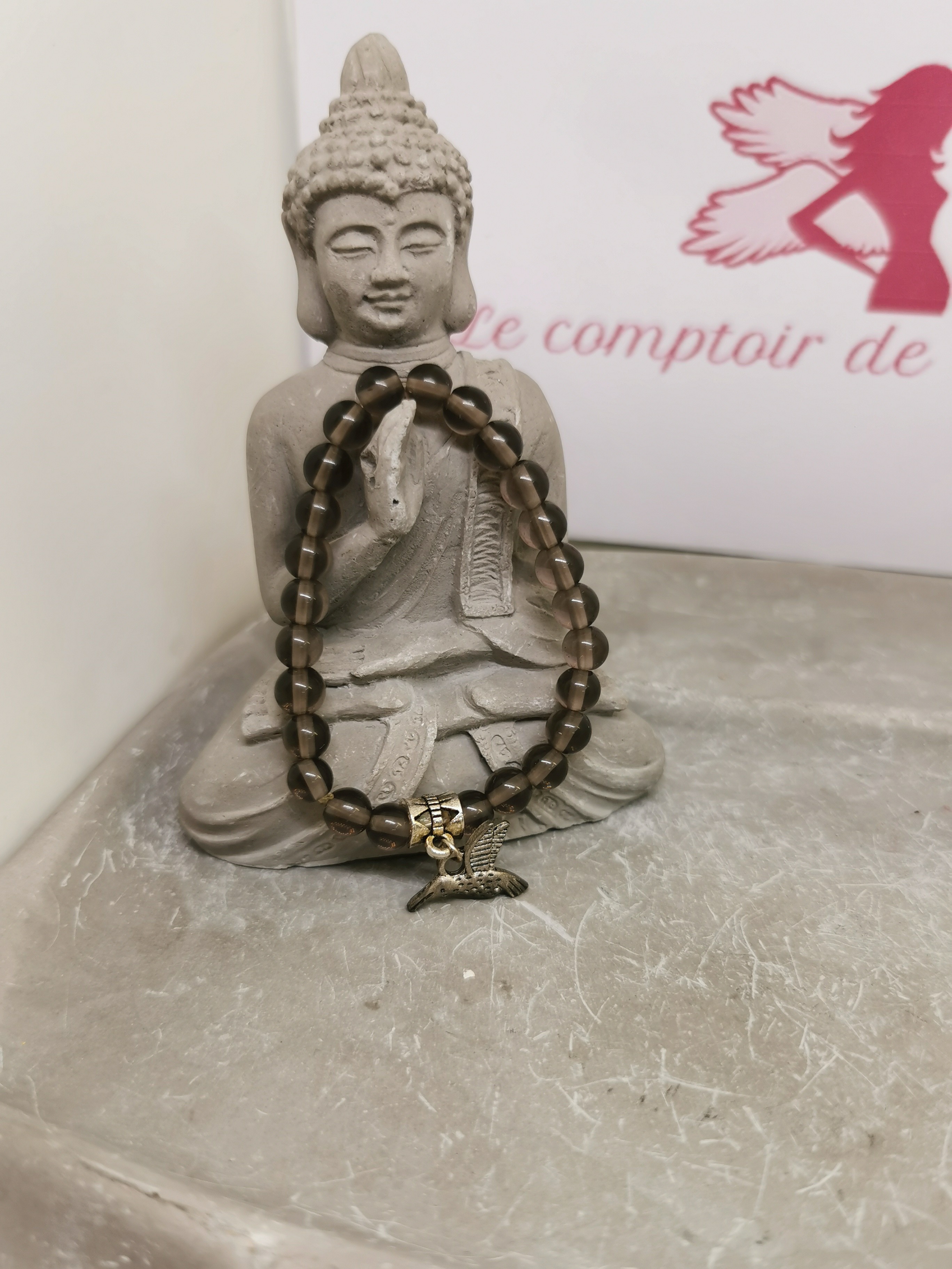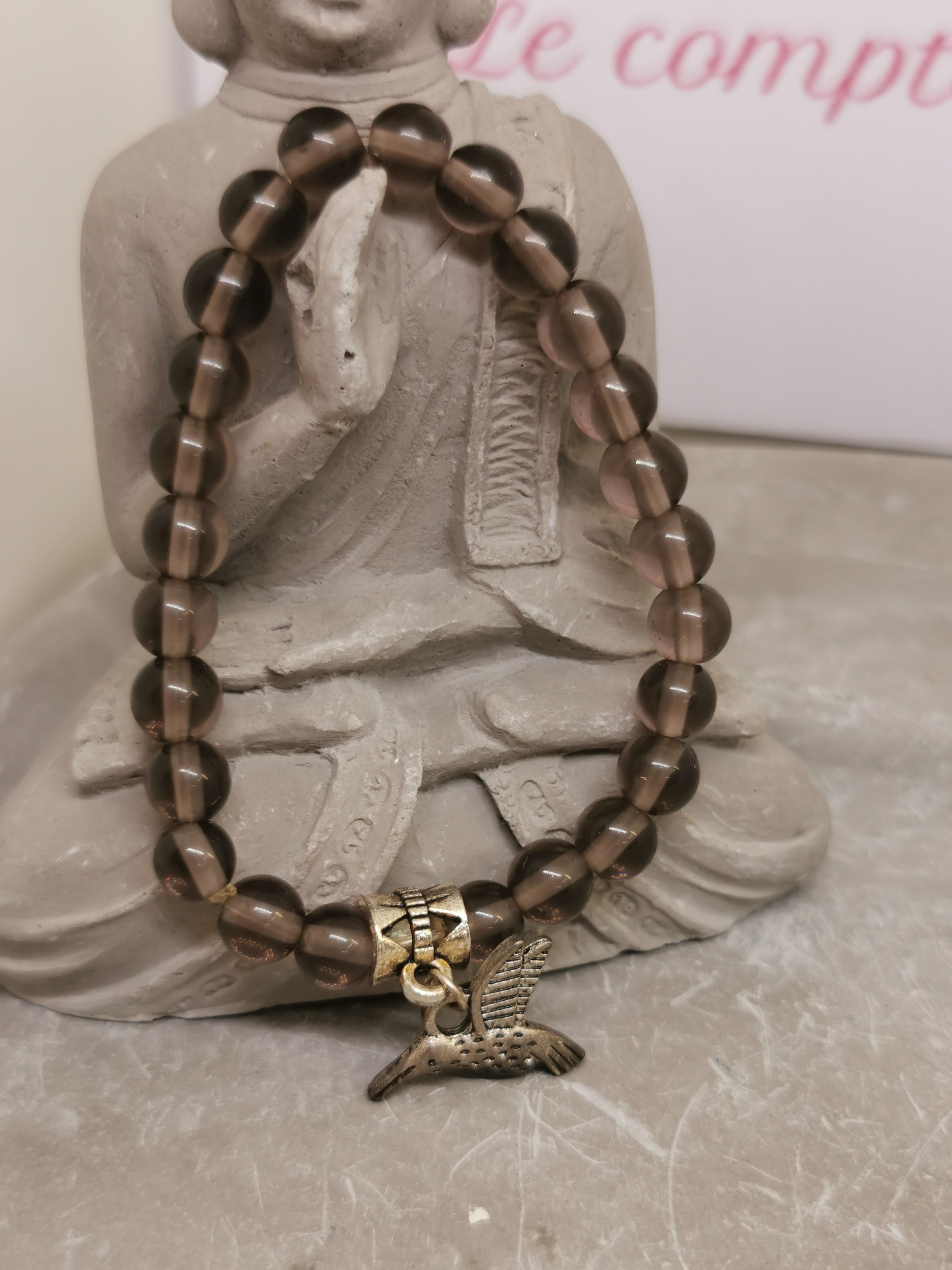 Perles 6 mm avec pendentif colibri