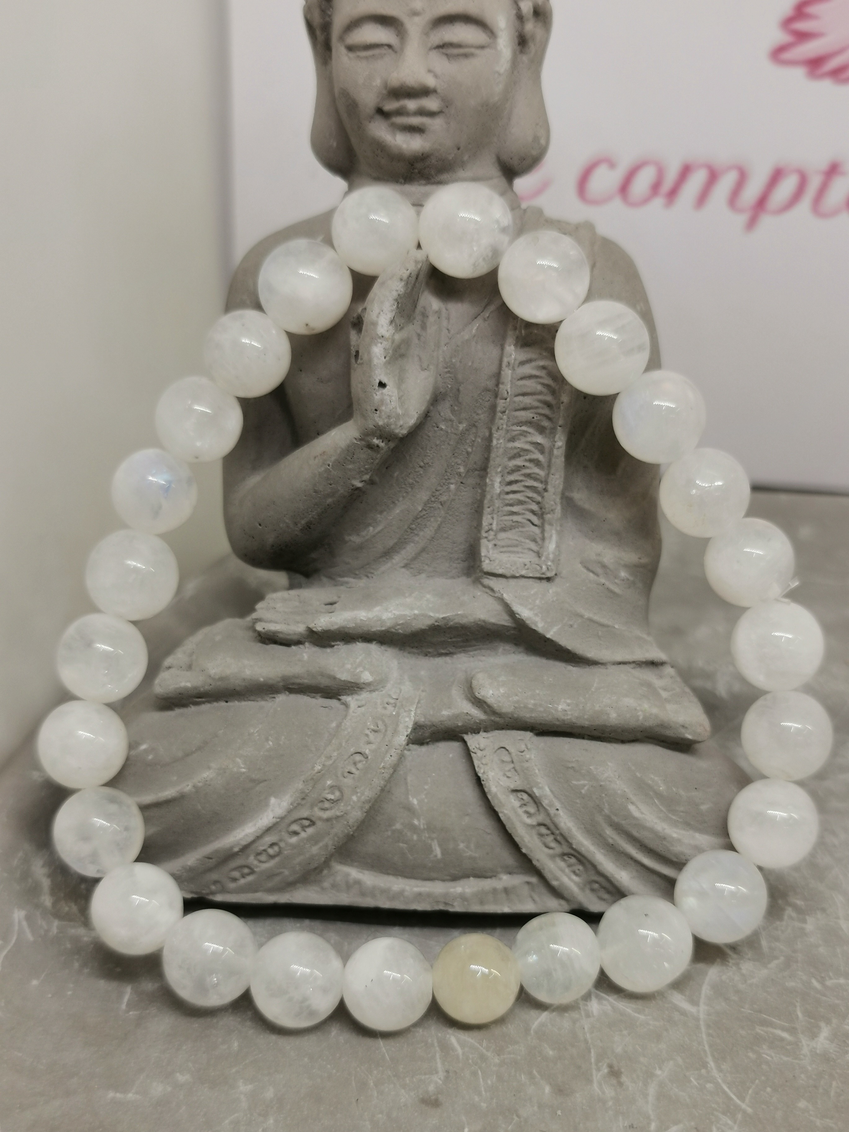 Ce bracelet est un bijou à la fois esthétique et symbolique, apprécié pour sa douceur visuelle et l’énergie qui lui est traditionnellement associée.