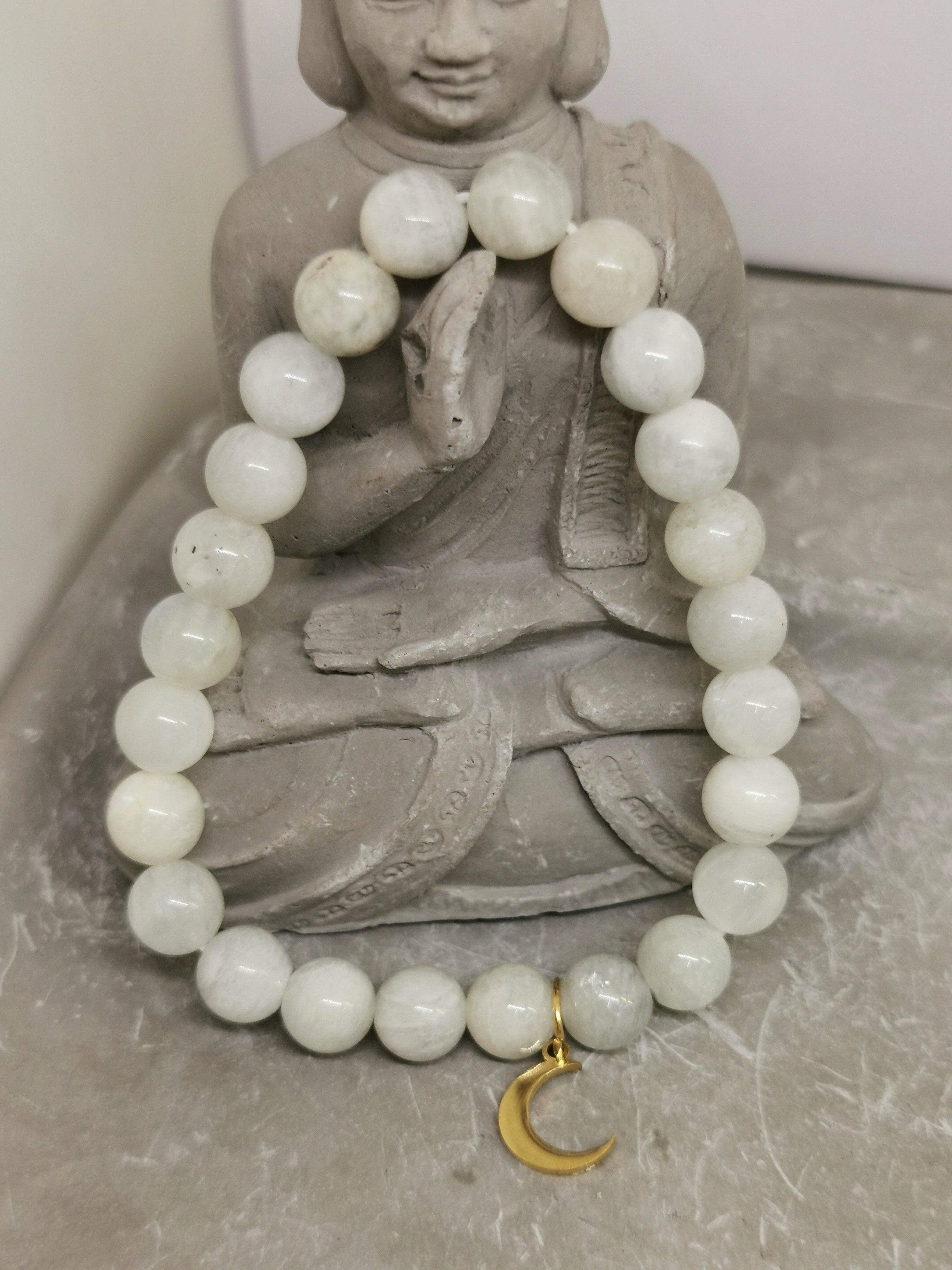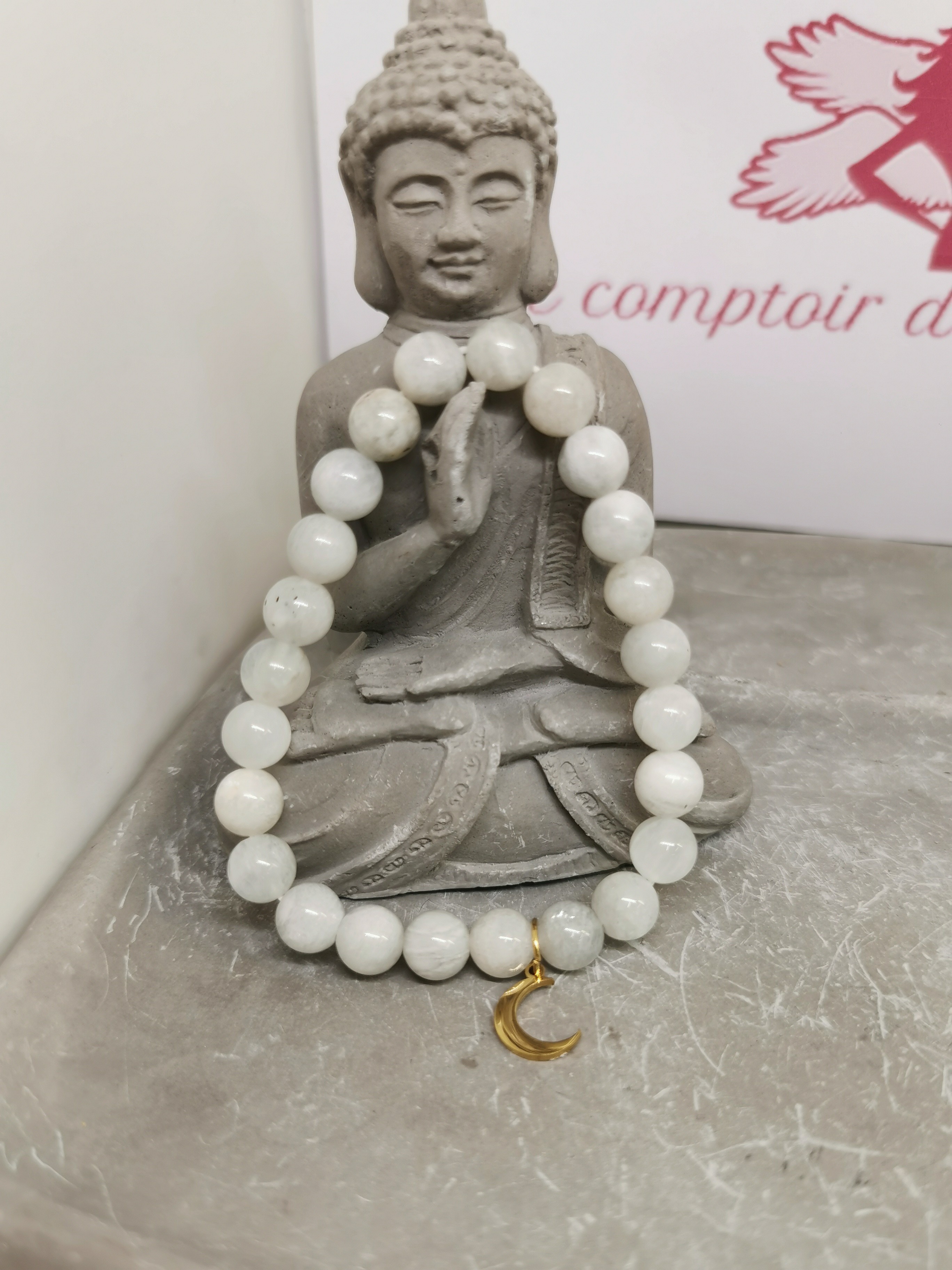 Associé à la pierre de lune, il renforce la dimension symbolique du bracelet.