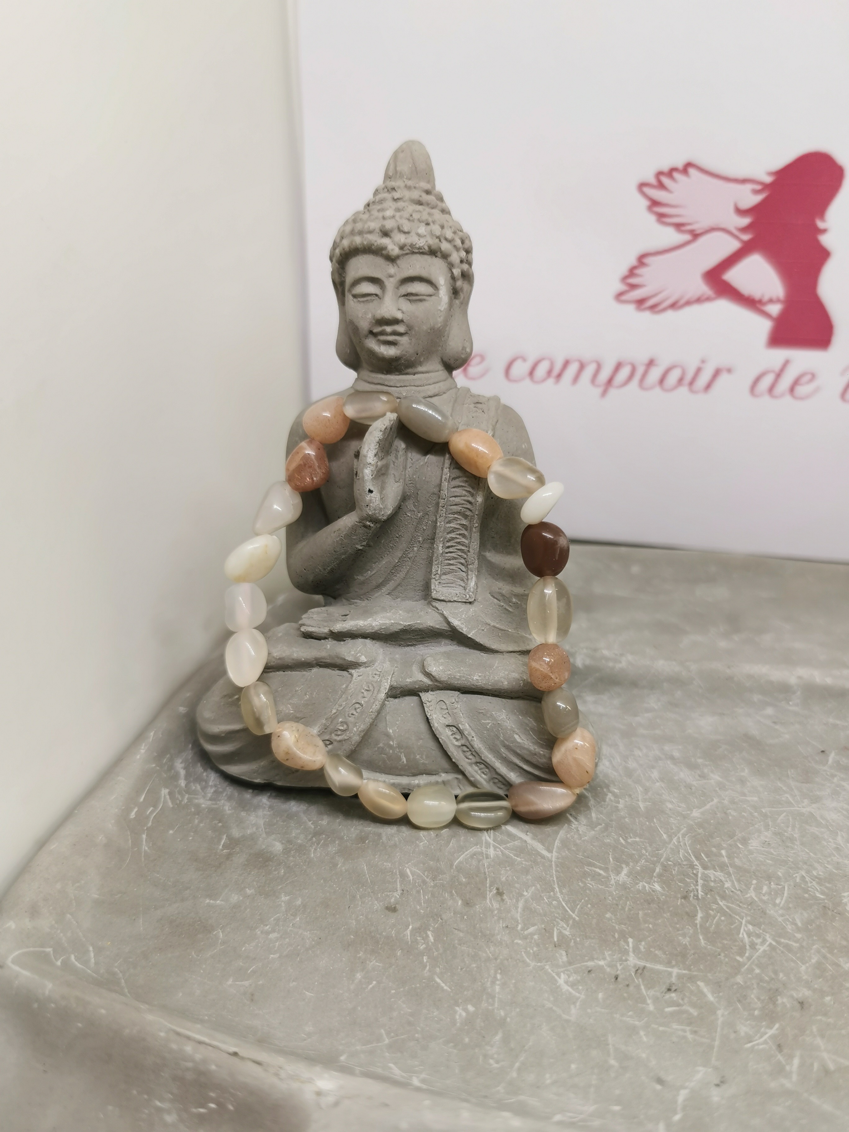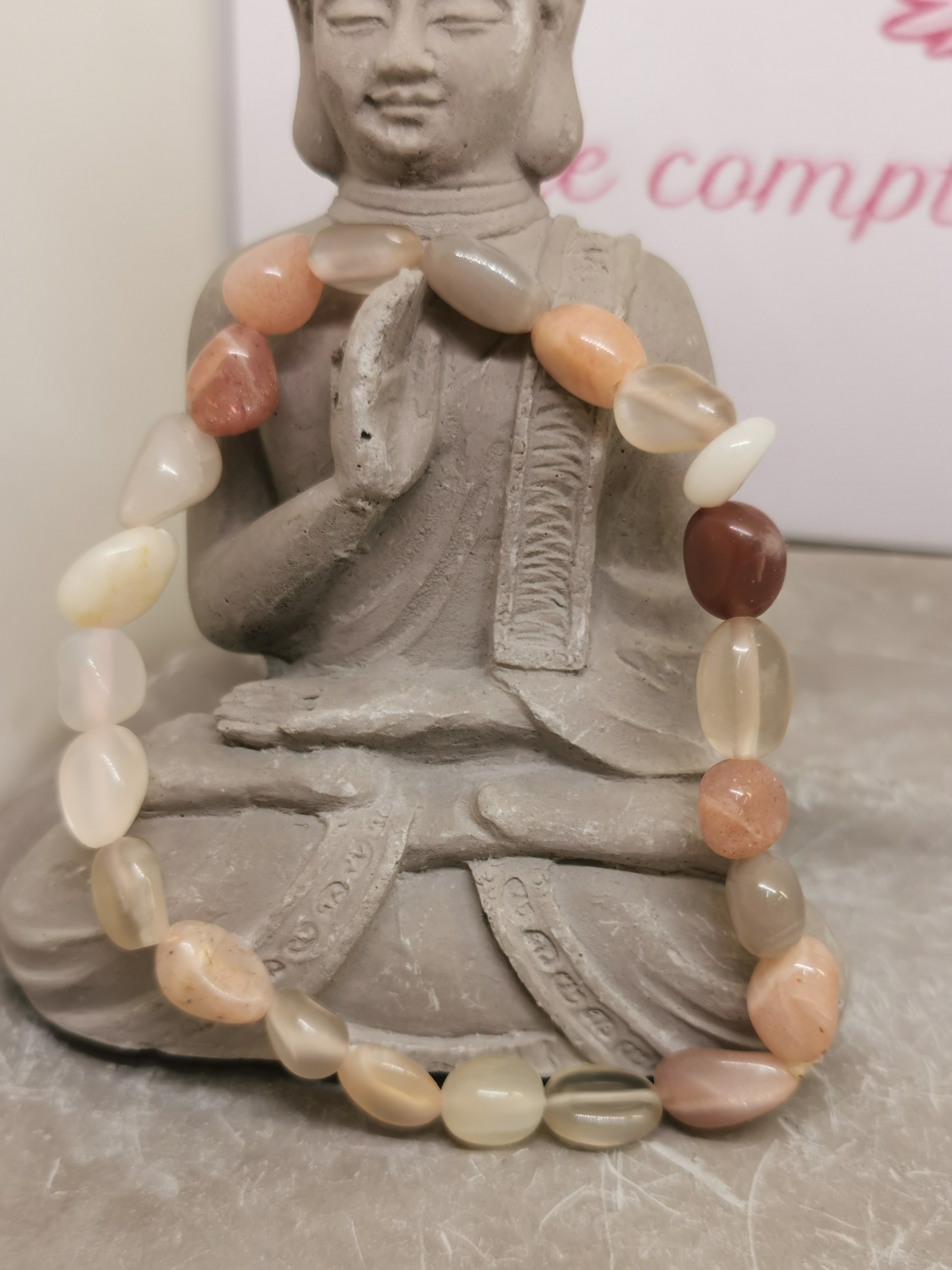 Chaque bracelet étant composé de pierres naturelles, les couleurs, reflets et formes peuvent varier légèrement.