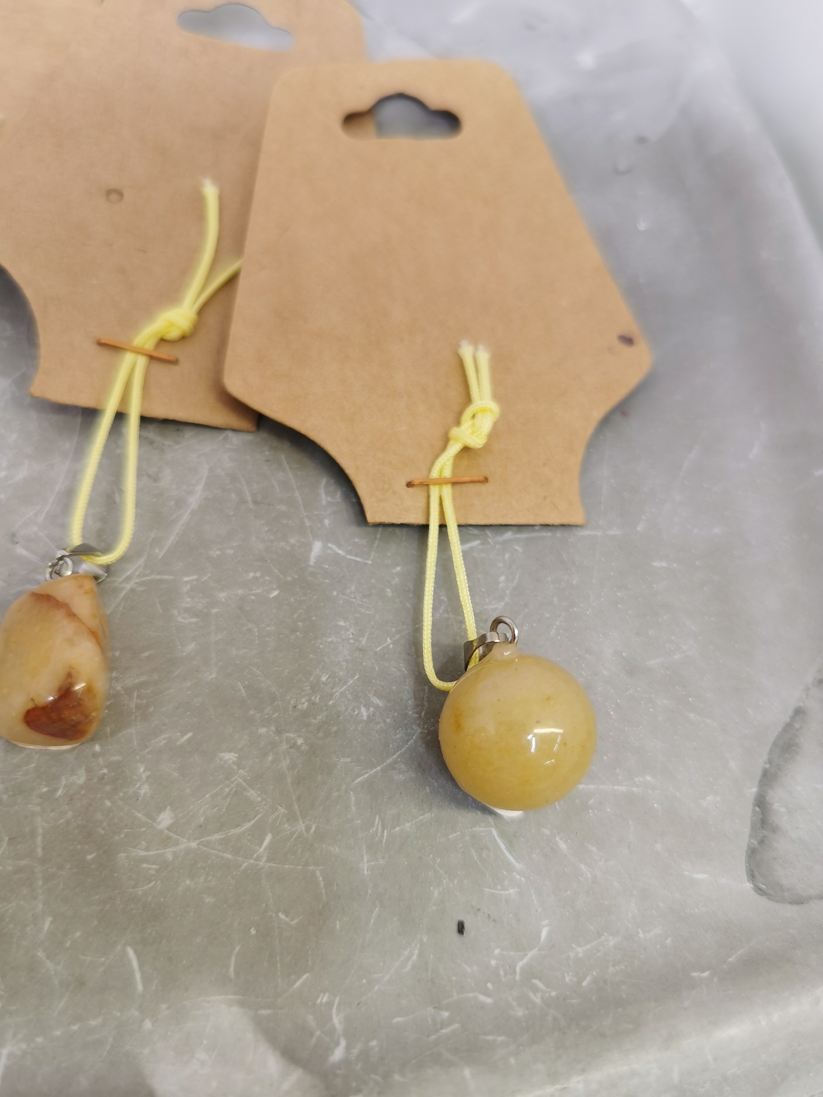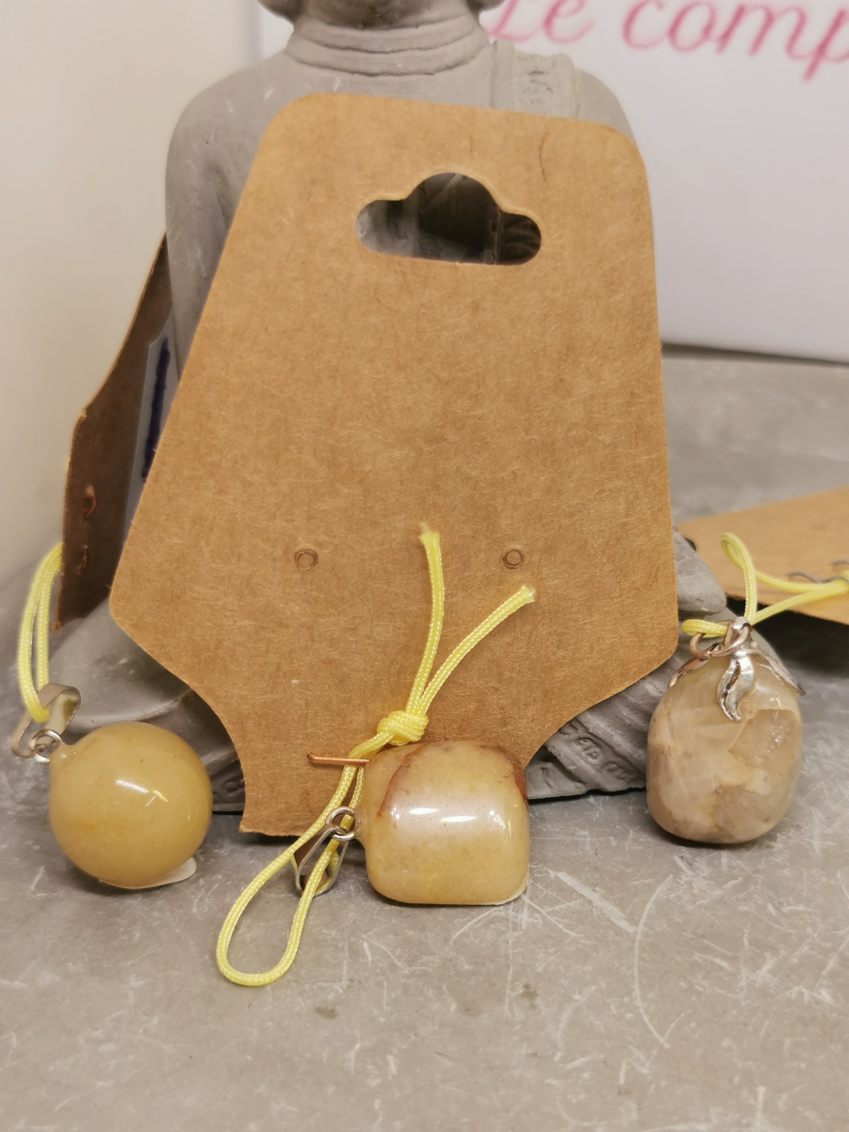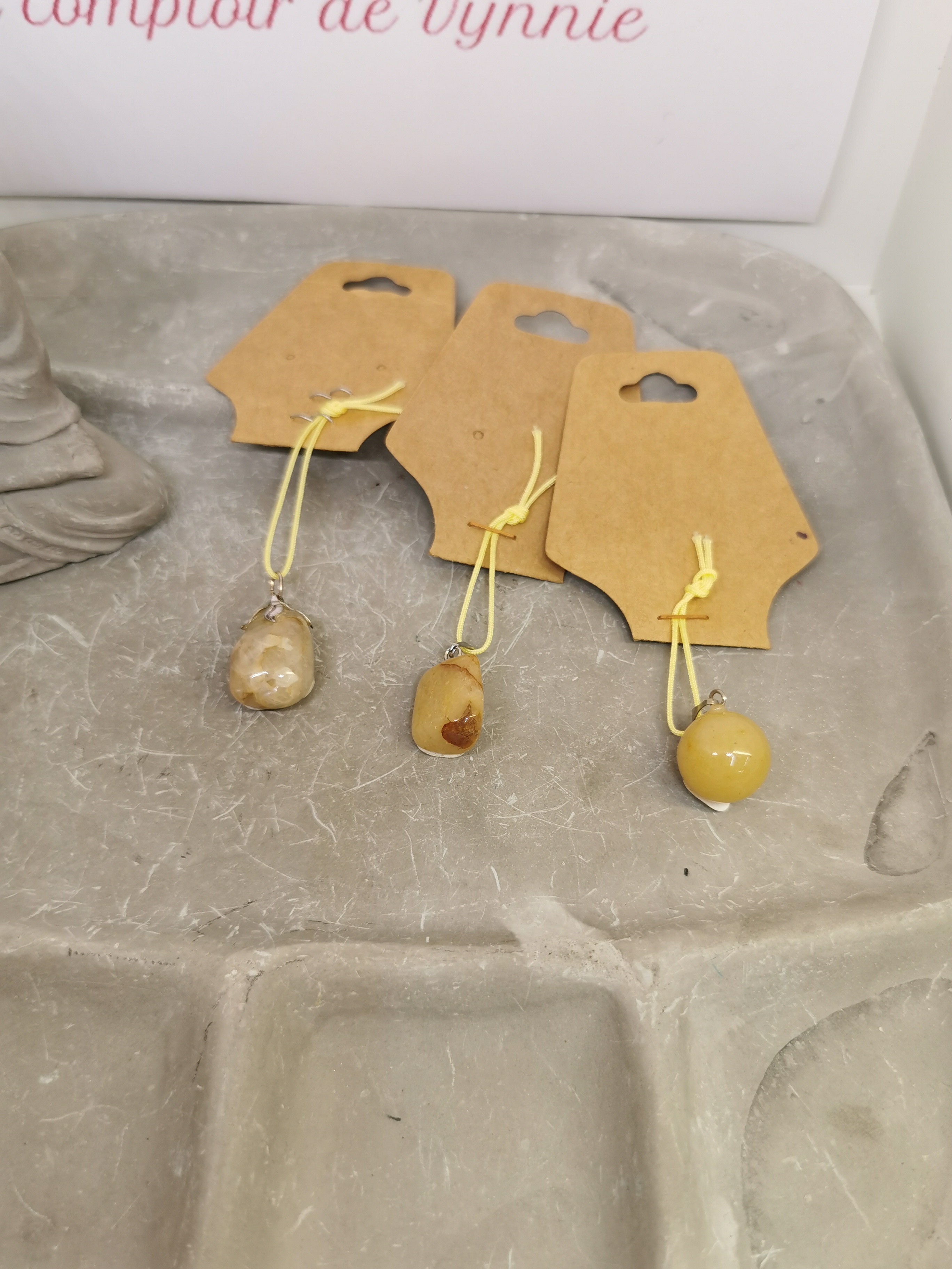 Chaque pendentif est monté avec un cordon réglable, permettant de l’ajuster facilement à la longueur souhaitée.