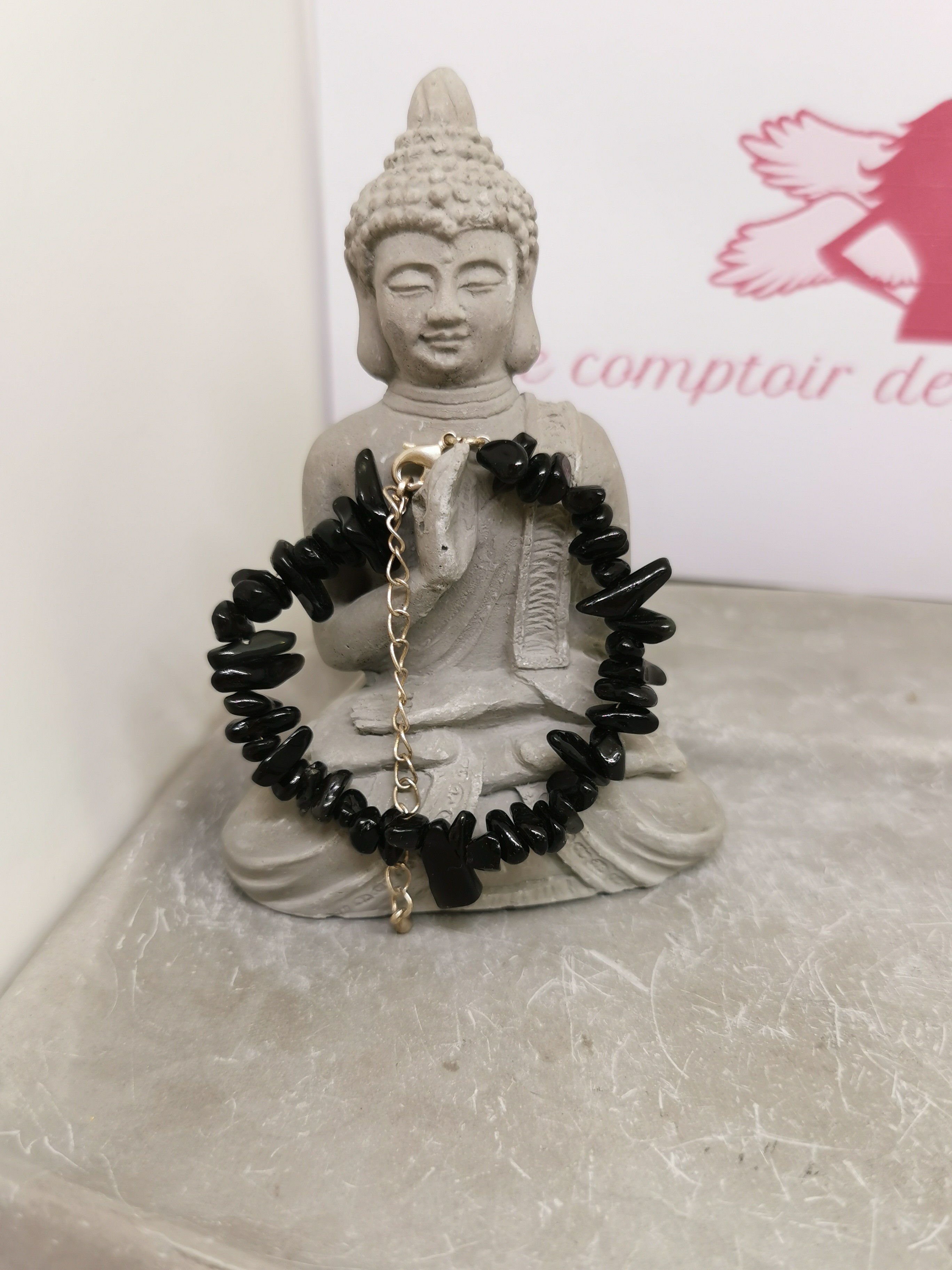 Chaque bracelet étant composé de pierres naturelles, la forme et la taille des chips peuvent légèrement varier.