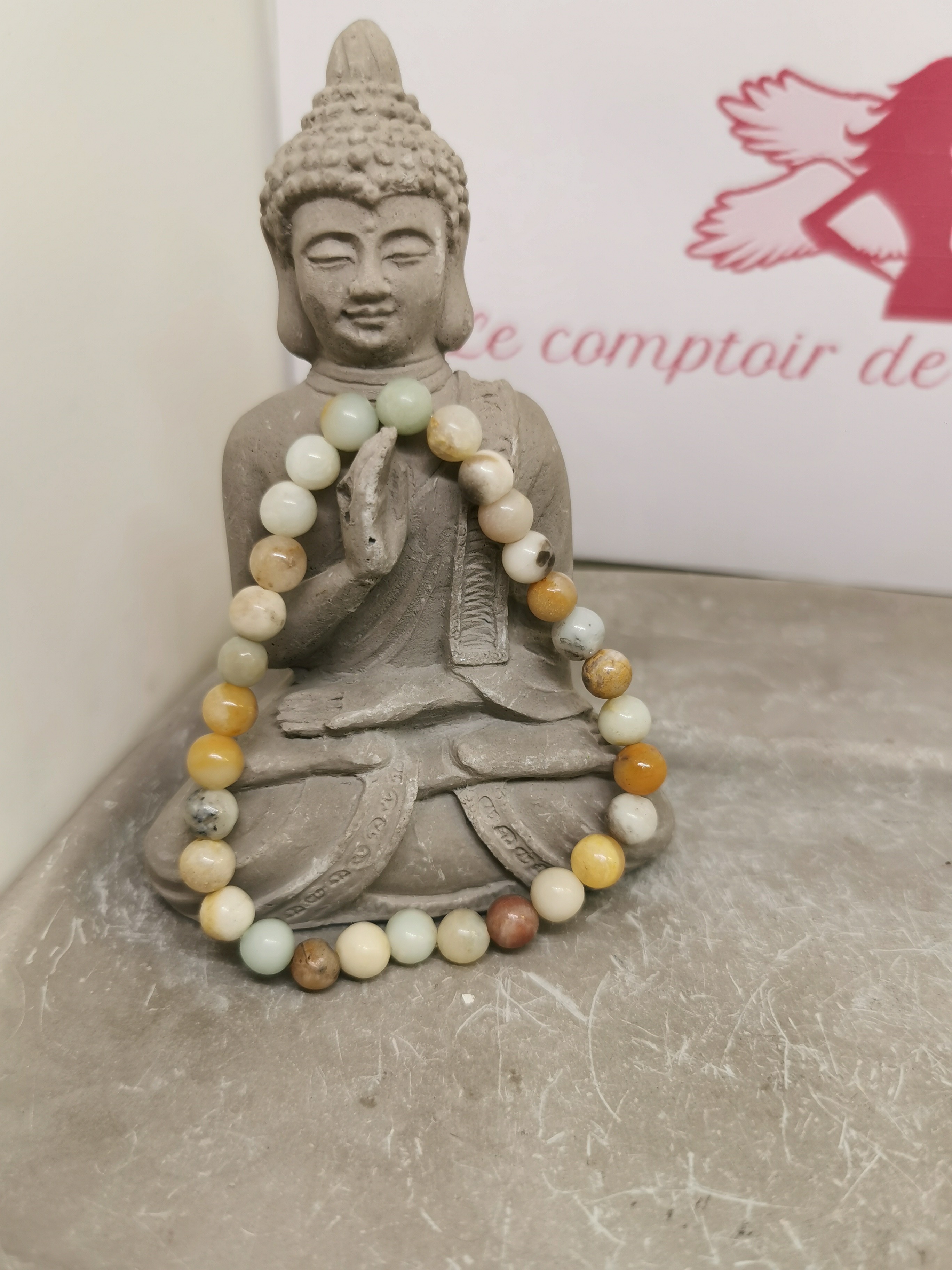 Chaque bracelet étant composé de pierres naturelles, les couleurs et motifs peuvent légèrement varier d’un bijou à l’autre.