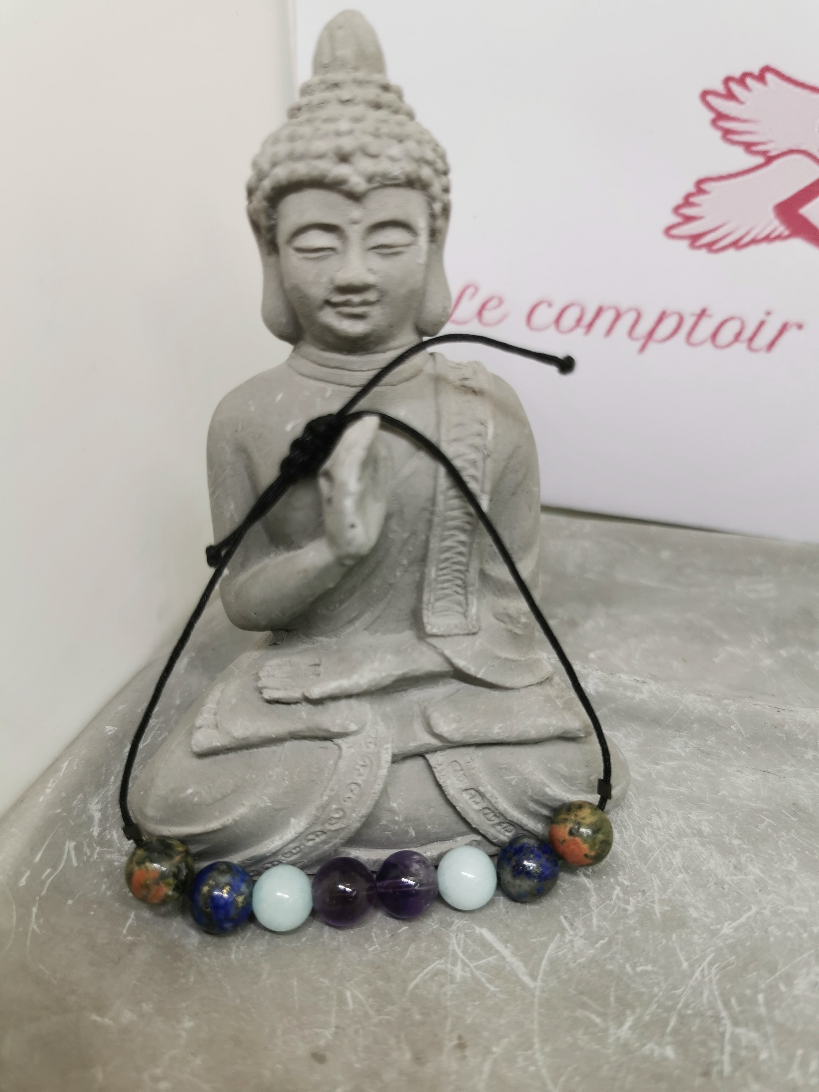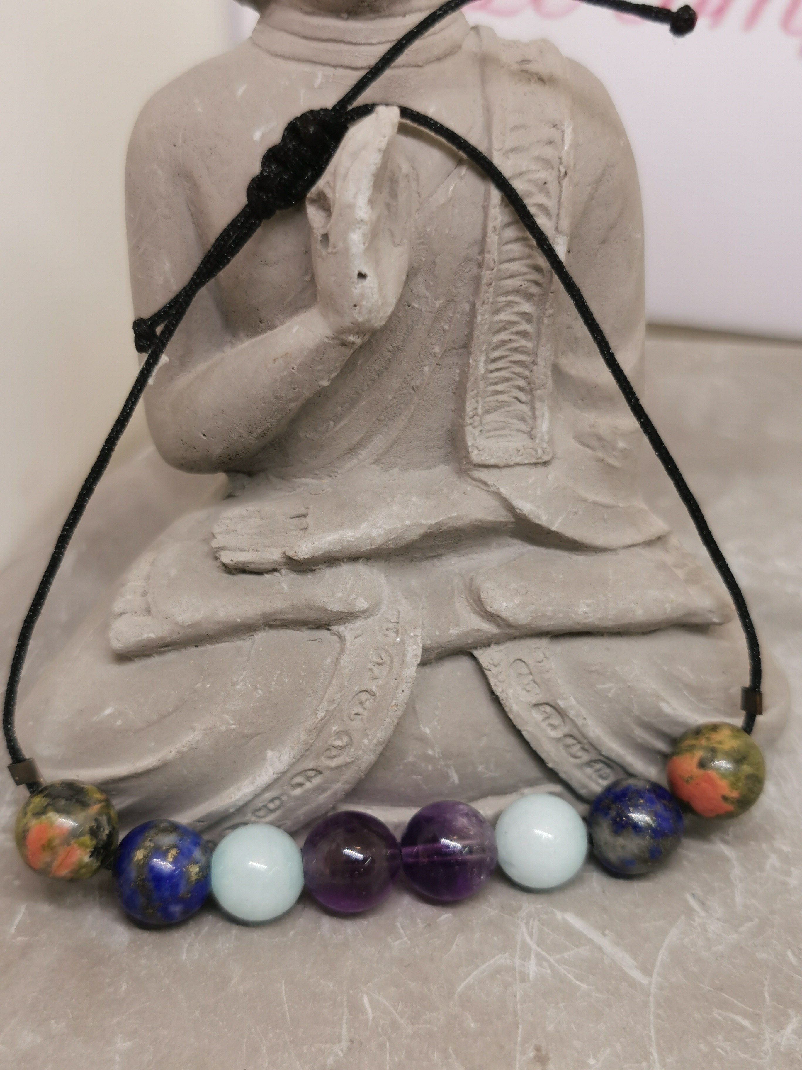 Pierres : unakite, lapis lazuli, améthyste, aigue-marine